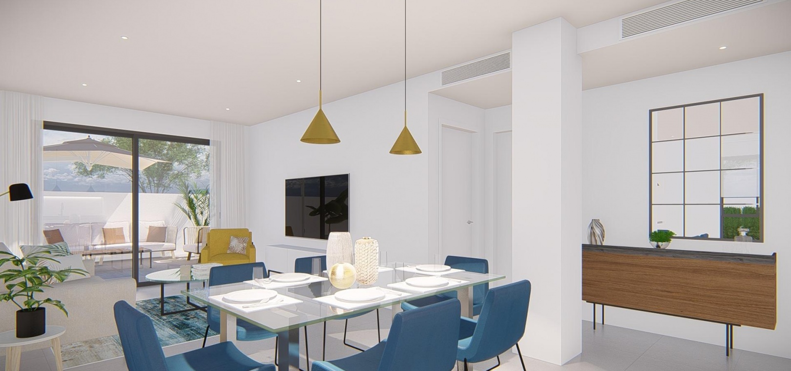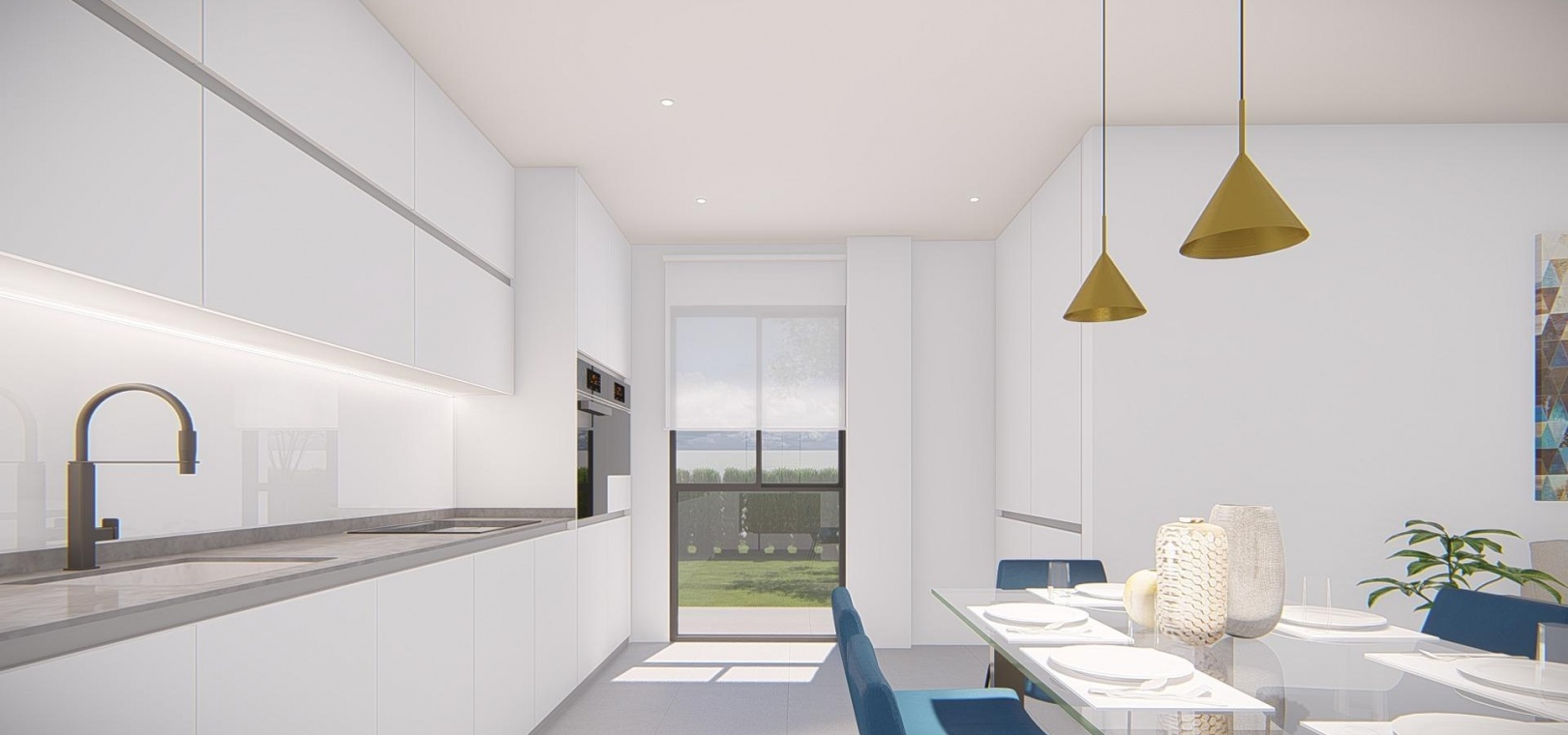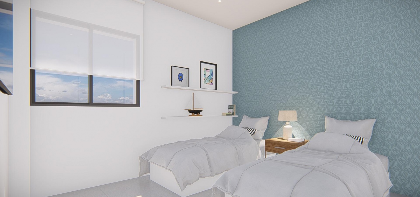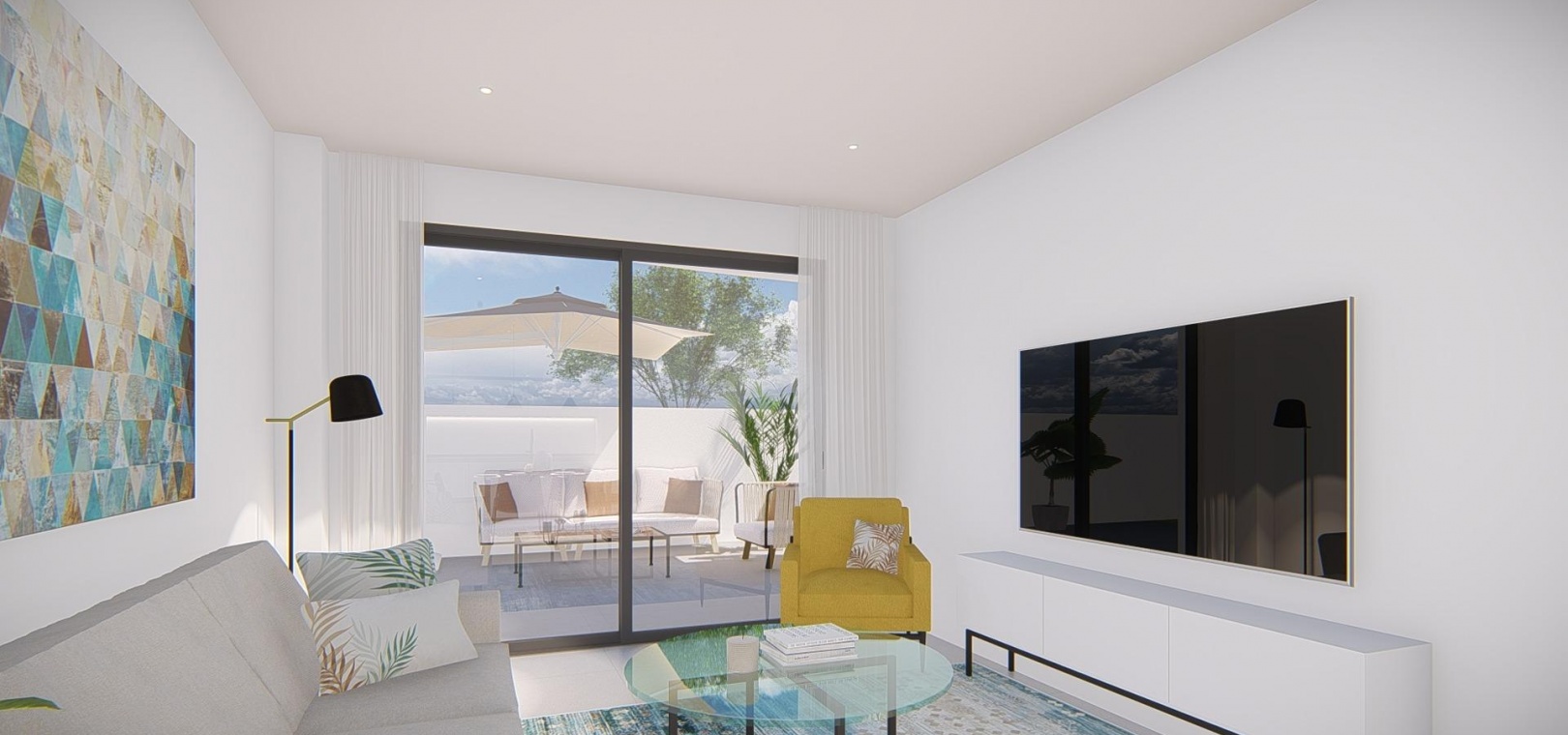 Nieuwbouw residentieel complex van 32 appartementen met 2 en 3 slaapkamers, terrassen, garages en bergingen, gemeenschappelijke ruimte met zwembad.