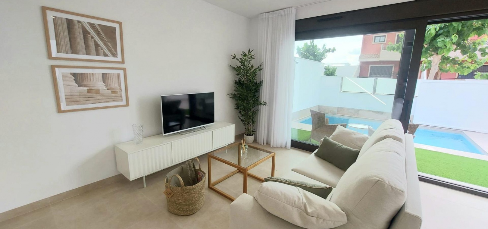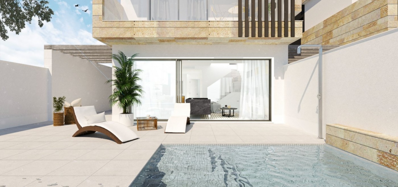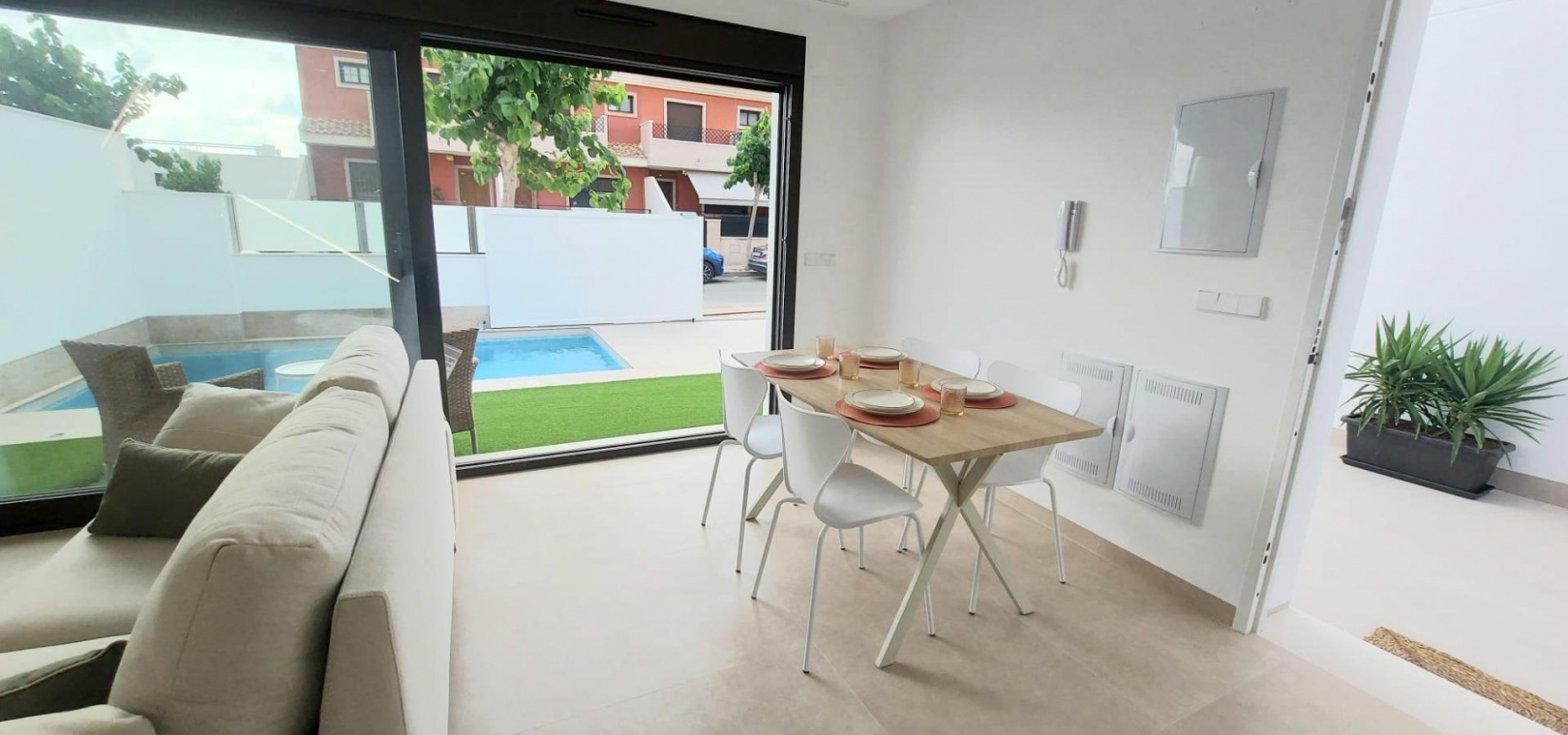 Villa's worden geleverd met vooraf geïnstalleerde airco, LED-verlichting, gemotoriseerde rolluiken, apparatuurpakket, intercom, aerothermisch warmwatersysteem en privé zwembad.