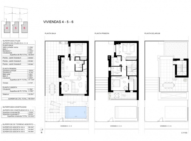 Villas gebouwd over 2 verdiepingen, heeft 3 slaapkamers, 3 badkamers, open keuken met de woonkamer, inbouwkasten, privé tuin met het zwembad en off road parkeerplaats, privé solarium.