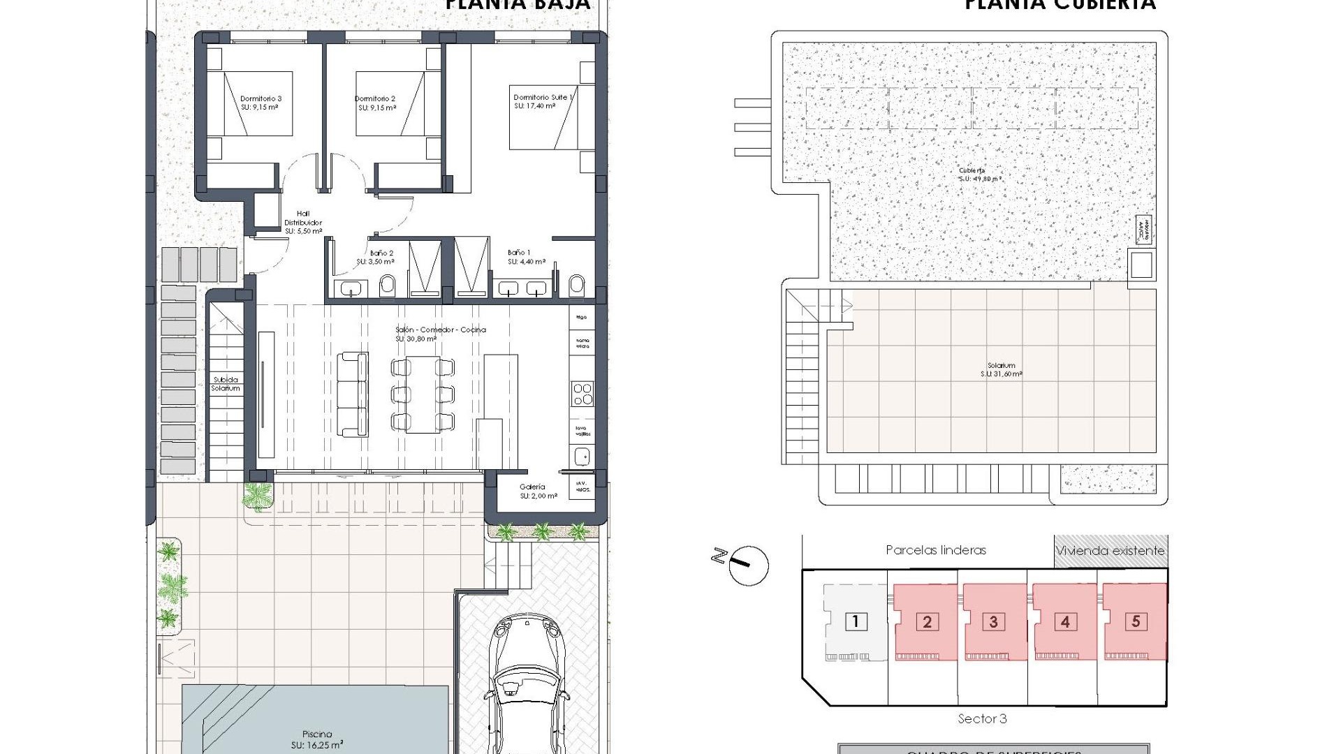 De villa's hebben een open keuken met woonkamer, 3 slaapkamers, 2 badkamers, inbouwkasten, privésolarium met een bevoorrecht uitzicht, tuin met parkeerplaats en privézwembad.