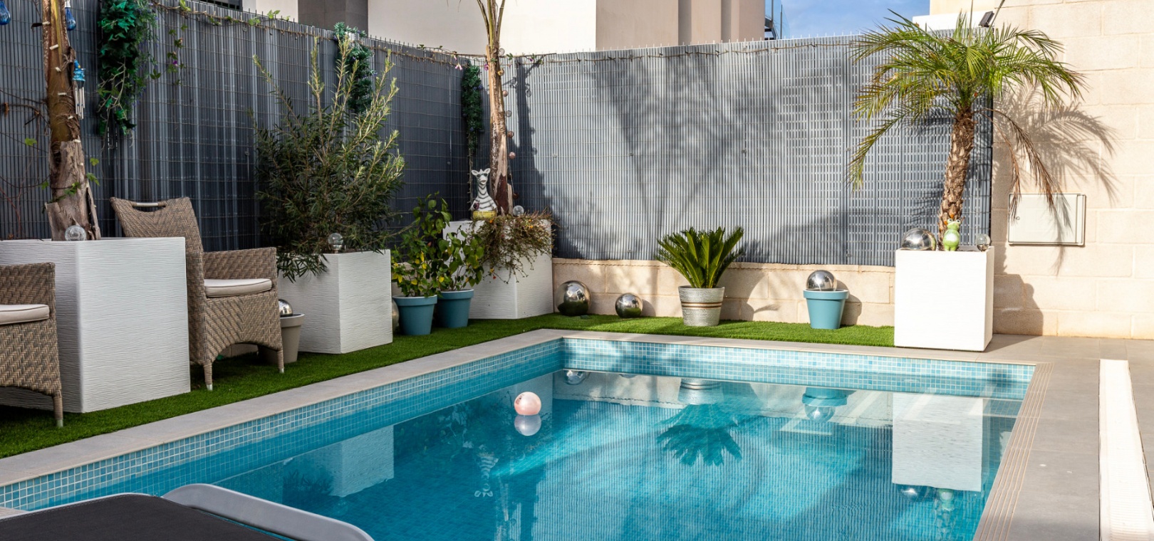 Buiten vindt u een terras aan de voorzijde, een privézwembad, een oprit voor off-road parkeren, een balkon op de eerste verdieping, een privé solarium van 36 m2 op het dak en nog veel meer.