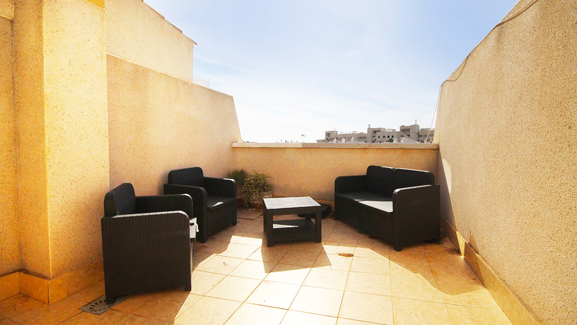 Een op het zuiden gelegen herenhuis met 3 slaapkamers, 1,5 badkamers en een eigen dakterras, gelegen in St. James Hill, Villamartin, Costa Blanca.