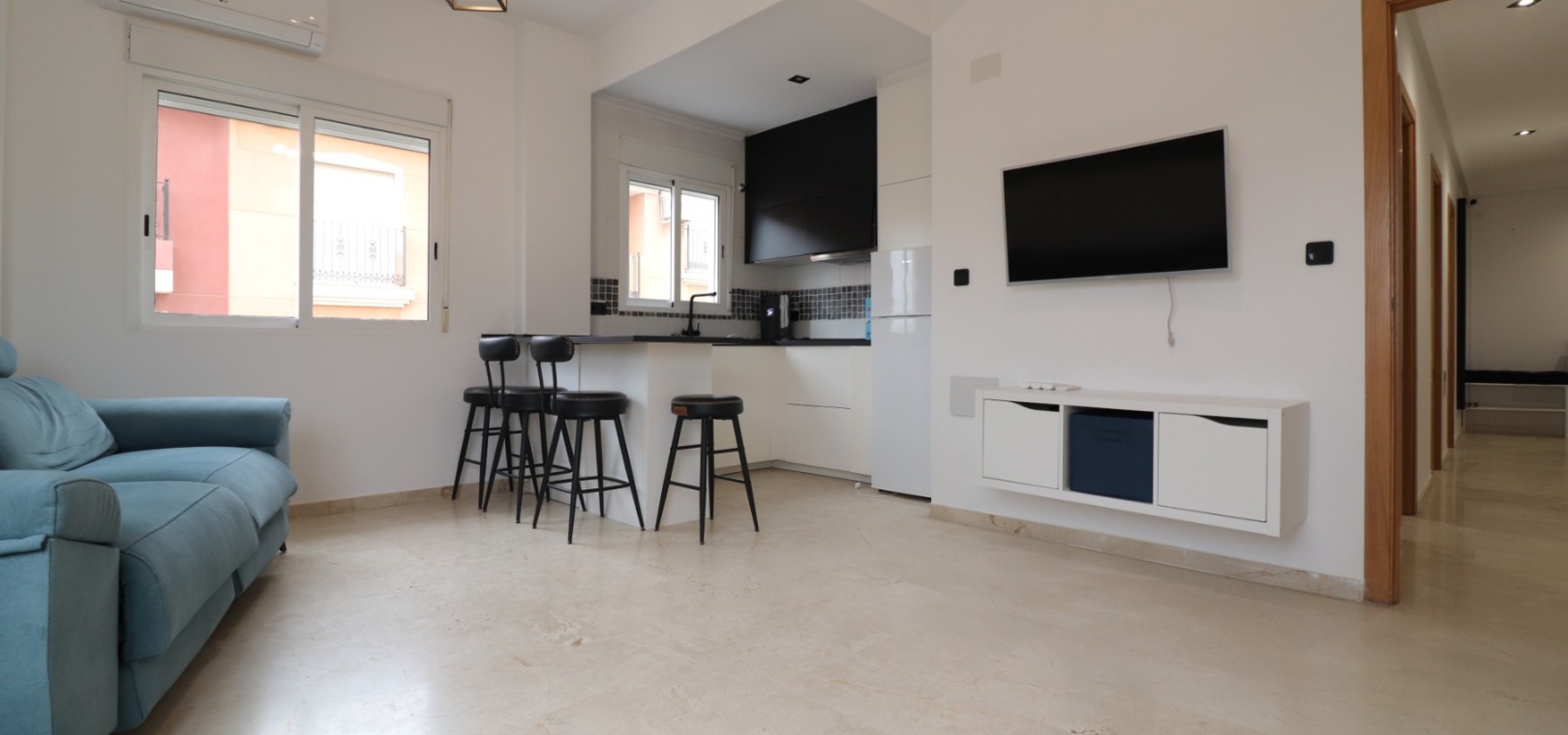 Een appartement met twee slaapkamers op de begane grond, gelegen in het hart van Benijofar, op loopafstand van alle voorzieningen die deze populaire stad te bieden heeft, waaronder supermarkten, veel eetgelegenheden, winkels, bank, apotheek, school, medisch centrum, sportveld en nog veel meer. Het dichtstbijzijnde strand ligt op 12 minuten rijden en de golfbaan La Marquesa ligt op slechts 5 minuten afstand. Open, volledig ingerichte keuken, modern en bijgewerkt met een ontbijtbar; woon-/eetkamer; twee tweepersoonsslaapkamers; en een familiebadkamer met ruimte voor een wasmachine! Er is een lift in het blok, een gemeenschappelijk solarium met een zwembad, plus het pand heeft een ondergrondse parkeerplaats met een berging.