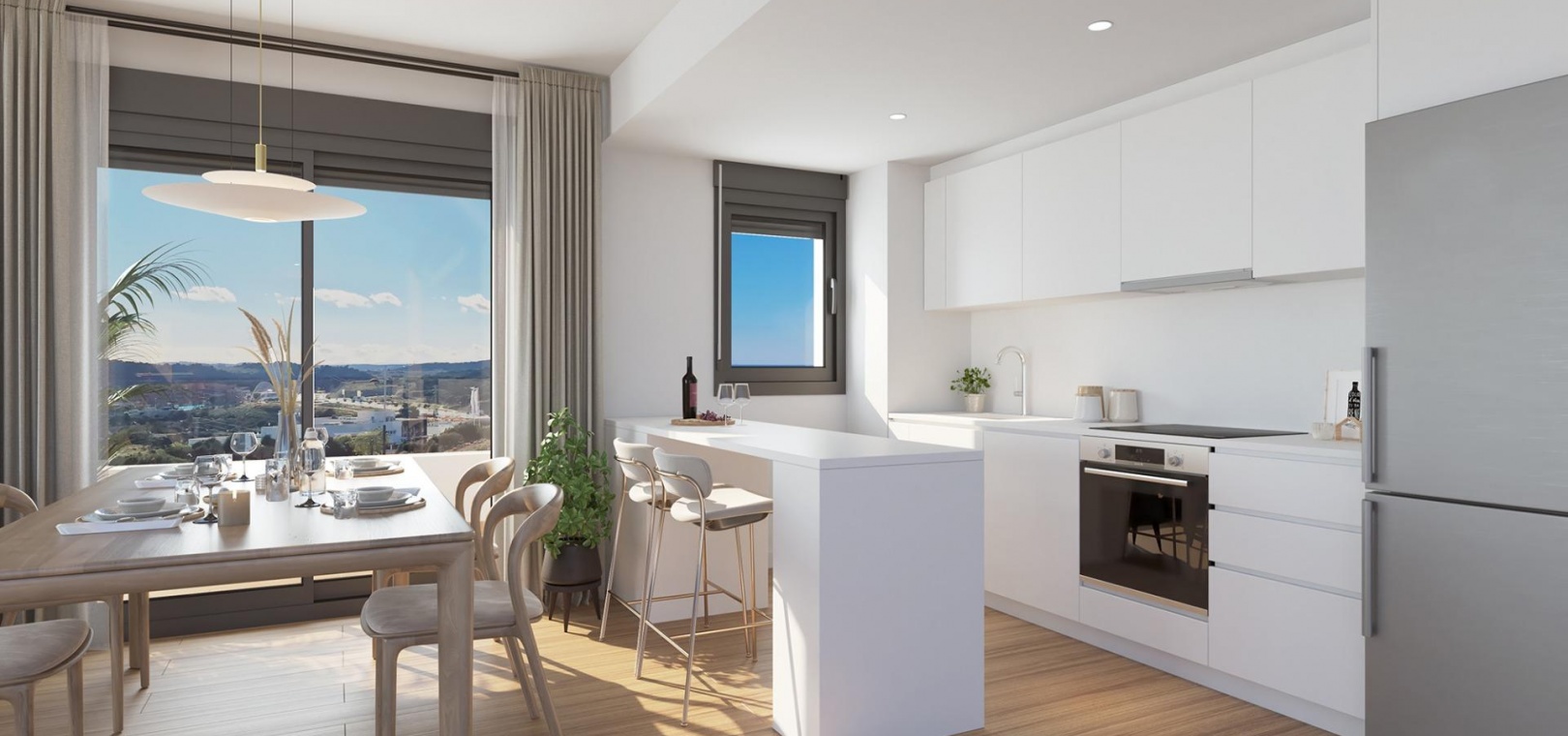 Elk appartement beschikt over een ondergrondse parkeergarage, een eigen berging en BOSCH apparatuur, waaronder een koelkast, wasmachine, vaatwasser, inductiekookplaat en oven. Duurzame systemen van AEROTERMIA zorgen voor efficiënte verwarming, koeling en warm water, met volledig geïnstalleerde airconditioning.