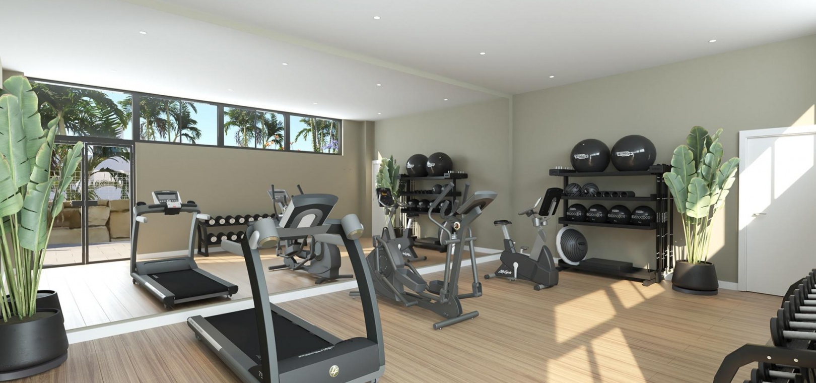 Een volledig uitgeruste fitnessruimte voor een actieve levensstijl.