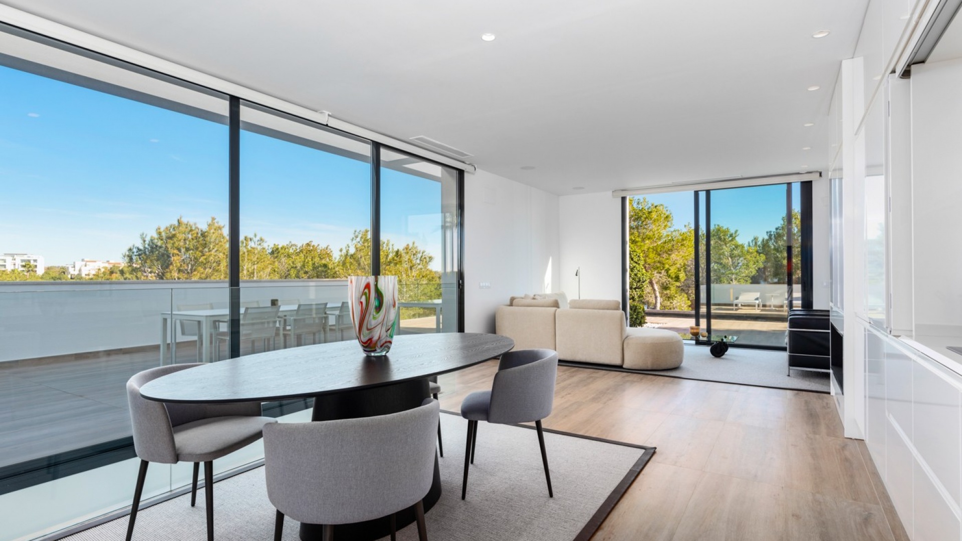 Deze villa is uitgerust met de nieuwste technologie, waaronder een geavanceerd domoticasysteem, waarmee u moeiteloos verlichting, temperatuur en beveiliging kunt regelen. Het Airzone-klimaatsysteem zorgt voor perfect binnencomfort in elke kamer, terwijl de automatische rolluiken extra gemak en privacy bieden. Bovendien dragen zonnepanelen bij aan een energiezuinige en duurzame woonervaring.