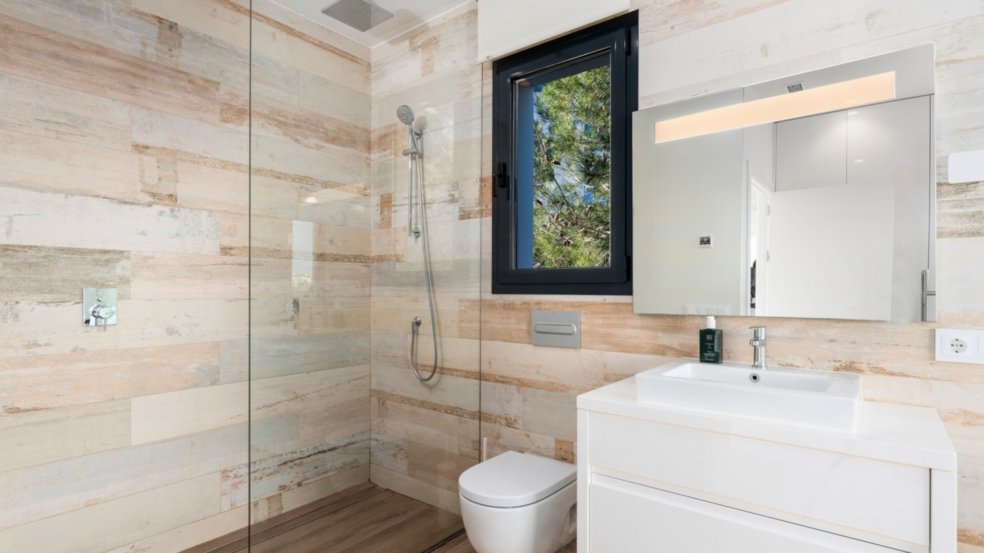 De villa beschikt over vier ruime slaapkamers, waaronder een master suite op de begane grond met een eigen en-suite badkamer, wat extra privacy en gemak biedt. Daarnaast is er een apart gastentoilet op dit niveau.