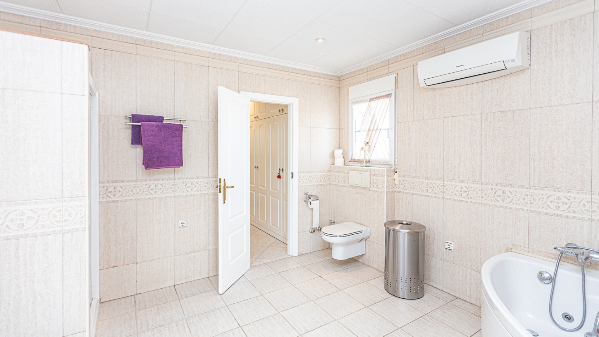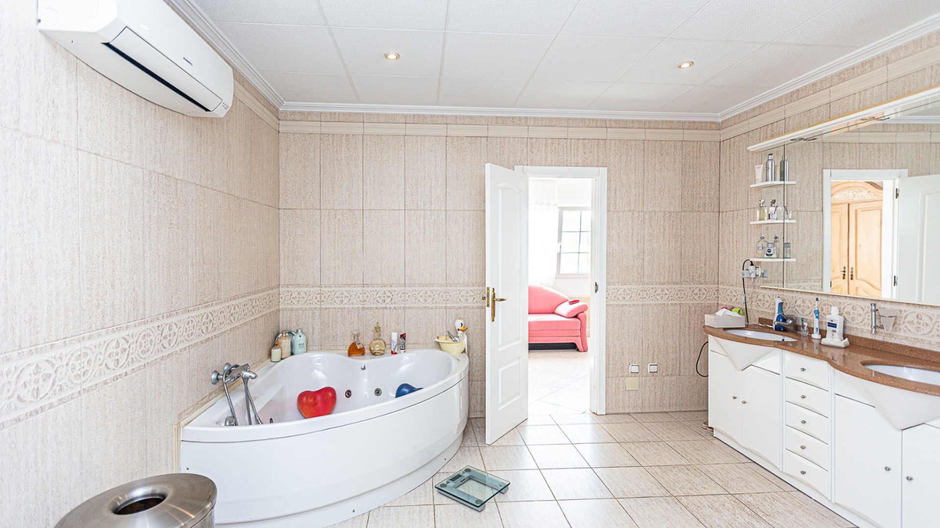 Op dezelfde verdieping heeft de villa twee ruime slaapkamers, gescheiden door een gedeelde badkamer. Deze badkamer is uitgerust met een douche en een jacuzzi, wat comfort en luxe biedt aan de bewoners.