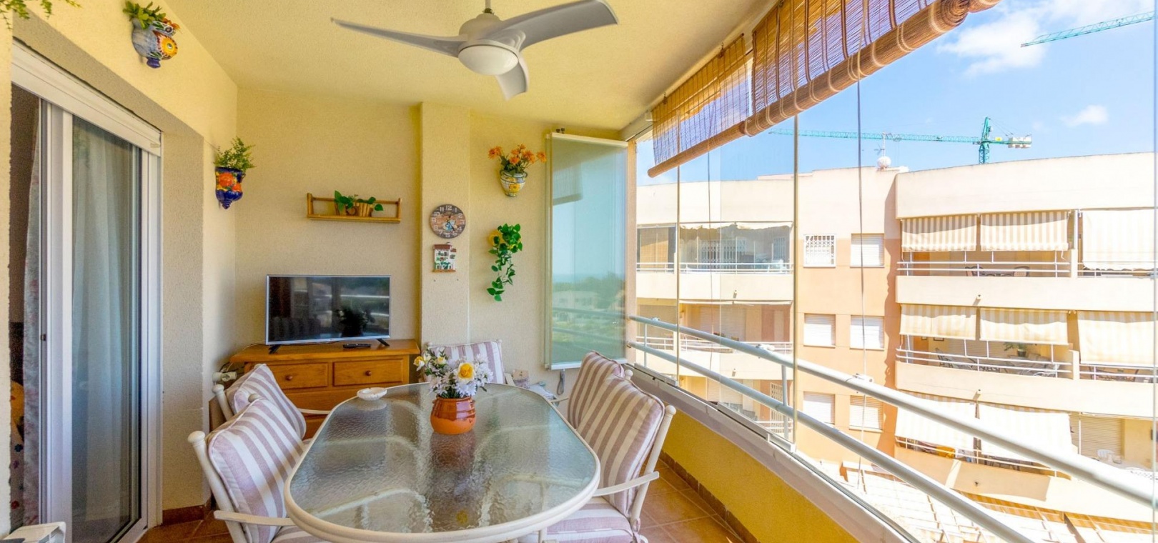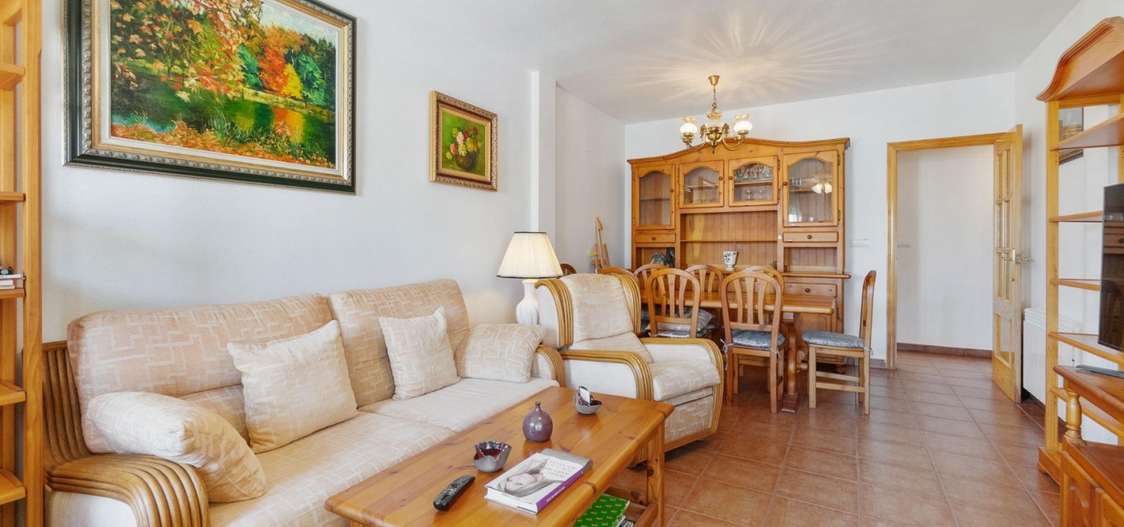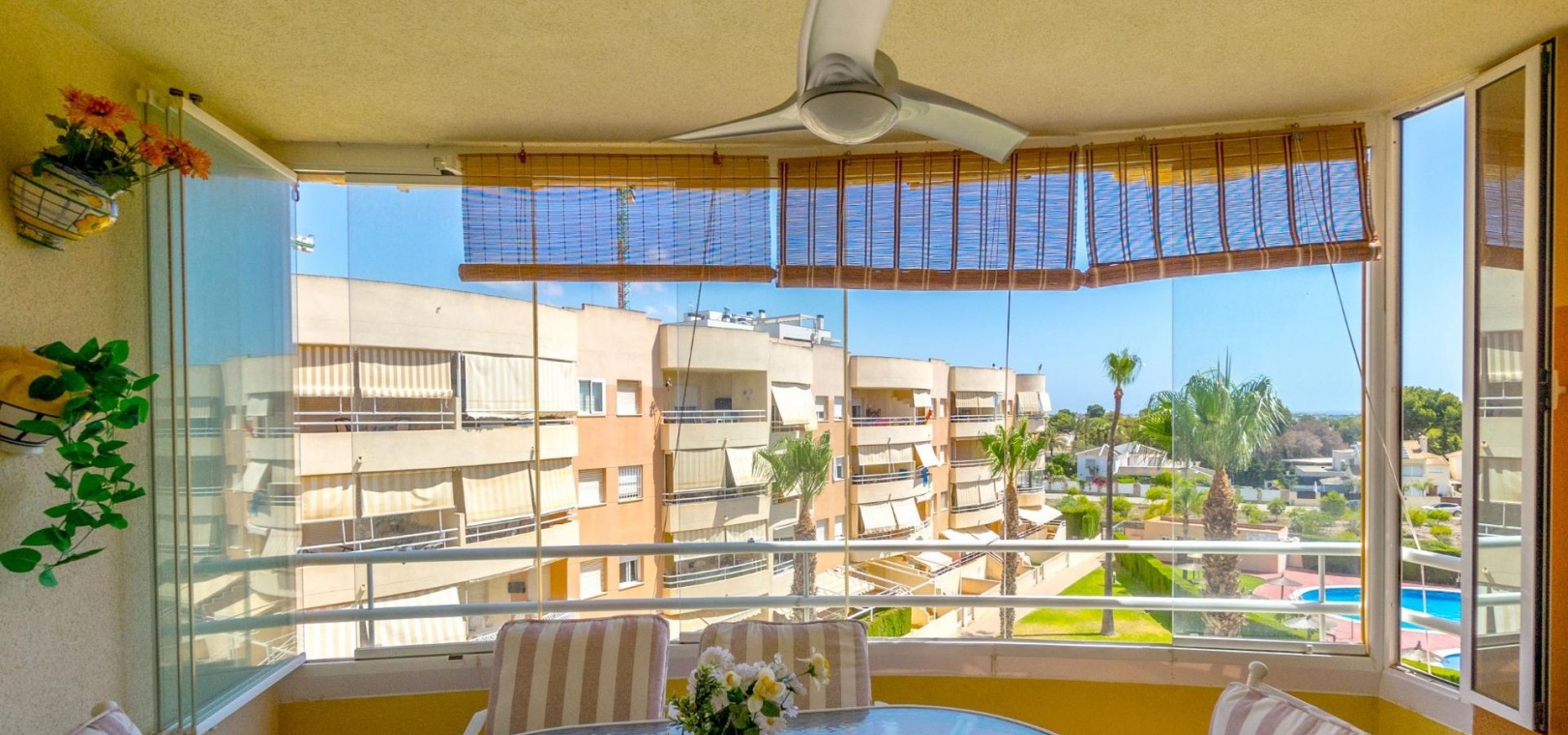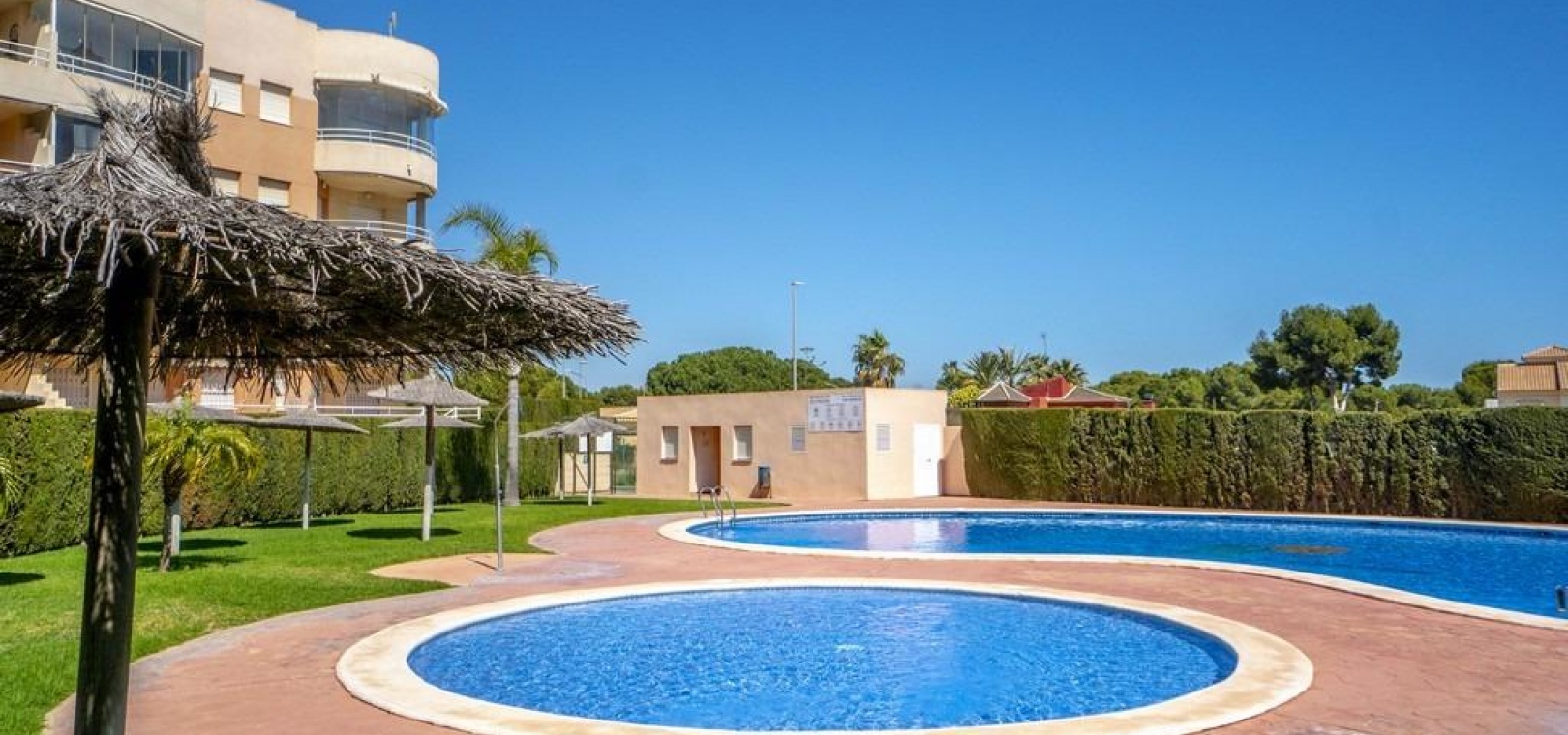 Ruim appartement in Dehesa de Campoamor, een van de mooiste plekken in Orihuela Costa. Het ligt op slechts 800 meter van de zandstranden. Met een oppervlakte van 100m2 bestaat het uit 3 slaapkamers en 2 badkamers. Aparte keuken, groot terras met uitzicht op het gemeenschappelijke zwembad en de zee. Het huis wordt verkocht met een parkeerplaats en berging in de ondergrondse garage. Gemeenschappelijke ruimtes met zwembad en groene zones. Supermarkt, bushalte, sportcentrum, restaurants en bars op ongeveer 5-10 minuten loopafstand.