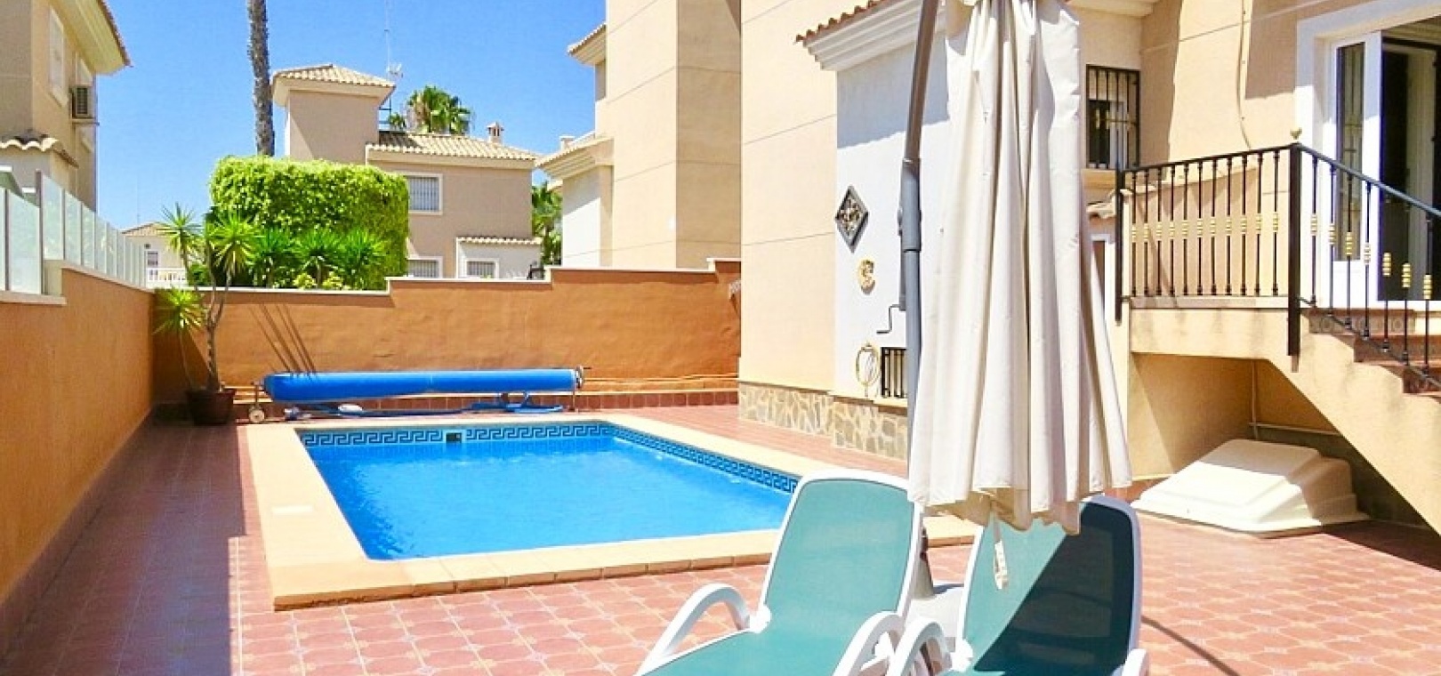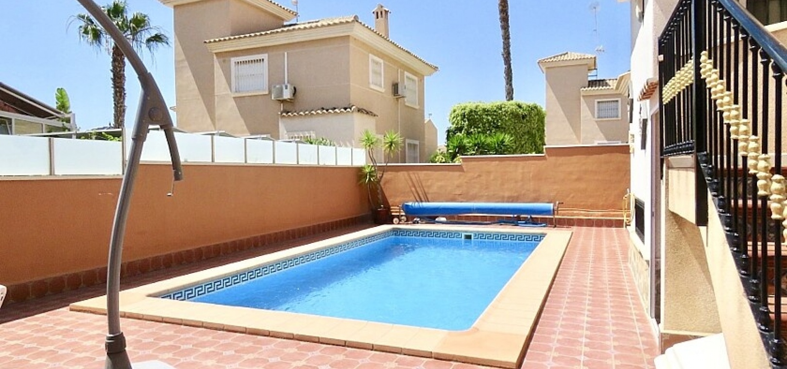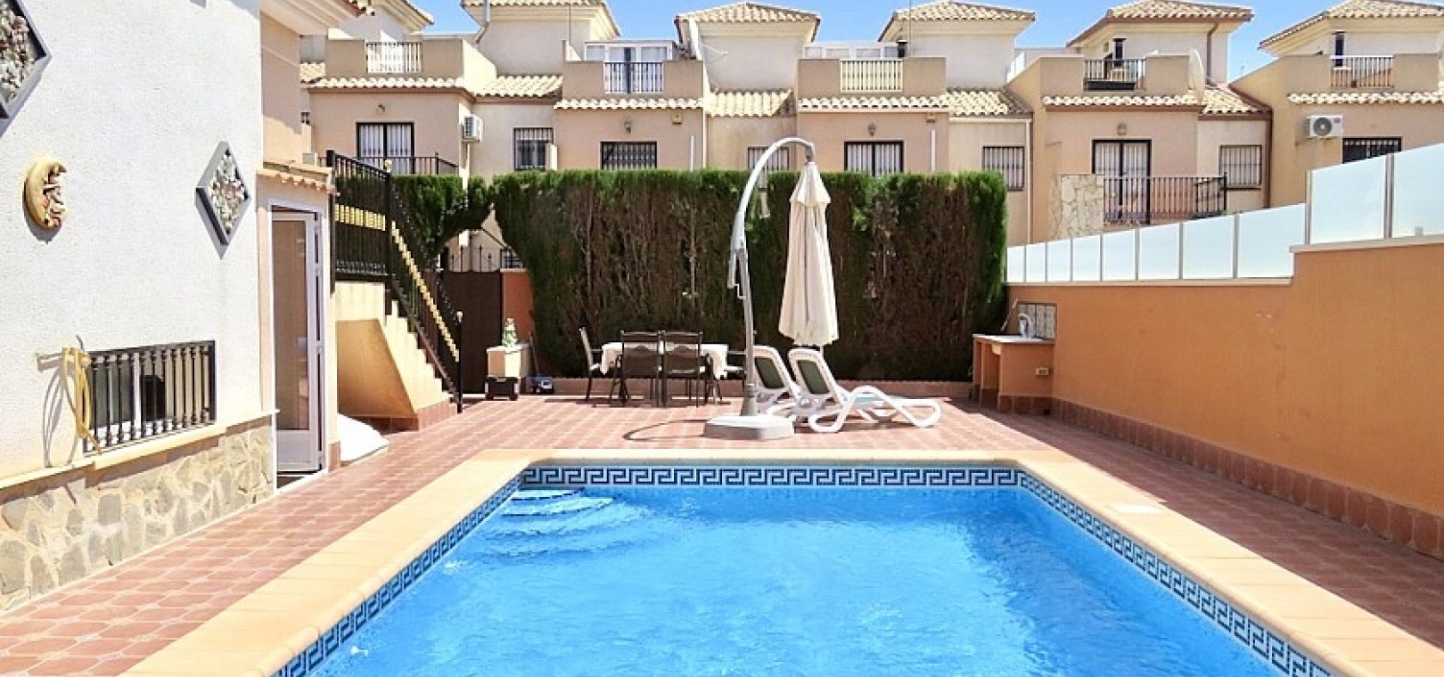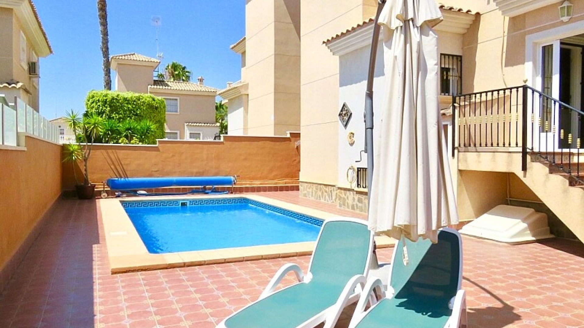 Villa met 3 slaapkamers en privézwembad in Los Altos. Ruime vrijstaande villa met 3 slaapkamers en 3 badkamers in Los Altos, met privé zwembad en tuin gelegen in een privé woonwijk met gemeenschappelijk zwembad.
