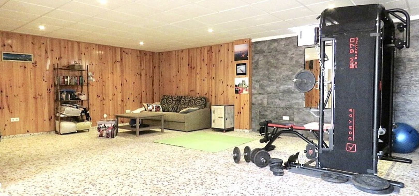 Dit huis heeft 3 slaapkamers, 3 badkamers, woon-eetkamer met open haard, keuken en woon-eetkamer. In het souterrain is er nog een grote woonkamer, een sauna met toilet en douche, een terras en een garage.