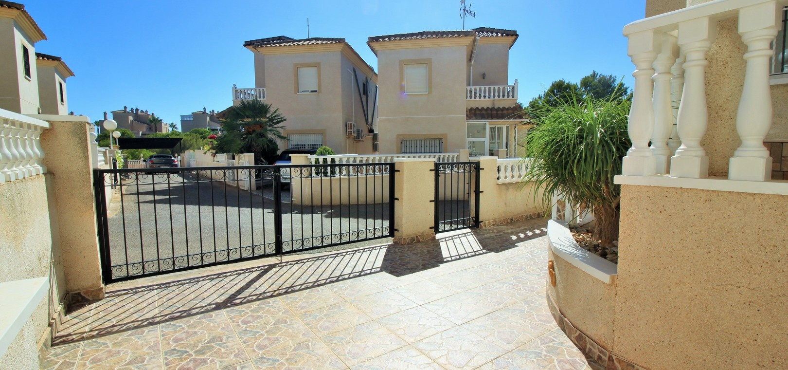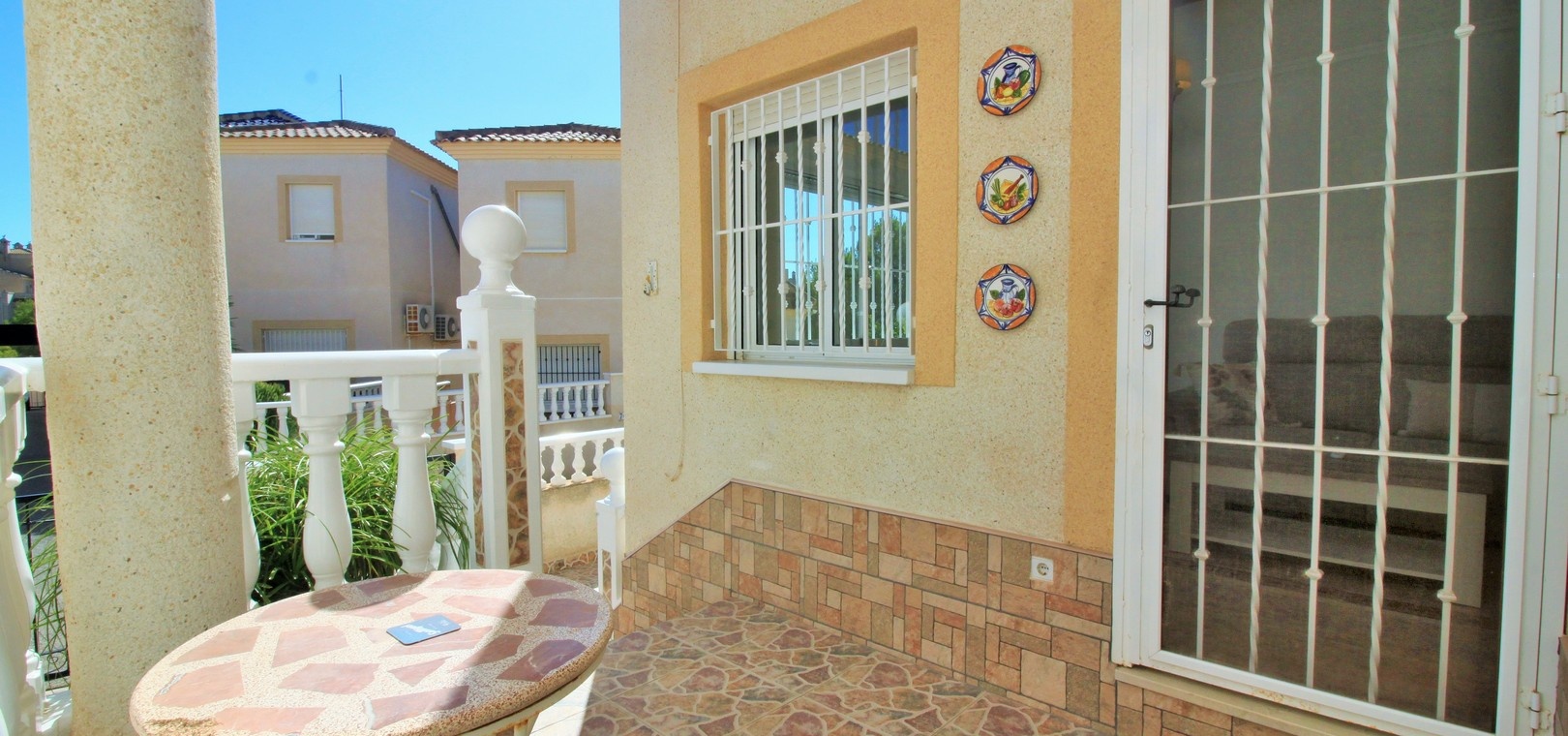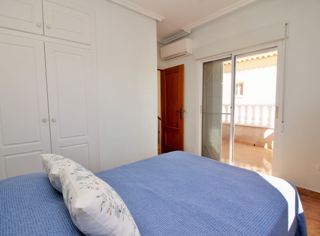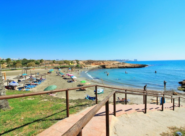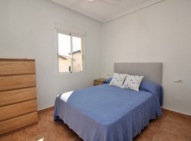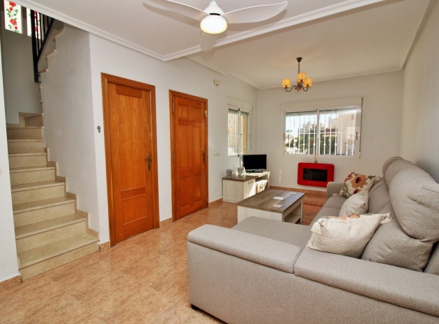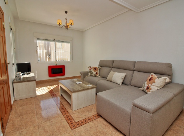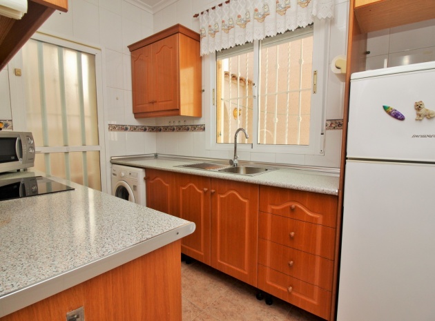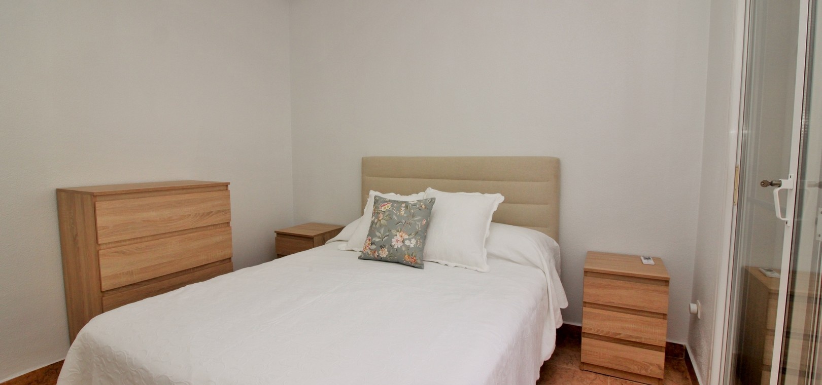 VERLAAGD MET €10.000! Prachtig gepresenteerde vrijstaande villa op het zuiden met gemeenschappelijk zwembad te koop in het wooncomplex La Pinada in Playa Flamenca. De villa verkeert in onberispelijke staat en is gelegen op een ideale locatie, op loopafstand van de lokale bars, restaurants, winkels, de zaterdagmarkt en het winkelcentrum Zenia Boulevard, met meer dan 155 winkels. De villa bevindt zich in de gemeenschap zonder doorgaand verkeer. Bezichtigingen worden ten zeerste aangeraden! Het pand is verdeeld over 2 verdiepingen, met op de begane grond een betegelde tuin met oprit, een verhoogd terras/porch die leidt naar de lichte en luchtige woon-eetkamer met aparte volledig uitgeruste keuken en een gerenoveerde badkamer beneden met inloopdouche. Vanuit de keuken heeft u ook toegang tot het buitenterras. Boven zijn 2 tweepersoonsslaapkamers met inbouwkasten en een gerenoveerde familiebadkamer met inloopdouche. Beide slaapkamers hebben een eigen balkon. De villa is goed onderhouden met nieuwe airconditioningunits, meubels, badkamers en overal opnieuw geverfd. Een perfect sleutelklaar pand, op een fantastische locatie in de buurt van de stranden en allerlei voorzieningen en diensten! La Pinada is een kleine en goed onderhouden gemeenschap die huiseigenaren gebruik biedt van een gemeenschappelijk zwembad. Neem vandaag nog contact met ons op om een bezichtiging te regelen!