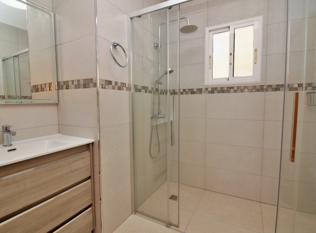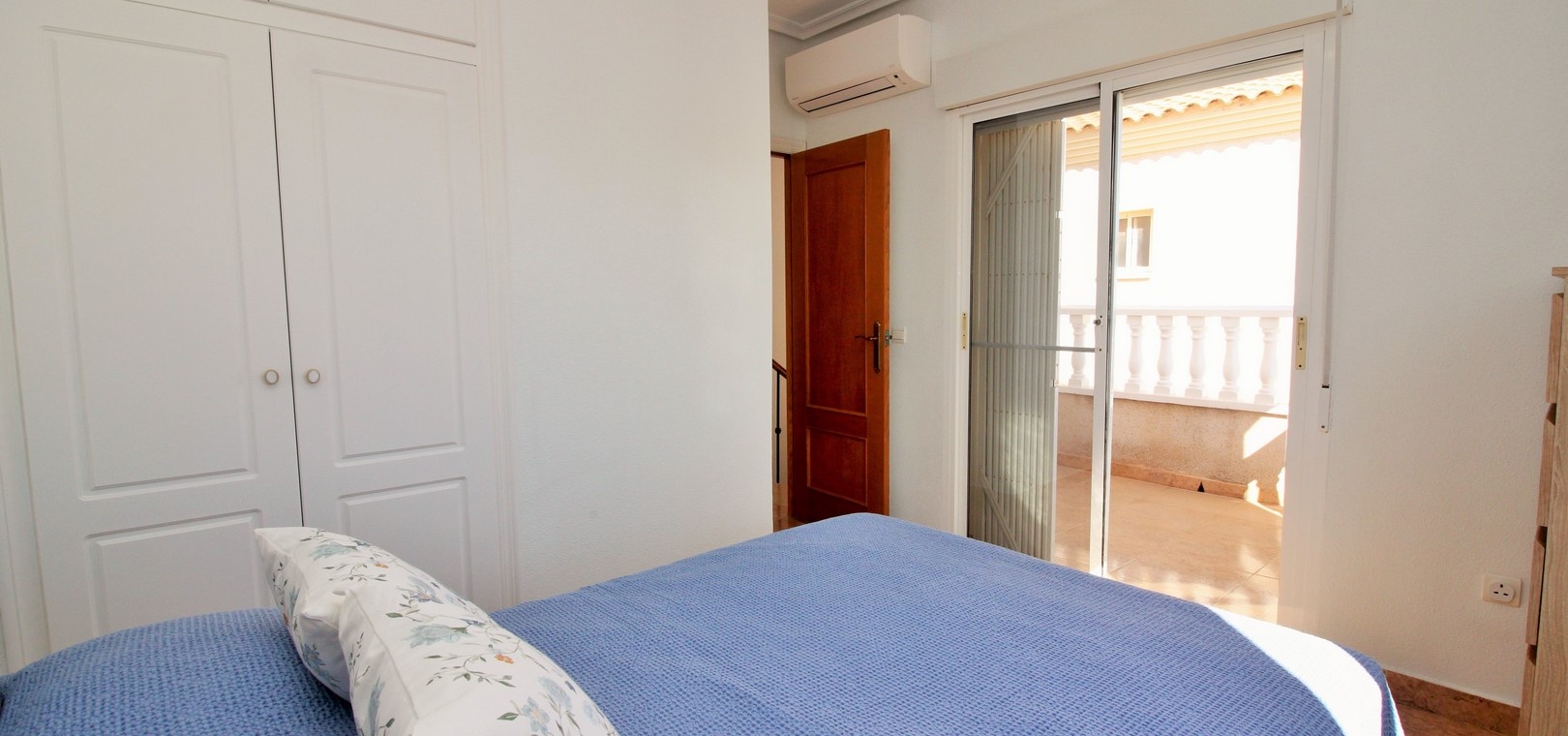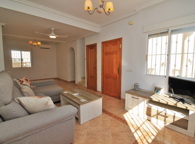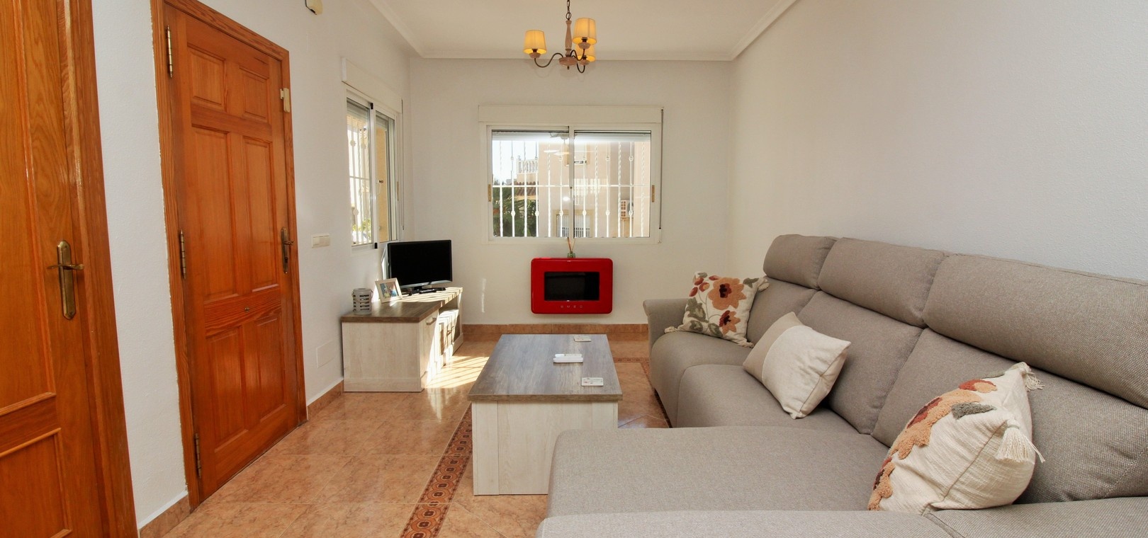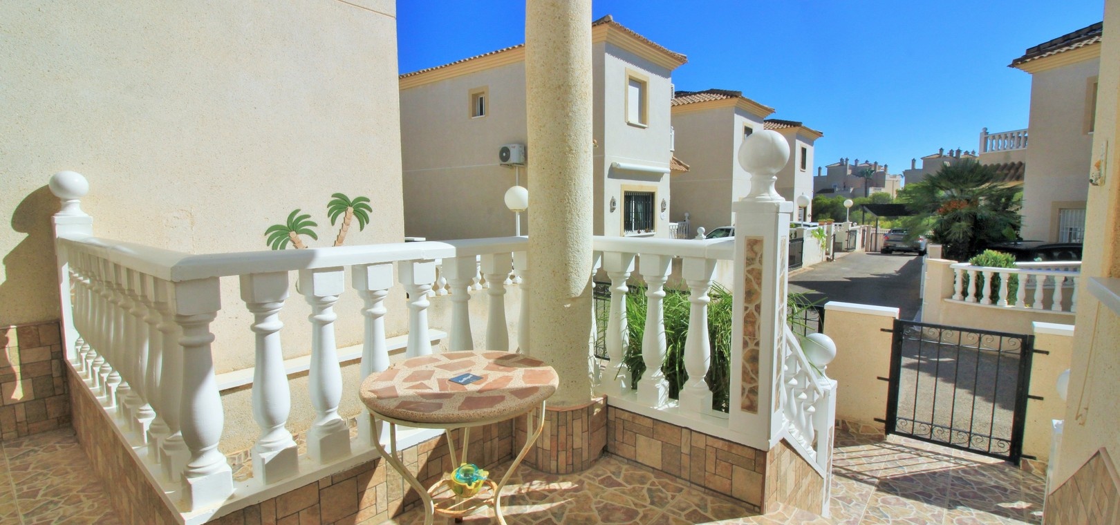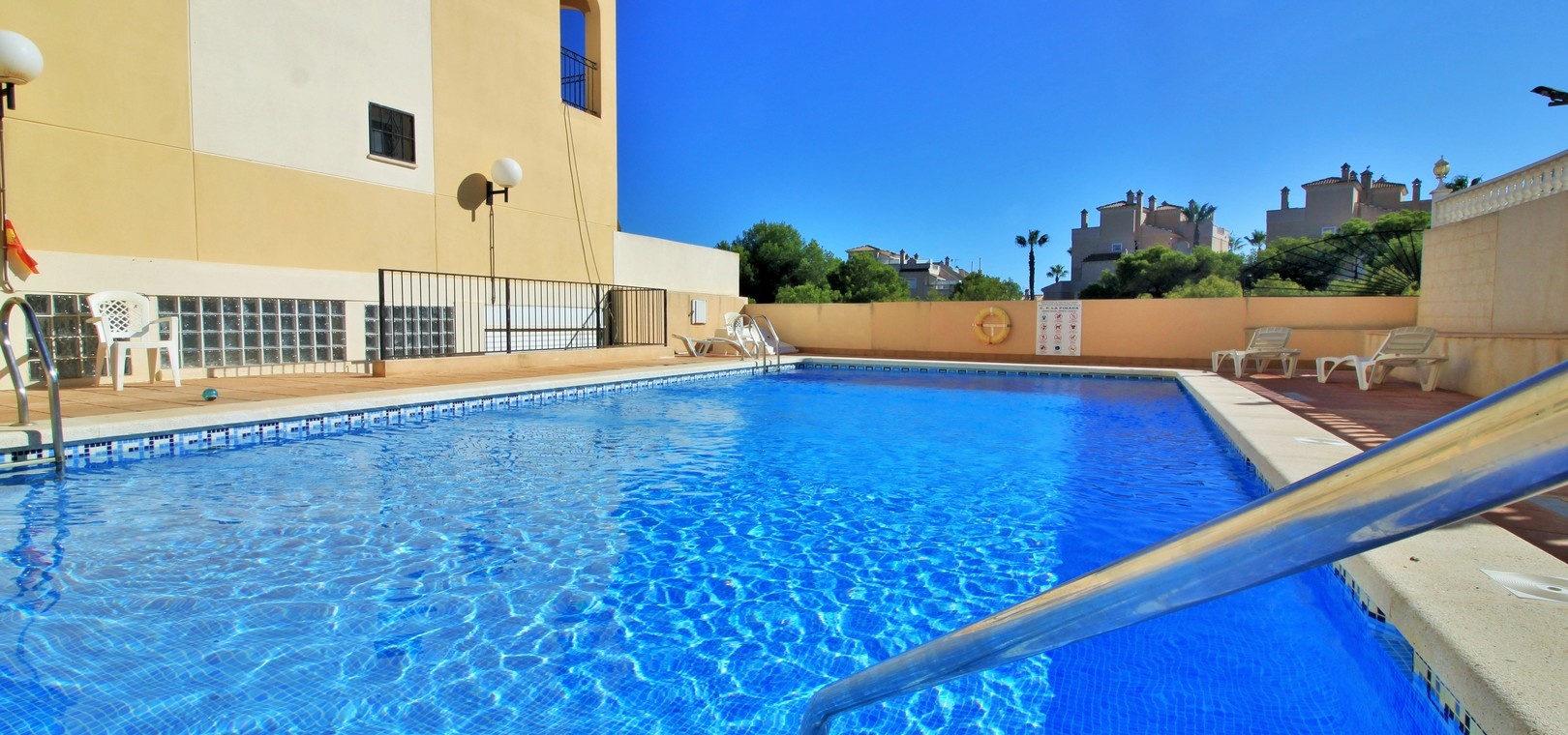 VERLAAGD MET €10.000! Prachtig gepresenteerde vrijstaande villa op het zuiden met gemeenschappelijk zwembad te koop in het wooncomplex La Pinada in Playa Flamenca. De villa verkeert in onberispelijke staat en is gelegen op een ideale locatie, op loopafstand van de lokale bars, restaurants, winkels, de zaterdagmarkt en het winkelcentrum Zenia Boulevard, met meer dan 155 winkels. De villa bevindt zich in de gemeenschap zonder doorgaand verkeer. Bezichtigingen worden ten zeerste aangeraden! Het pand is verdeeld over 2 verdiepingen, met op de begane grond een betegelde tuin met oprit, een verhoogd terras/porch die leidt naar de lichte en luchtige woon-eetkamer met aparte volledig uitgeruste keuken en een gerenoveerde badkamer beneden met inloopdouche. Vanuit de keuken heeft u ook toegang tot het buitenterras. Boven zijn 2 tweepersoonsslaapkamers met inbouwkasten en een gerenoveerde familiebadkamer met inloopdouche. Beide slaapkamers hebben een eigen balkon. De villa is goed onderhouden met nieuwe airconditioningunits, meubels, badkamers en overal opnieuw geverfd. Een perfect sleutelklaar pand, op een fantastische locatie in de buurt van de stranden en allerlei voorzieningen en diensten! La Pinada is een kleine en goed onderhouden gemeenschap die huiseigenaren gebruik biedt van een gemeenschappelijk zwembad. Neem vandaag nog contact met ons op om een bezichtiging te regelen!