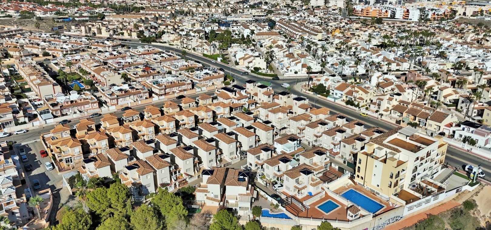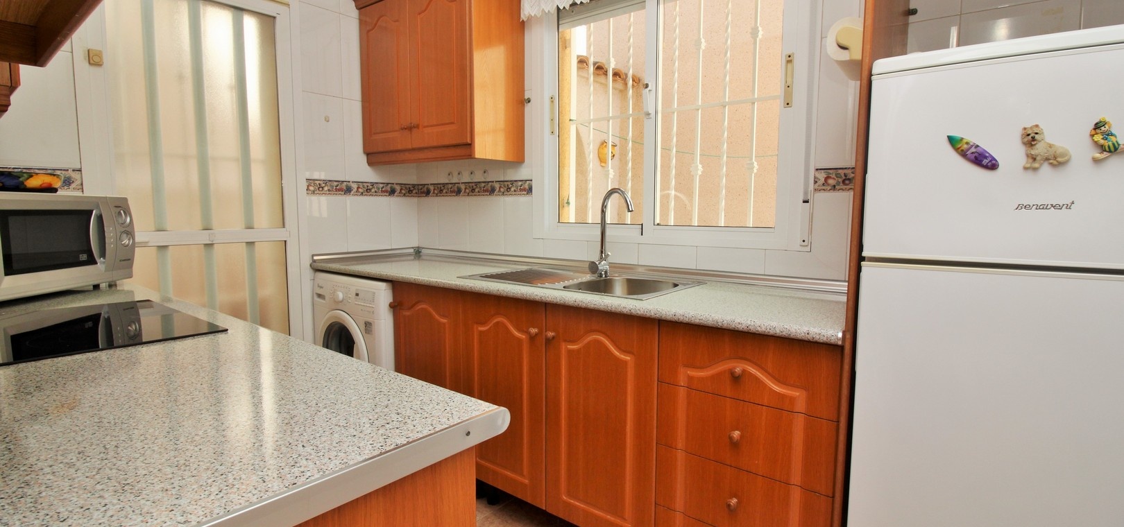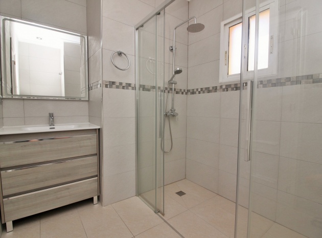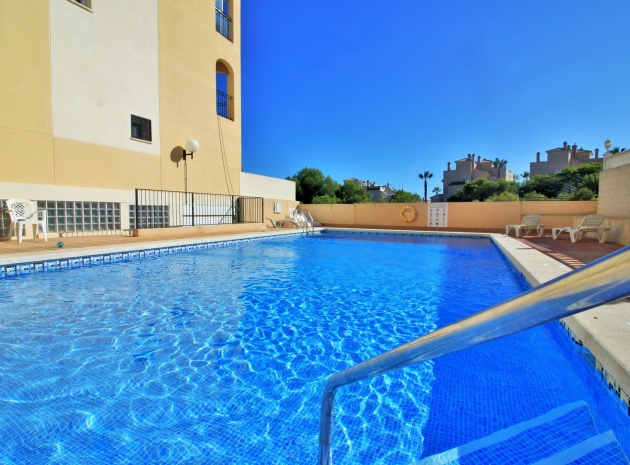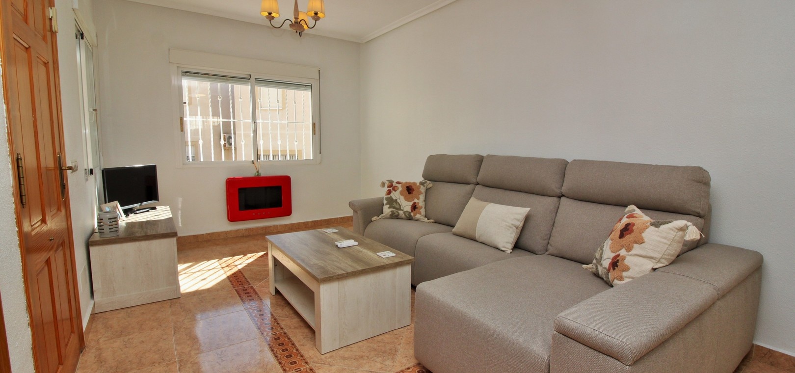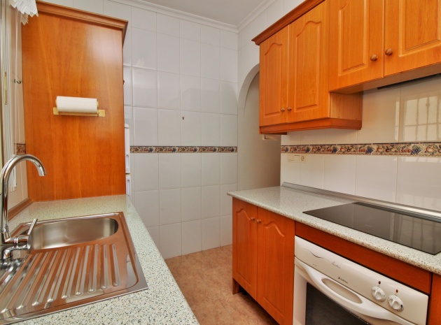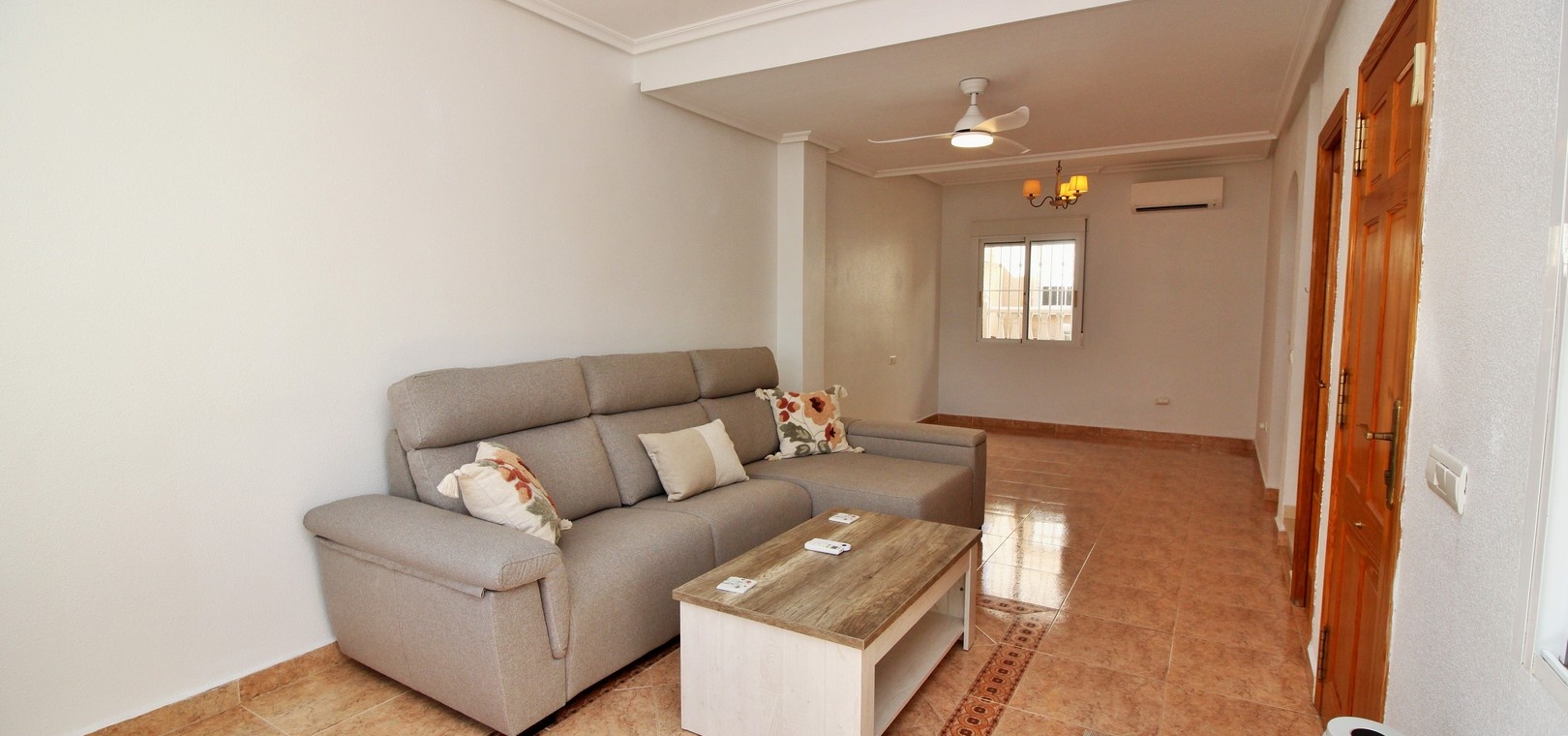 VERLAAGD MET €10.000! Prachtig gepresenteerde vrijstaande villa op het zuiden met gemeenschappelijk zwembad te koop in het wooncomplex La Pinada in Playa Flamenca. De villa verkeert in onberispelijke staat en is gelegen op een ideale locatie, op loopafstand van de lokale bars, restaurants, winkels, de zaterdagmarkt en het winkelcentrum Zenia Boulevard, met meer dan 155 winkels. De villa bevindt zich in de gemeenschap zonder doorgaand verkeer. Bezichtigingen worden ten zeerste aangeraden! Het pand is verdeeld over 2 verdiepingen, met op de begane grond een betegelde tuin met oprit, een verhoogd terras/porch die leidt naar de lichte en luchtige woon-eetkamer met aparte volledig uitgeruste keuken en een gerenoveerde badkamer beneden met inloopdouche. Vanuit de keuken heeft u ook toegang tot het buitenterras. Boven zijn 2 tweepersoonsslaapkamers met inbouwkasten en een gerenoveerde familiebadkamer met inloopdouche. Beide slaapkamers hebben een eigen balkon. De villa is goed onderhouden met nieuwe airconditioningunits, meubels, badkamers en overal opnieuw geverfd. Een perfect sleutelklaar pand, op een fantastische locatie in de buurt van de stranden en allerlei voorzieningen en diensten! La Pinada is een kleine en goed onderhouden gemeenschap die huiseigenaren gebruik biedt van een gemeenschappelijk zwembad. Neem vandaag nog contact met ons op om een bezichtiging te regelen!