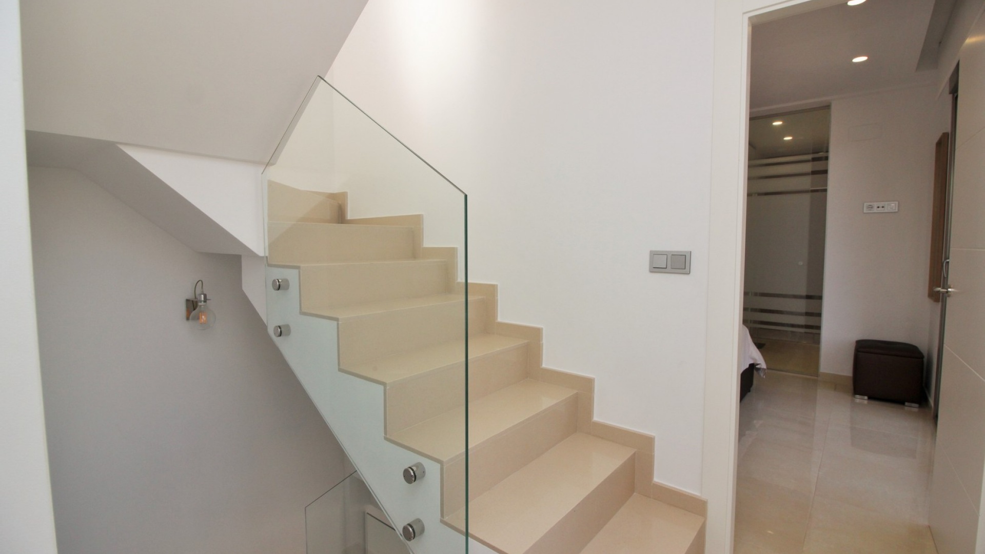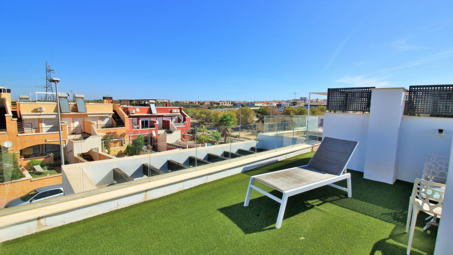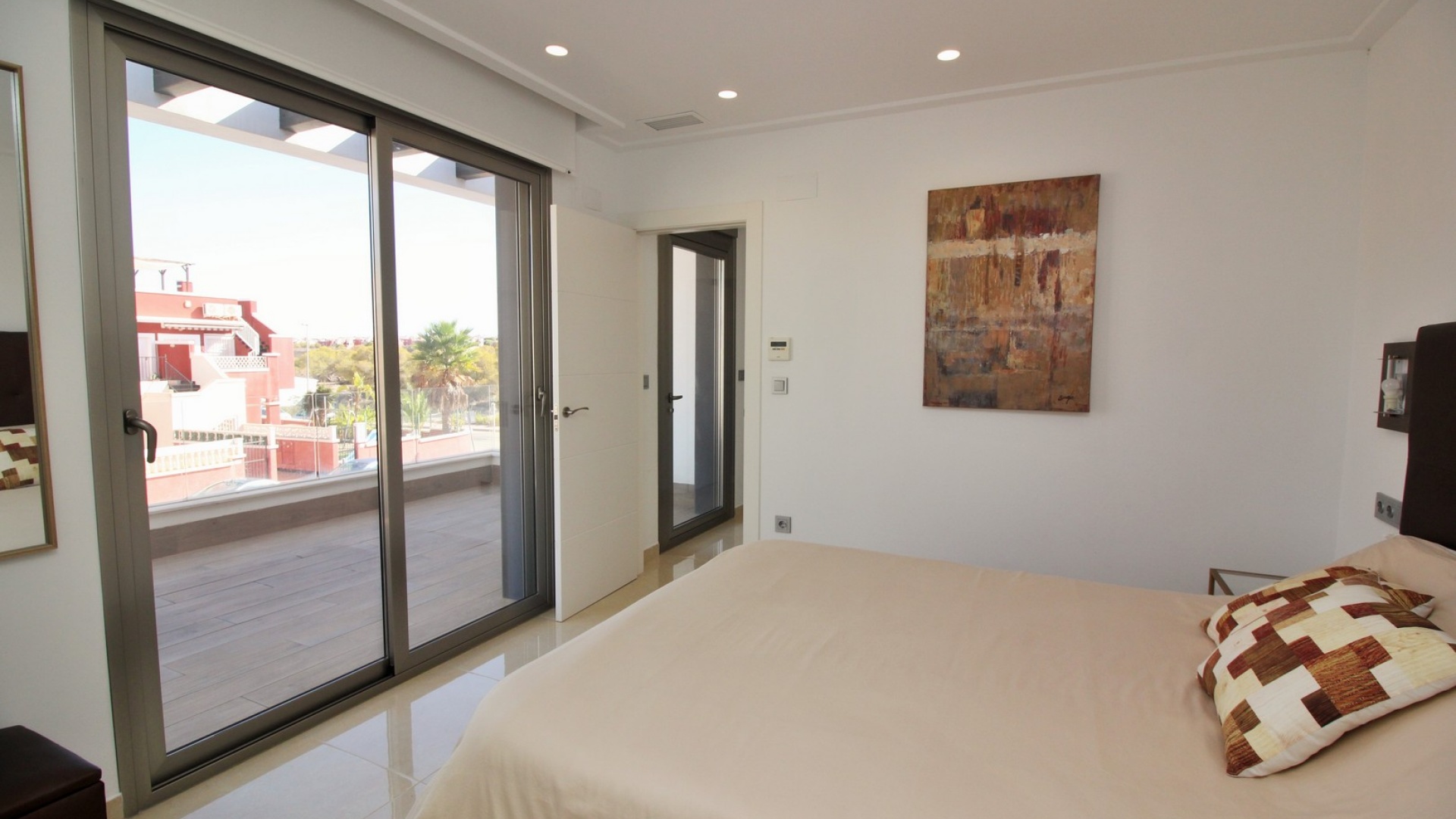 Luxe vrijstaande villa met 5 slaapkamers, 4 badkamers, privézwembad en onderbouw te koop in de wijk Pau 26 in Villamartin. Dit prachtige pand is gebouwd in 2019 en biedt geweldige buitenruimte, waaronder een privétuin met off-road parkeren, privézwembad, privébalkon en een groot dakterras. Een ideaal huis voor permanente bewoning of als vakantiehuis, met geweldige verhuurmogelijkheden! De woonruimte op de begane grond bestaat uit een lichte en open woon-eetkamer met een moderne keuken aan de zijkant met inbouwapparatuur, een slaapkamer beneden met inbouwkasten en een badkamer met inloopdouche. Er zijn grote schuifdeuren in de woonkamer en keuken die naar het zwembad leiden en veel natuurlijk licht binnenlaten. Boven zijn er nog eens 2 tweepersoonsslaapkamers met dubbele inbouwkasten en beide hebben een eigen badkamer. Er is een groot balkon op de eerste verdieping dat toegankelijk is vanuit beide slaapkamers en vanaf de overloop. Een interne trap vanaf de overloop leidt naar het grote dakterras, waar de hele dag zon is! Een interne trap vanuit de woonkamer leidt naar beneden naar de onderbouw, die een enorme ruimte biedt om te gebruiken als een 2e woonkamer / bioscoopkamer, met nog eens 2 tweepersoonsslaapkamers, een badkamer met inloopdouche en een berging. De villa biedt vele functies, waaronder elektrische rolluiken, airconditioning in het hele pand, energiezuinige ledverlichting en vloerverwarming in alle badkamers. Wordt gemeubileerd verkocht, inclusief huishoudelijke apparaten.