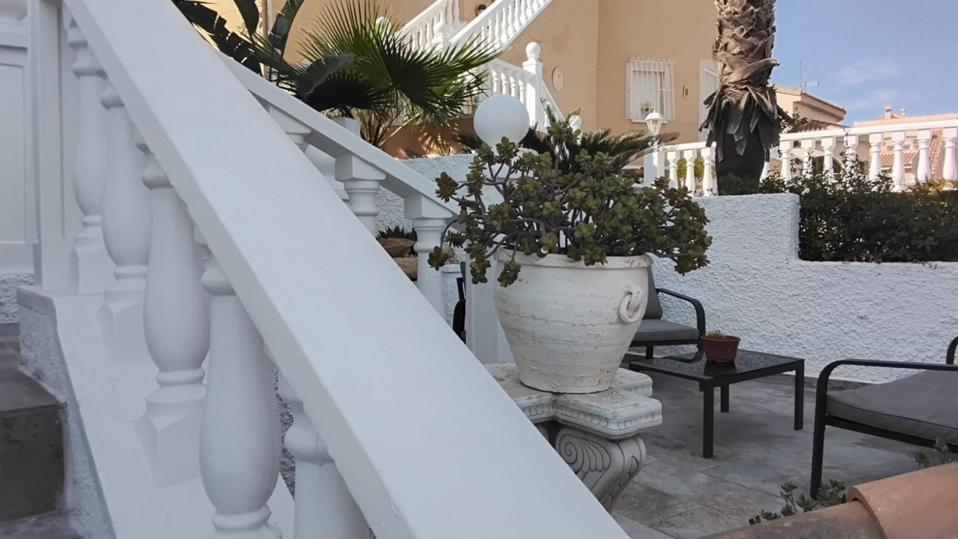Schitterende vrijstaande villa met privézwembad, gastenverblijf en garage in Ciudad QuesadaOntdek deze prachtig onderhouden vrijstaande villa, ideaal gelegen in het hart van Ciudad Quesada, op korte loopafstand van de populaire golfbaan La Marquesa. Dit uitzonderlijke pand biedt alles wat u nodig heeft voor een comfortabele en luxe levensstijl onder de Spaanse zon.Belangrijkste kenmerken:Ruime woonkamer: Lichte en luchtige woon-eetkamer, perfect om te ontspannen en gasten te ontvangen.Volledig uitgeruste keuken: Een ruime keuken met moderne apparatuur en voldoende opbergruimte.Slaapkamers: Twee grote tweepersoonsslaapkamers met inbouwkasten in de hoofdvilla, plus een extra slaapkamer in het gastenverblijf.Badkamers: Een goed ingerichte badkamer in de hoofdvilla en een extra badkamer in het gastenverblijf.Gastenverblijf: Een zelfstandig appartement op de benedenverdieping met een open keuken, woonkamer, tweepersoonsslaapkamer, kleedkamer en moderne badkamer.Airconditioning: Warme en koude airconditioning in verschillende kamers voor comfort het hele jaar door.Buitenruimte:Groot privéperceel: Gelegen op een indrukwekkend perceel van 575 m² met toegang vanaf twee straten.Privézwembad: Geniet van een prachtig privézwembad omgeven door zonneterrassen.Eten en drinken in de buitenlucht BBQ-gebied: Ideaal voor het organiseren van bijeenkomsten met familie en vrienden. Tuinen op meerdere niveaus: Verschillende terrassen en aangelegde gebieden met zowel zonnige als schaduwrijke plekken om het hele jaar door van te genieten. Garage: Veilige parkeergelegenheid op het terrein voor gemak en veiligheid. Toplocatie: Dichtbij voorzieningen: Op loopafstand van La Marquesa Golf Club, restaurants, bars en winkels. Dichtbij de stranden: Slechts 10-15 minuten rijden naar de prachtige zandstranden van Guardamar en Torrevieja. Gemakkelijke toegang tot de luchthaven: Slechts 35 minuten van de luchthaven Alicante-Elche. Deze villa wordt volledig gemeubileerd verkocht en is instapklaar. Mis deze uitzonderlijke kans niet om uw droomhuis te bezitten in een van de meest gewilde gebieden van de Costa Blanca Zuid. Neem vandaag nog contact met ons op voor meer informatie of om een bezichtiging te regelen!