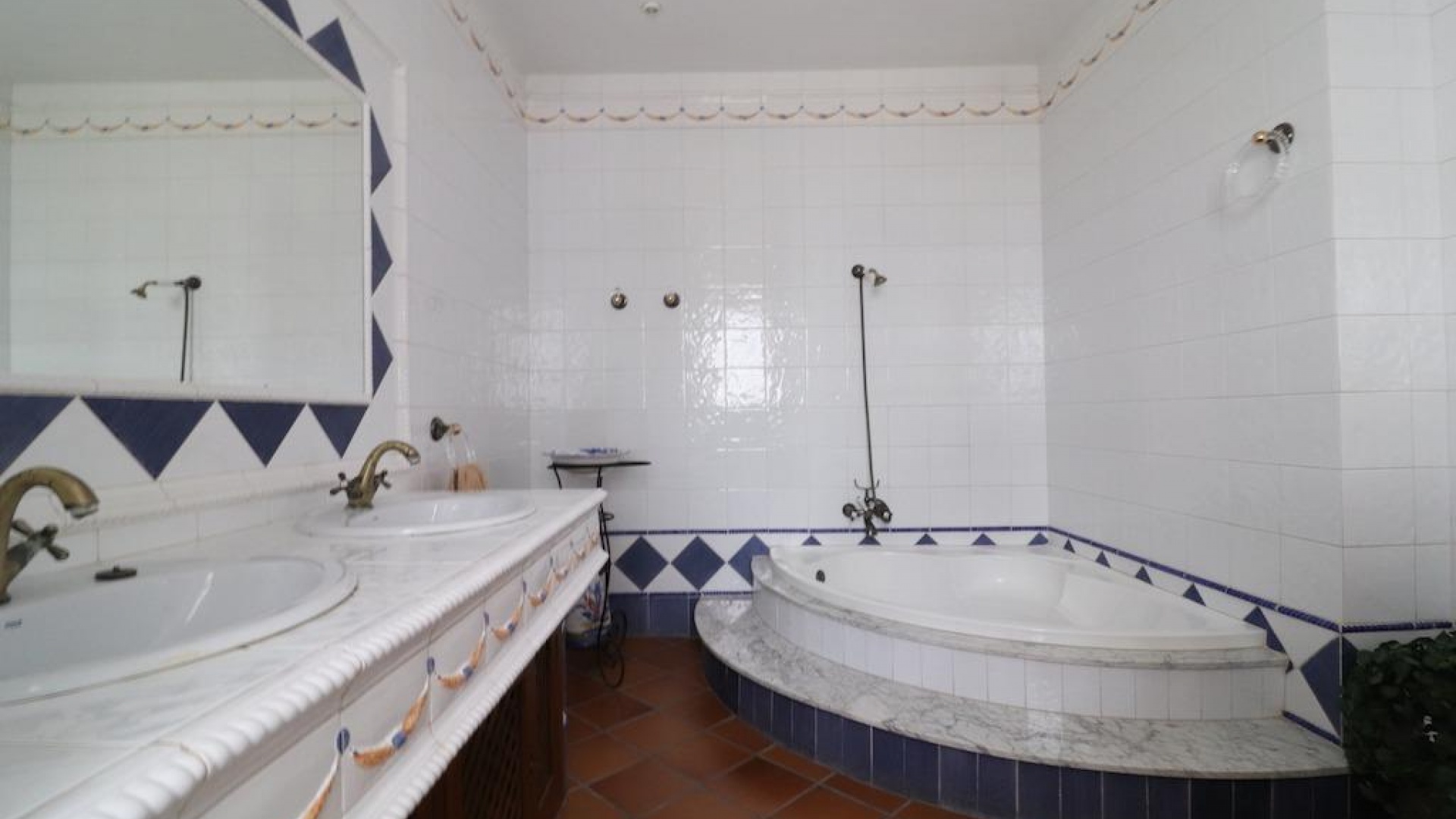 Mil Palmeras, Vrijstaande villa met een groot perceel van 1000 m2 en een huis met 2 verdiepingen plus een kelder-garage van ongeveer 350 m2, het ligt op slechts 300 m van het strand en heeft 4 slaapkamers, allemaal met een tweepersoonsbed, met 3 badkamers, een grote woon-eetkamer op twee niveaus, een grote aparte keuken met wasruimte, op de bovenverdieping is er nog een woonkamer met een biljart en een eigen bar, het huis heeft 3 terrassen, een garage voor twee auto's en een kelder, het heeft een grote tuin met barbecue en met een pergola en een groot privézwembad.