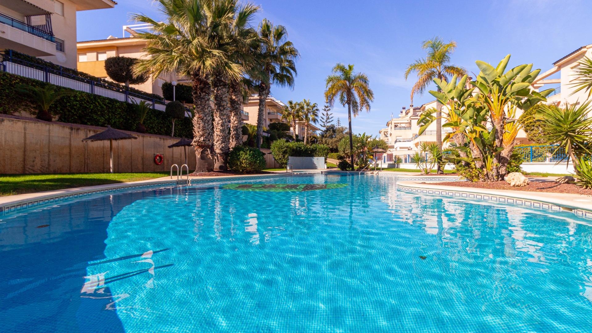 u Oase aan de Costa Blanca: Appartement in Riomar 9, Mil Palmeras~ ~Geniet van een bevoorrechte levensstijl in dit ruime en lichte appartement in Riomar 9, Mil Palmeras. Gelegen op een steenworp afstand van het strand, biedt het een onbelemmerd uitzicht op zee vanaf het terras en een rustige en gastvrije sfeer. ~Binnenruimtes: ~ ~Drie slaapkamers: Perfect voor gezinnen of stellen die op zoek zijn naar ruimte en comfort. Alle slaapkamers hebben ingebouwde kasten.~ ~Twee complete badkamers: modern en functioneel, uitgerust met alles wat u nodig heeft voor uw comfort.~ ~Onafhankelijke keuken met wasruimte: geniet van een grote en comfortabele ruimte om uw favoriete recepten te bereiden met een aparte wasruimte voor meer gemak.~ ~Ruime en lichte woonkamer: ideaal om te genieten van onvergetelijke momenten met familie en vrienden, met toegang tot het terras en uitzicht op zee.~ ~ ~Exterieur: ~ ~Terras met vrij uitzicht: ontspan en geniet van het uitzicht op zee, de zeebries en de zonsondergangen vanaf uw terras.~ ~Gemeenschappelijk zwembad: perfect om af te koelen op zonnige dagen en om momenten te delen met uw buren.~ ~Groene en aangelegde ruimtes: geniet van het buitenleven en de rust van de groene en aangelegde ruimtes van het complex.~ ~ ~Voorzieningen: ~ ~Garage en berging: maak u geen zorgen over parkeren en geniet van extra ruimte om uw spullen op te bergen.~ ~Verkocht met meubels: klaar om in te trekken, u hoeft zich geen zorgen te maken over de decoratie.~ ~Airconditioning: geniet het hele jaar door van een aangename temperatuur.~ ~ ~Toplocatie: ~ ~Op een steenworp afstand van het strand: geniet van zon, zand en zee op slechts een paar minuten van uw huis.