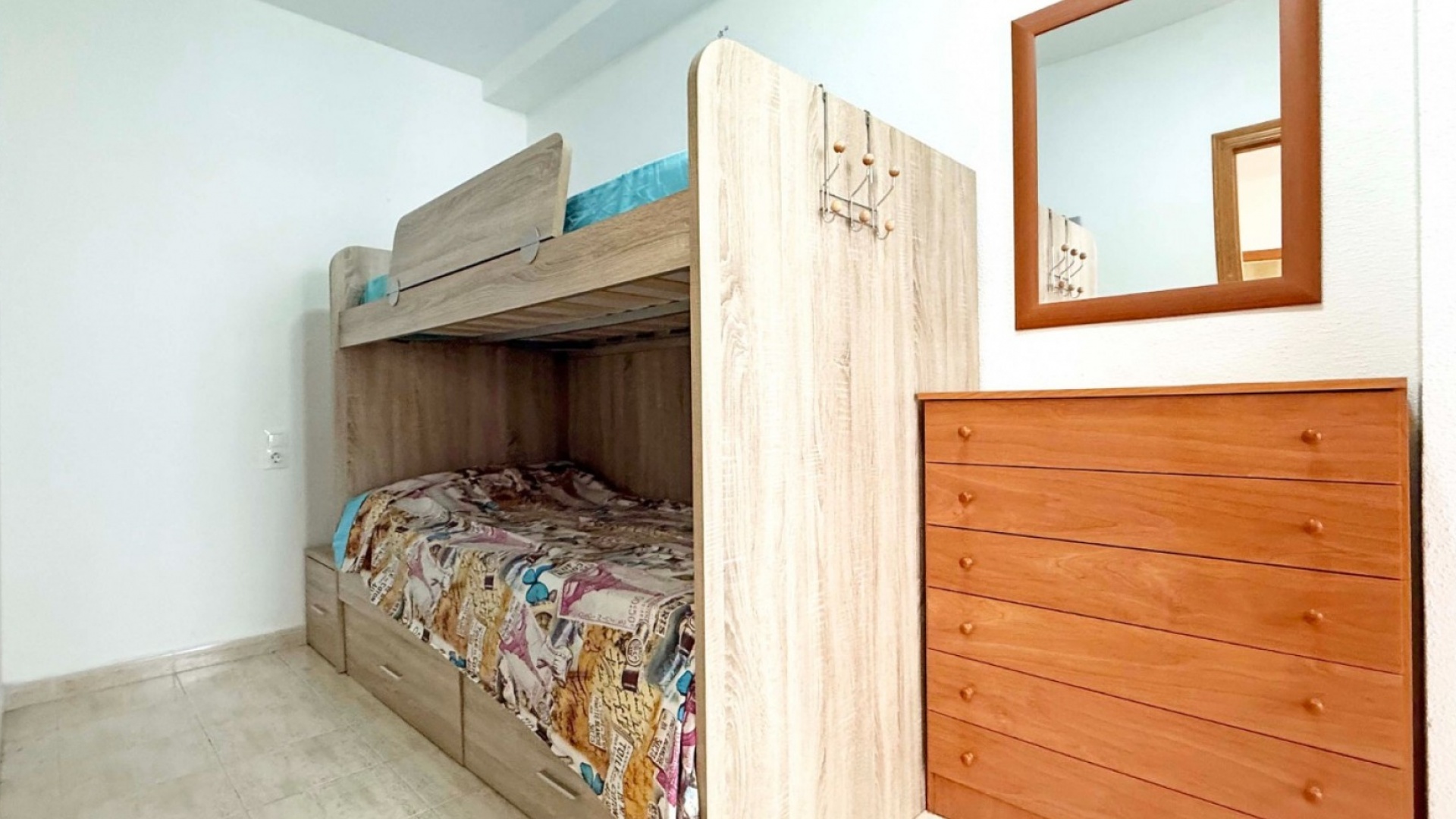 Dit charmante appartement met twee slaapkamers en één badkamer heeft 56 m² aan comfortabele leefruimte en biedt een schilderachtig uitzicht op het gemeenschappelijke zwembad. Ideaal gelegen op slechts één rij van het strand, op slechts twee minuten lopen van Playa del Acequión en Playa de los Náufragos, waardoor het perfect is voor degenen die op zoek zijn naar de ultieme mediterrane levensstijl.
