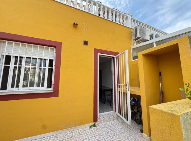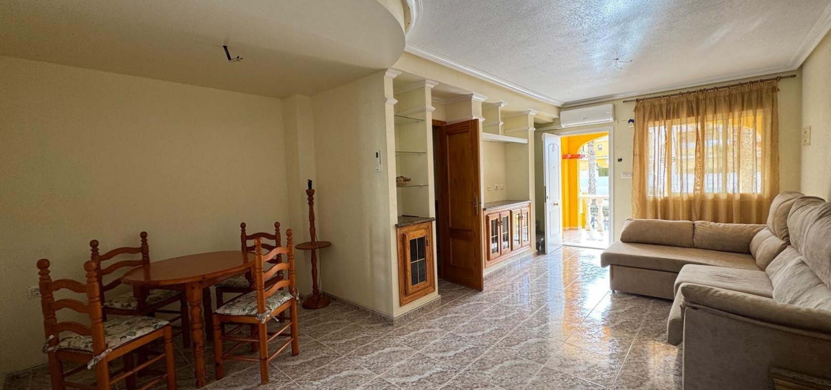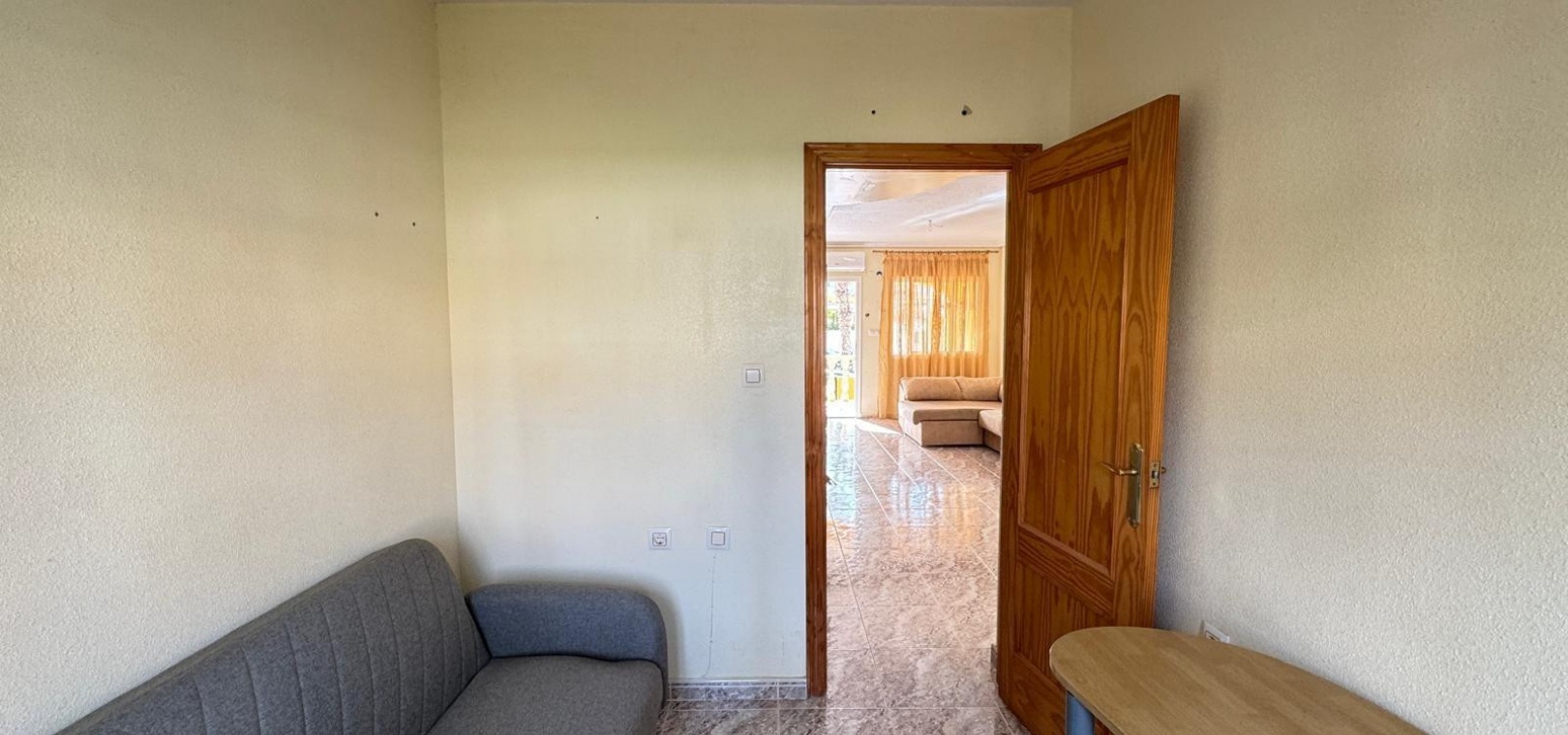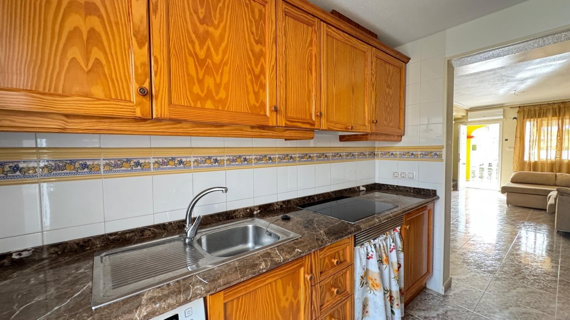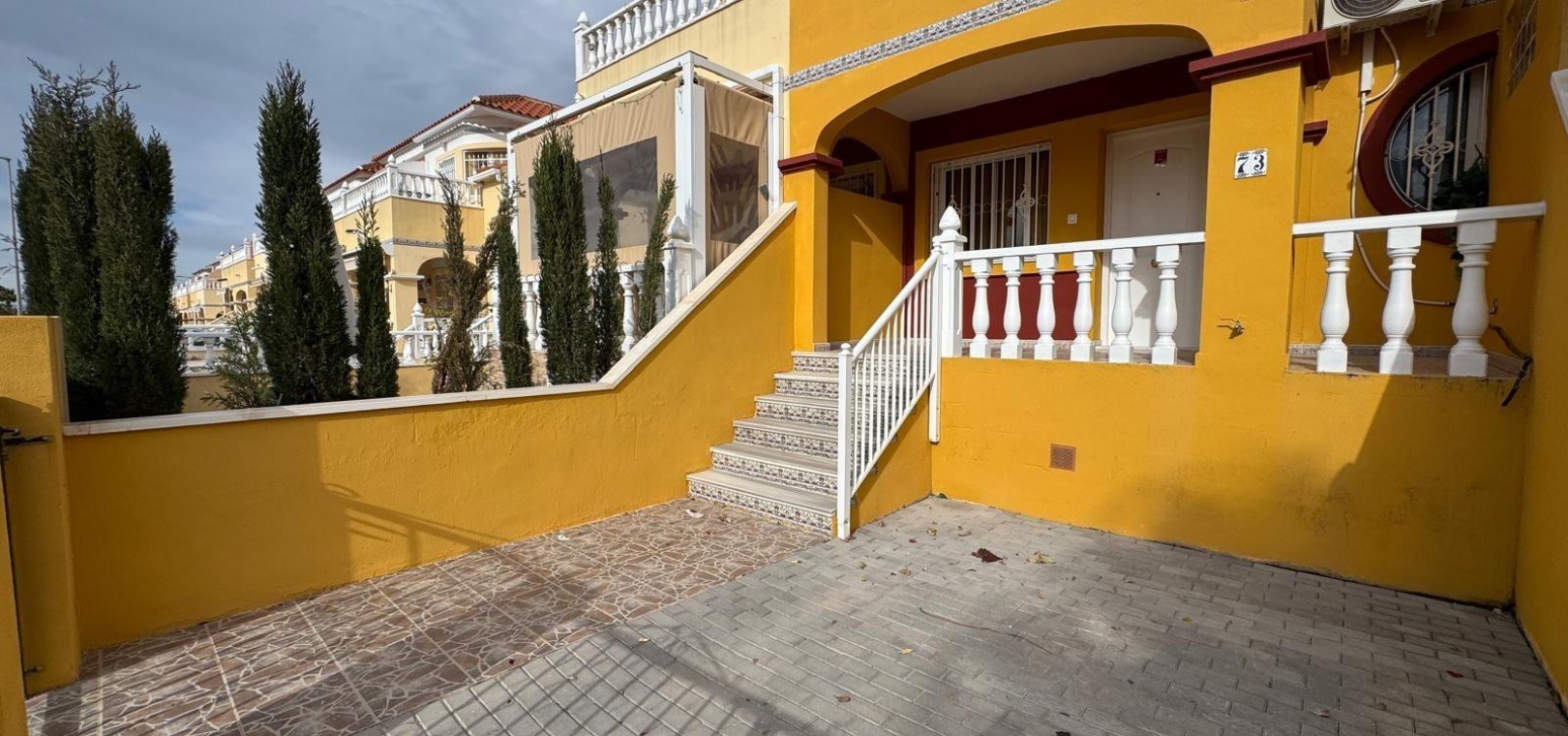 Op de begane grond bevinden zich een woon-/eetkamer met warme en koude airconditioning, een aparte ingerichte keuken, een aparte bijkeuken, een achtertuin met directe toegang tot het gemeenschappelijke zwembad, 1 slaapkamer met tweepersoonsbed en 1 toilet.