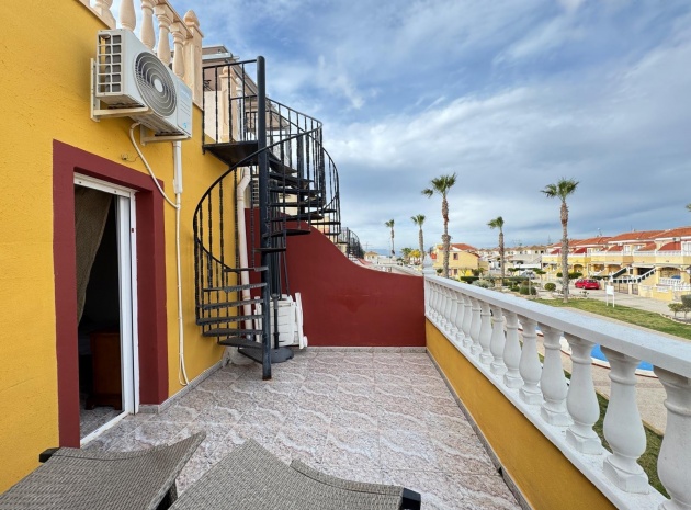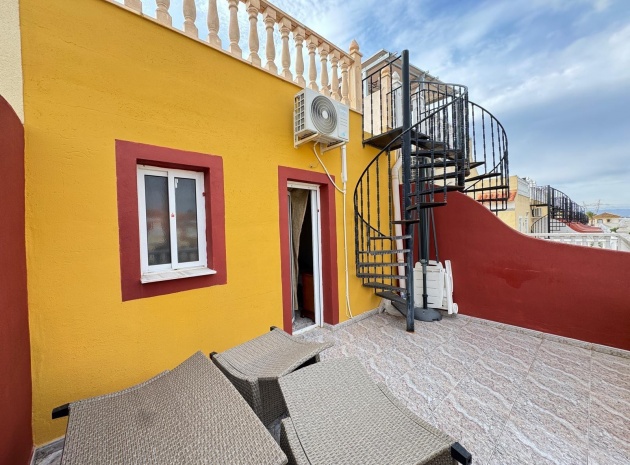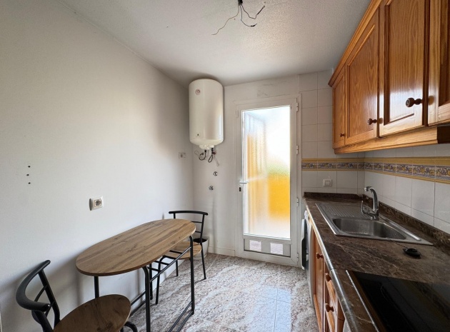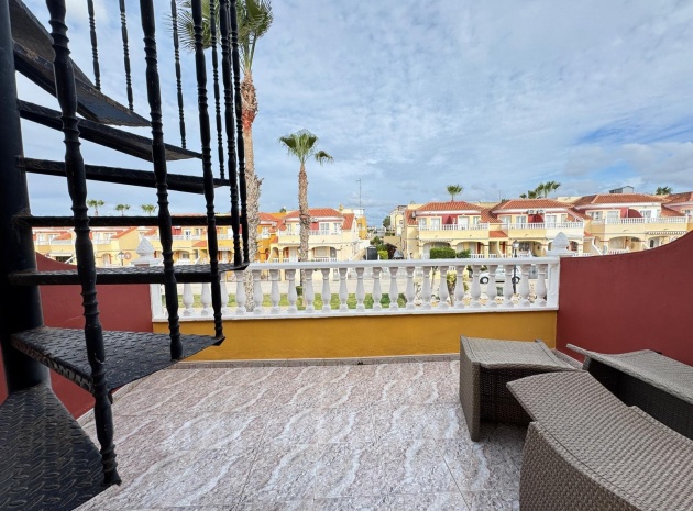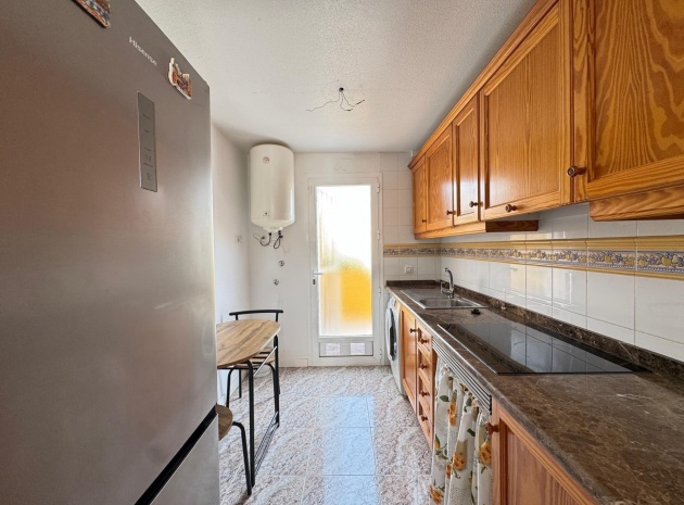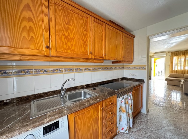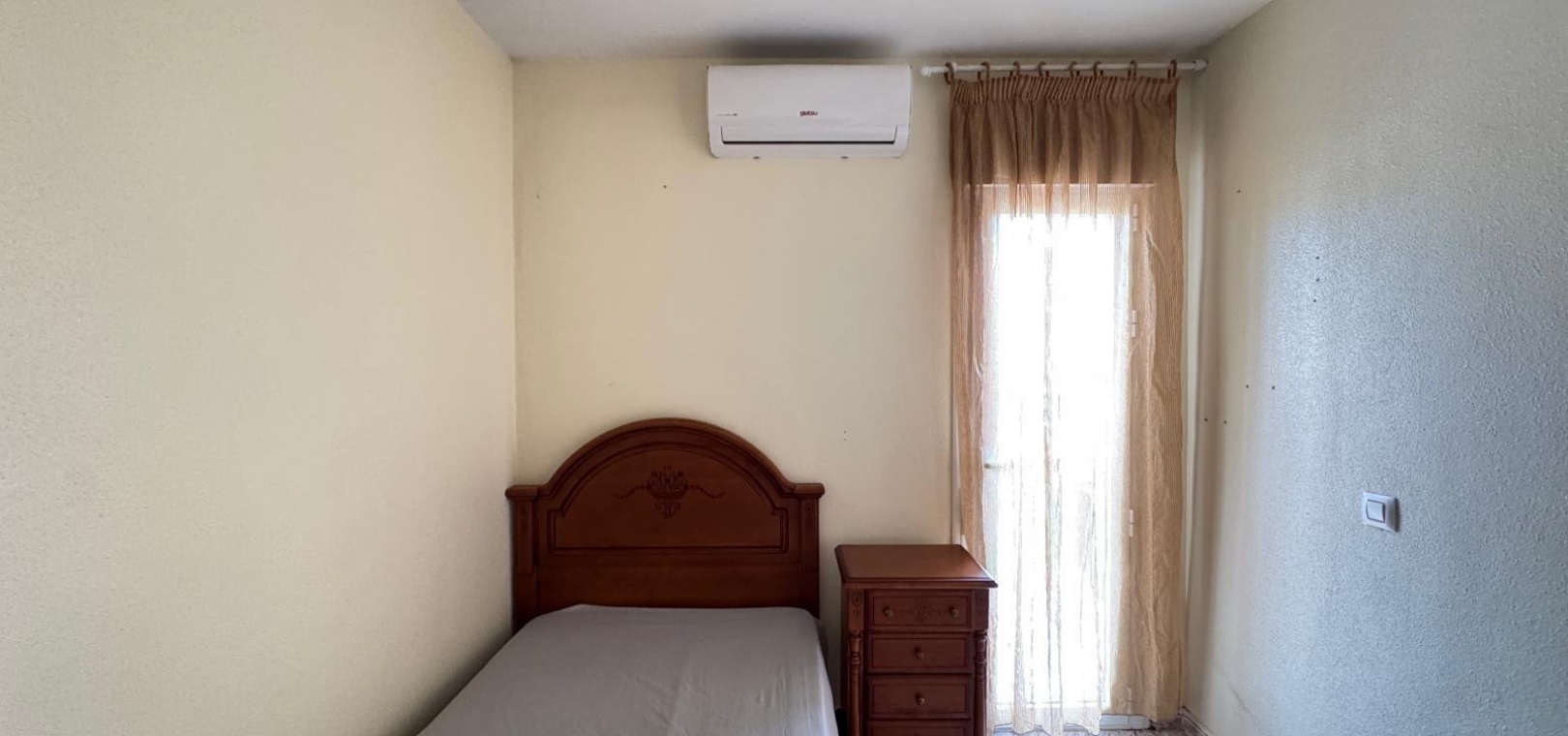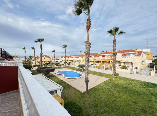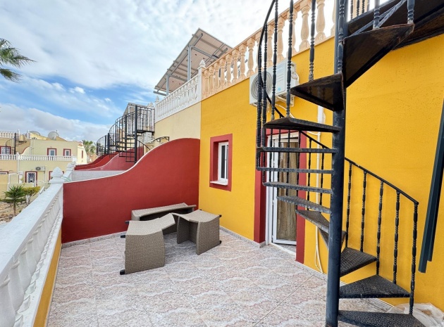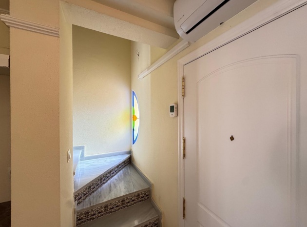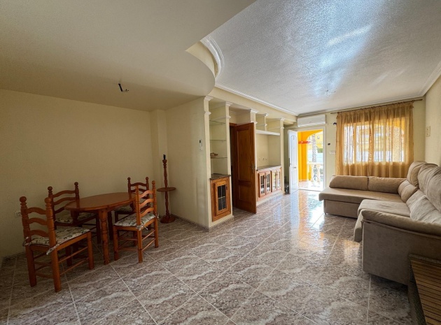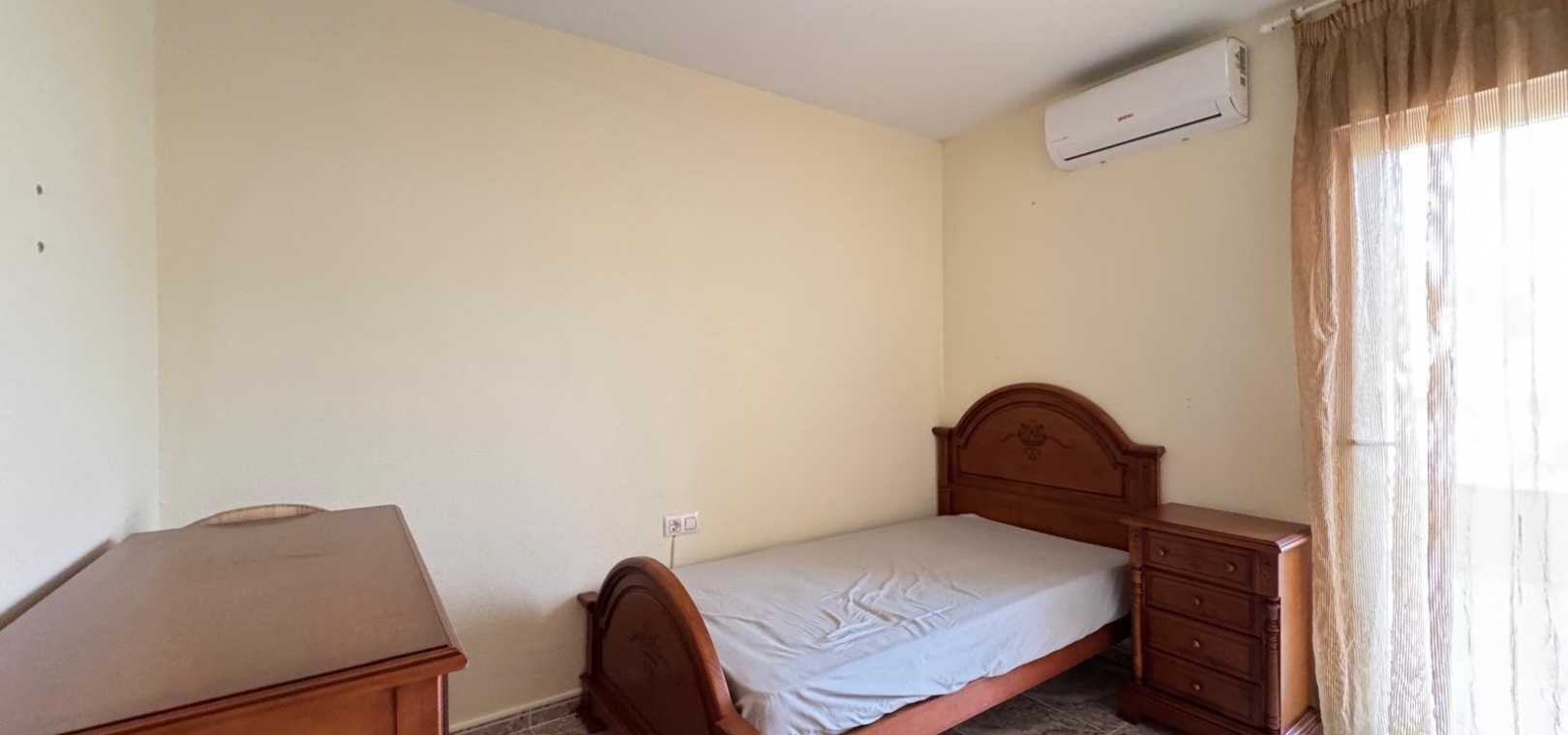Op de begane grond bevinden zich een woon-/eetkamer met warme en koude airconditioning, een aparte ingerichte keuken, een aparte bijkeuken, een achtertuin met directe toegang tot het gemeenschappelijke zwembad, 1 slaapkamer met tweepersoonsbed en 1 toilet.