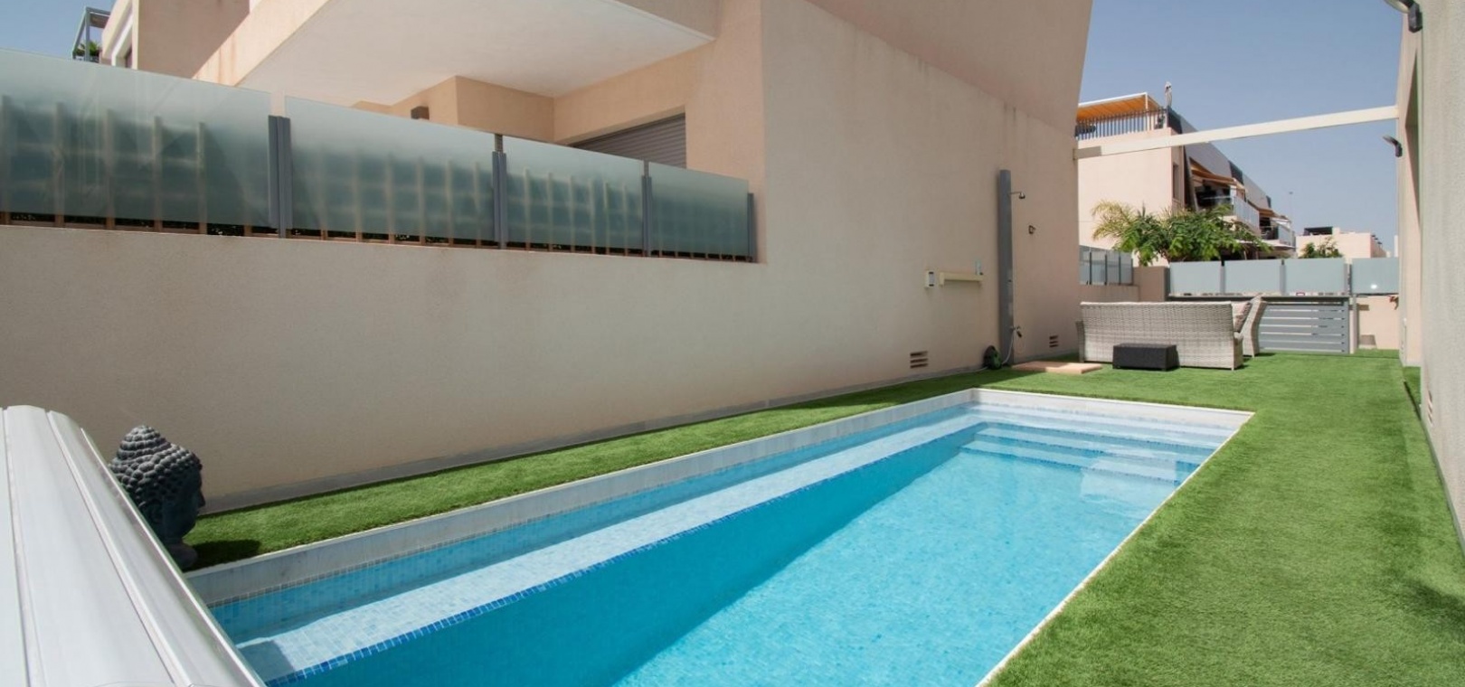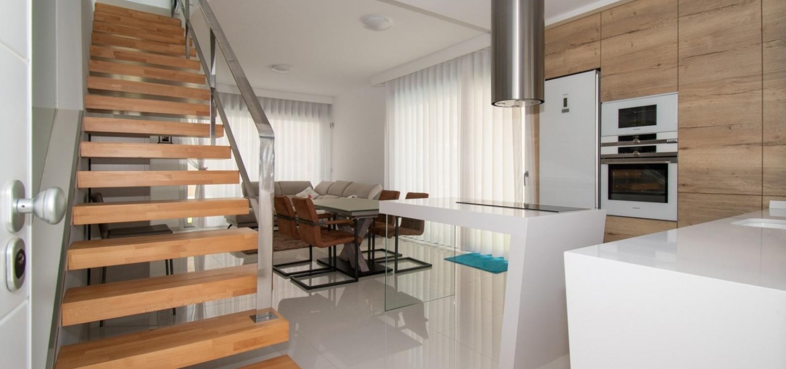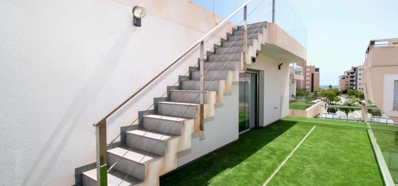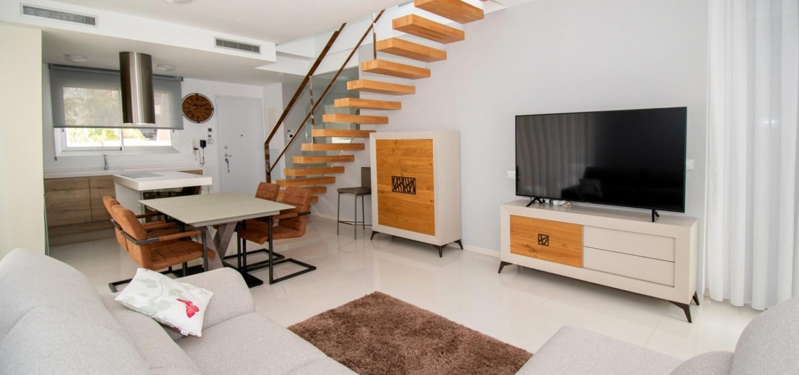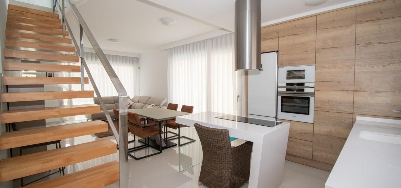 Deze vrijstaande villa met drie slaapkamers op het oosten in Mil Palmeras ligt op slechts 150 meter van de prachtige zee en de stranden van Mil Palmeras, op loopafstand van een scala aan lokale voorzieningen en faciliteiten. Deze moderne, hoogwaardige woning, gebouwd in 2019, beschikt over 3 slaapkamers en 3 doucheruimtes (2 en suite), allemaal met inbouwkasten. Airzone-airconditioning zorgt voor comfort, terwijl de open keuken met een kookeiland en Siemens-apparaten een luxe tintje toevoegt. De villa beschikt ook over een bijkeuken, off-road parkeren en een kunstgrastuin, aangevuld met een overdekt terras naast de woonkamer. Het solarium op twee niveaus biedt een spectaculair uitzicht op zee en de woning beschikt over een aparte privégarage. Een verwarmd privézwembad met een zwembadafdekking verbetert de buitenruimte, terwijl de villa volledig gemeubileerd wordt verkocht met een veiligheidsdeur voor extra gemoedsrust. Deze woning heeft een bebouwde oppervlakte van 120 m² op een perceel van 320 m² en biedt vele extra's. De woning ligt op slechts vijf minuten rijden van Orihuela Costa aan de Costa Blanca Zuid.