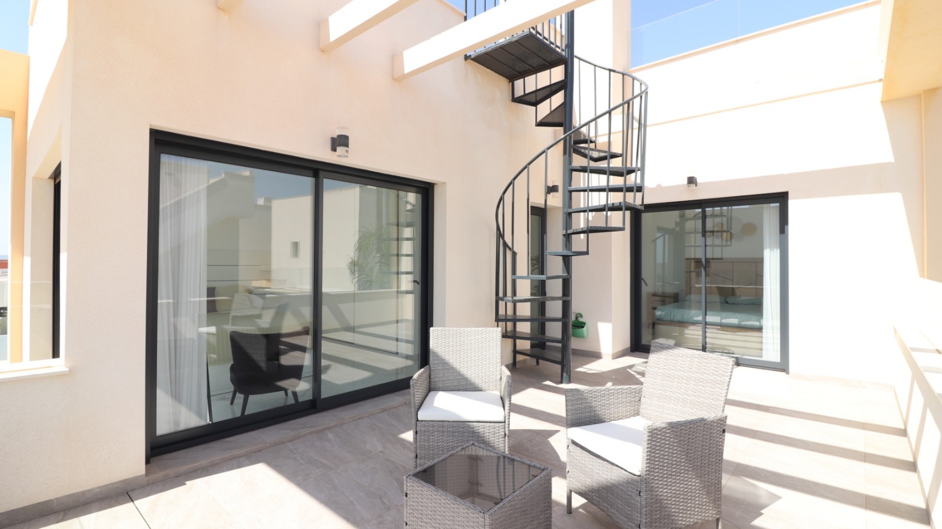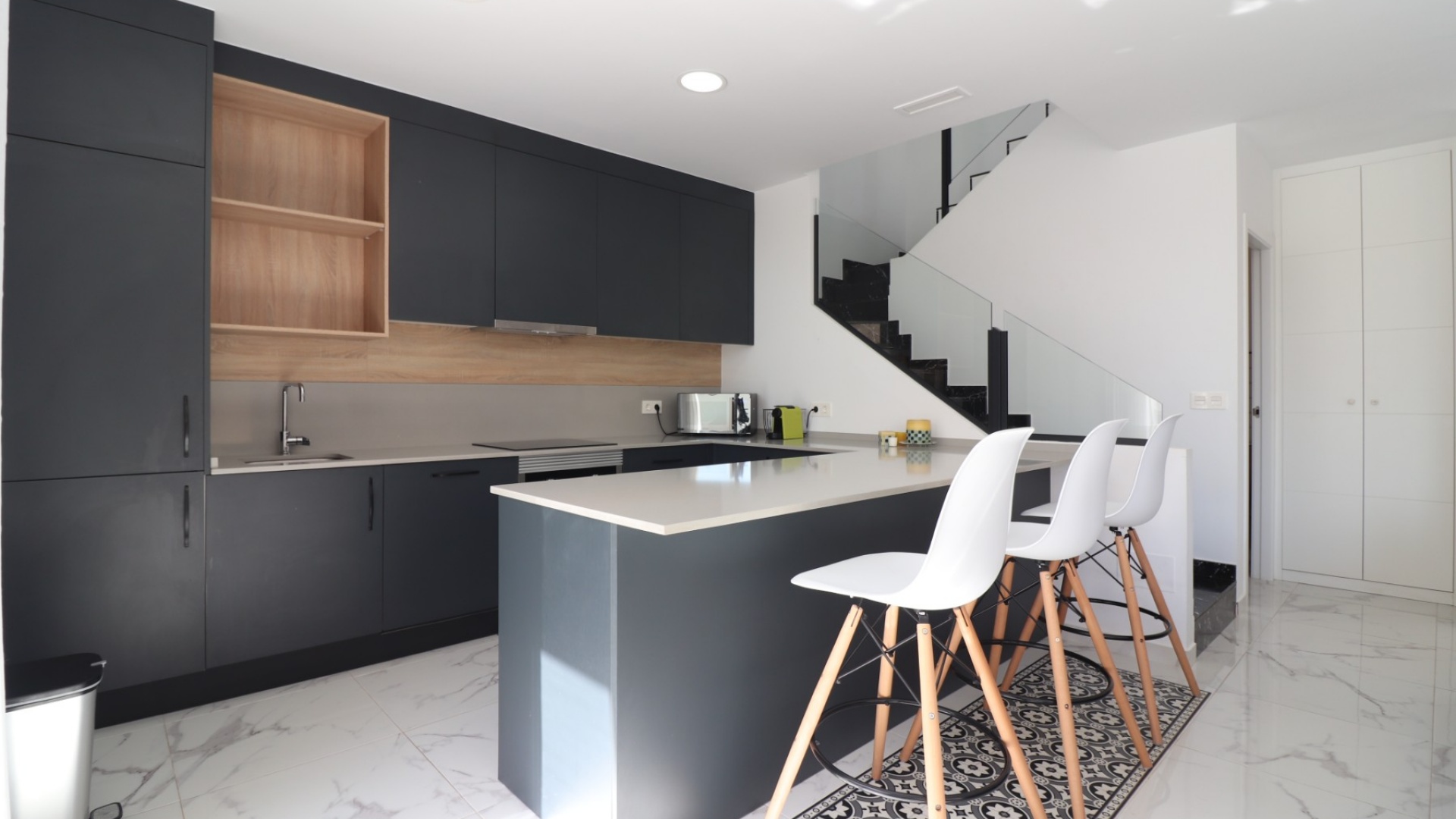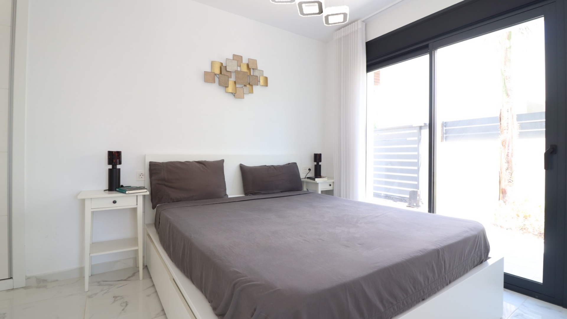 Deze vrijstaande villa met drie slaapkamers op het zuiden in La Herrada, Los Montesinos, ligt op 5 minuten lopen van voorzieningen en faciliteiten in de urbanisatie zelf en op slechts 15 minuten rijden van het strand. De villa beschikt over twee doucheruimtes, een garderobe en een open keuken. Het enorme dakterras biedt een prachtig uitzicht op het meer. Extra voorzieningen zijn onder meer elektrische rolluiken, airconditioning in het hele huis en inbouwkasten in alle drie de slaapkamers, waarbij twee slaapkamers een eigen badkamer hebben. Buiten beschikt het pand over een eigen betegelde en met kunstgras begroeide tuin, een eigen zwembad van 6,5x3 en een schaduwrijk terras naast het zwembad, perfect om te ontspannen. Er is parkeergelegenheid buiten de weg en twee van de slaapkamers leiden naar een mooi groot schaduwrijk terras met een licht uitzicht op het meer op de eerste verdieping. Deze moderne villa, gebouwd in 2021, ligt in Costa Blanca Zuid en biedt hoogwaardige afwerkingen, een bouwoppervlak van 135 m2 op een perceel van 213 m2 en heeft geen gemeenschapskosten. DEZE WONING BESCHIKT OOK OVER EEN TOERISTISCHE VERGUNNING!