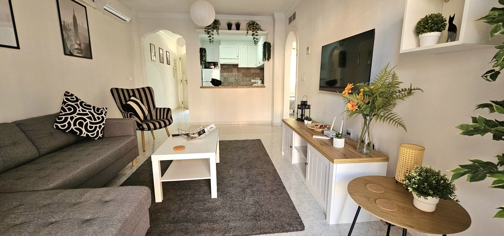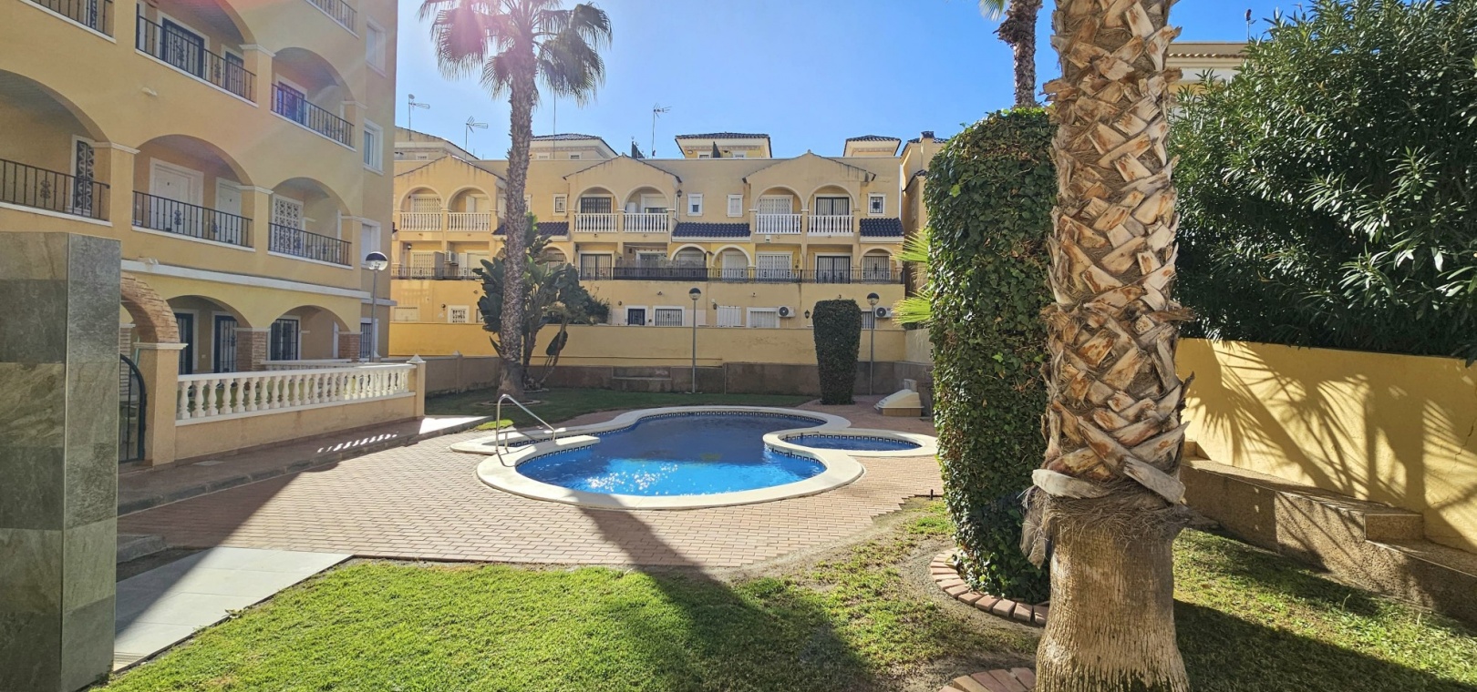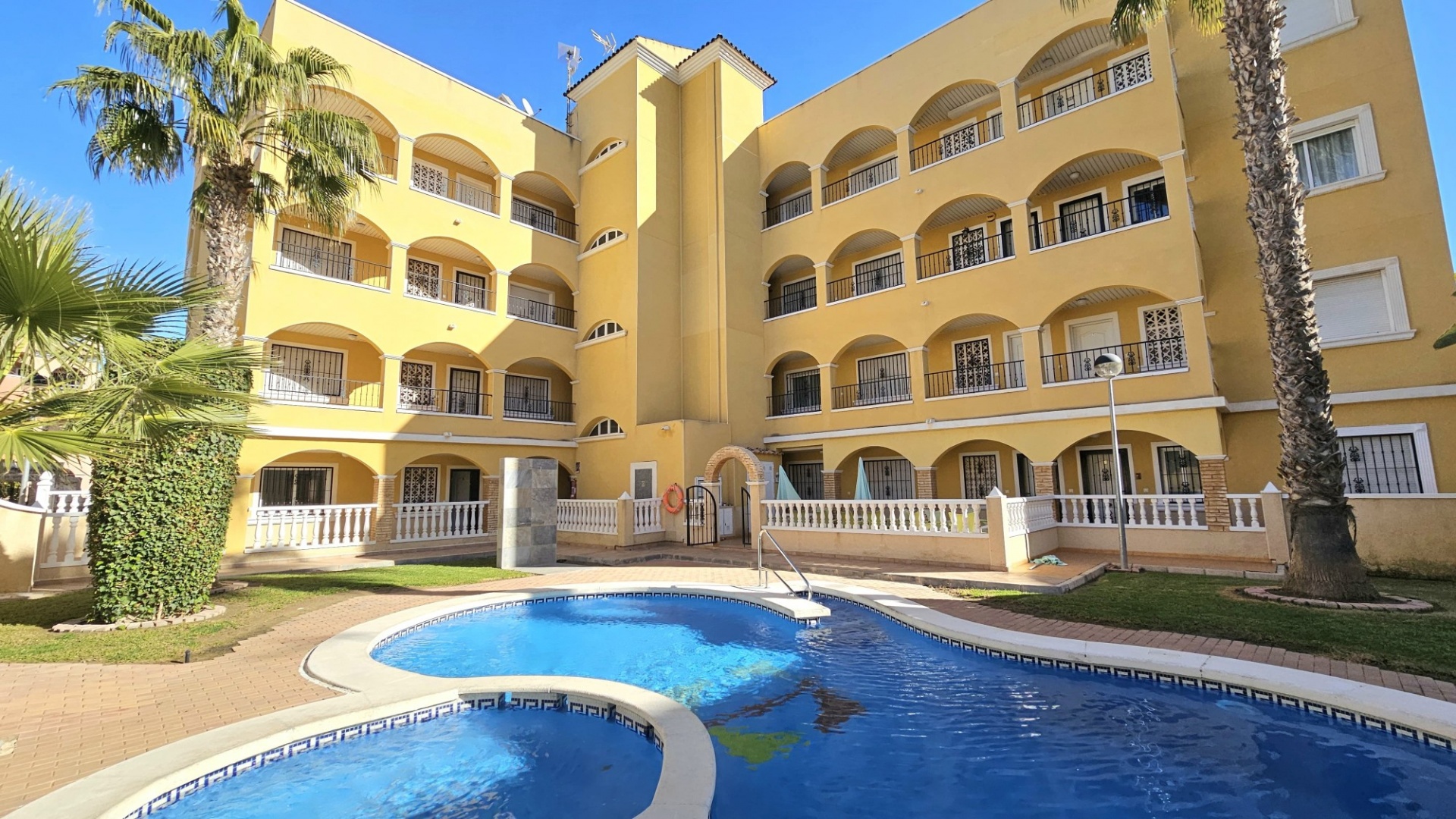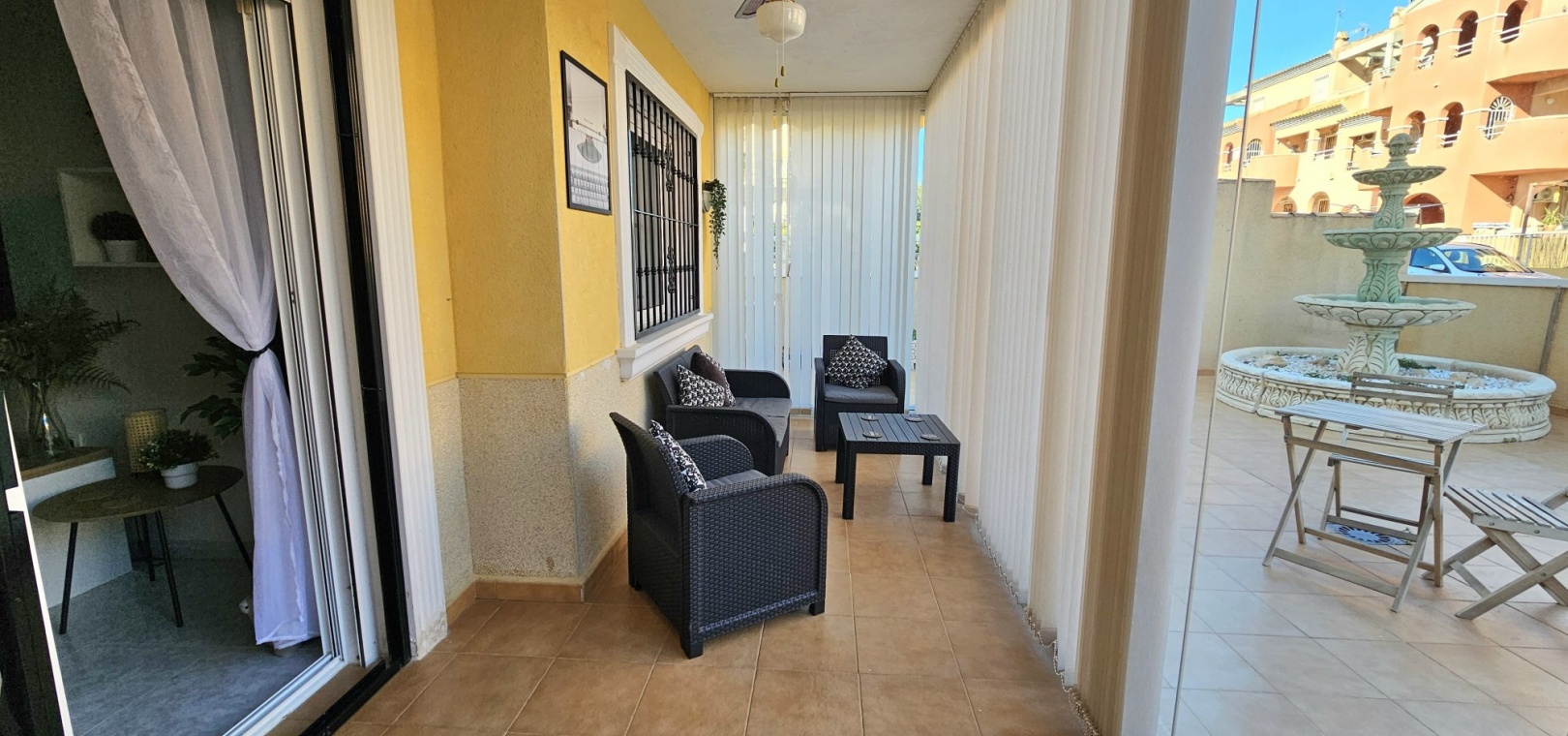 Dit unieke appartement met twee slaapkamers op de begane grond in Las Filipinas ligt op korte rijafstand van de golfbaan Villamartin en zijn populaire "plein". Bars, restaurants en een supermarkt van een grote keten liggen op slechts een paar minuten afstand, terwijl het winkelcentrum La Fuente op 15 minuten lopen ligt. Het winkelcentrum La Zenia Boulevard en de prachtige stranden zijn binnen 10-15 minuten rijden te bereiken. Dit prachtig gepresenteerde pand ligt op een hoekperceel van 107 m2 en is licht en uitnodigend. Het entreeterras is overdekt en omsloten met glazen gordijnen, waardoor een veelzijdige ruimte ontstaat om het hele jaar door van te genieten. Binnen is de woon-/eetkamer voorzien van een airconditioning en dubbele glazen schuifdeuren voor een licht en luchtig gevoel. De in Amerikaanse stijl ingerichte keuken is zowel functioneel als stijlvol, aangevuld met een aparte bijkeuken. Beide slaapkamers met tweepersoonsbedden zijn voorzien van inbouwkasten, terwijl de moderne ingerichte familiedouche de indeling van het interieur compleet maakt. De betegelde 'L'-vormige tuin biedt voldoende buitenruimte om te ontspannen of te entertainen. Extra voorzieningen zijn onder meer vooraf geïnstalleerde airconditioning, een ondergrondse parkeerplaats met berging, een gemeenschappelijk zwembad en het extra voordeel van een toeristenvergunning. Dit maakt dit pand een fantastische investering of vakantiehuis in Costa Blanca Zuid.