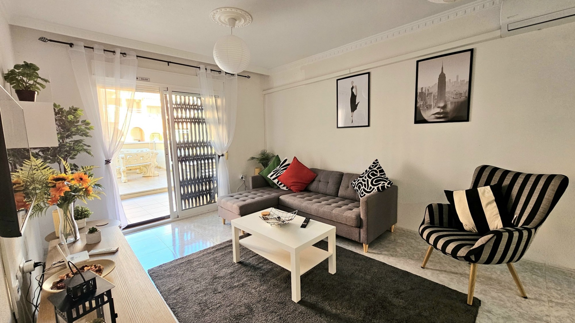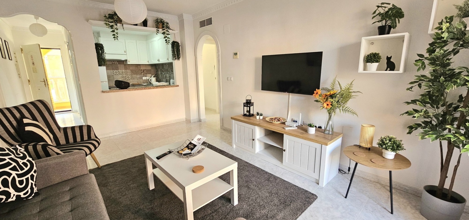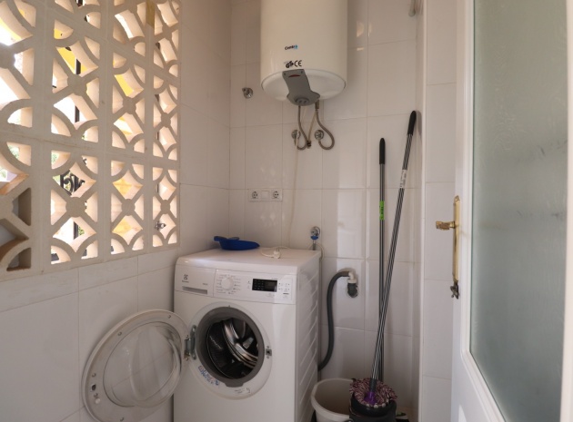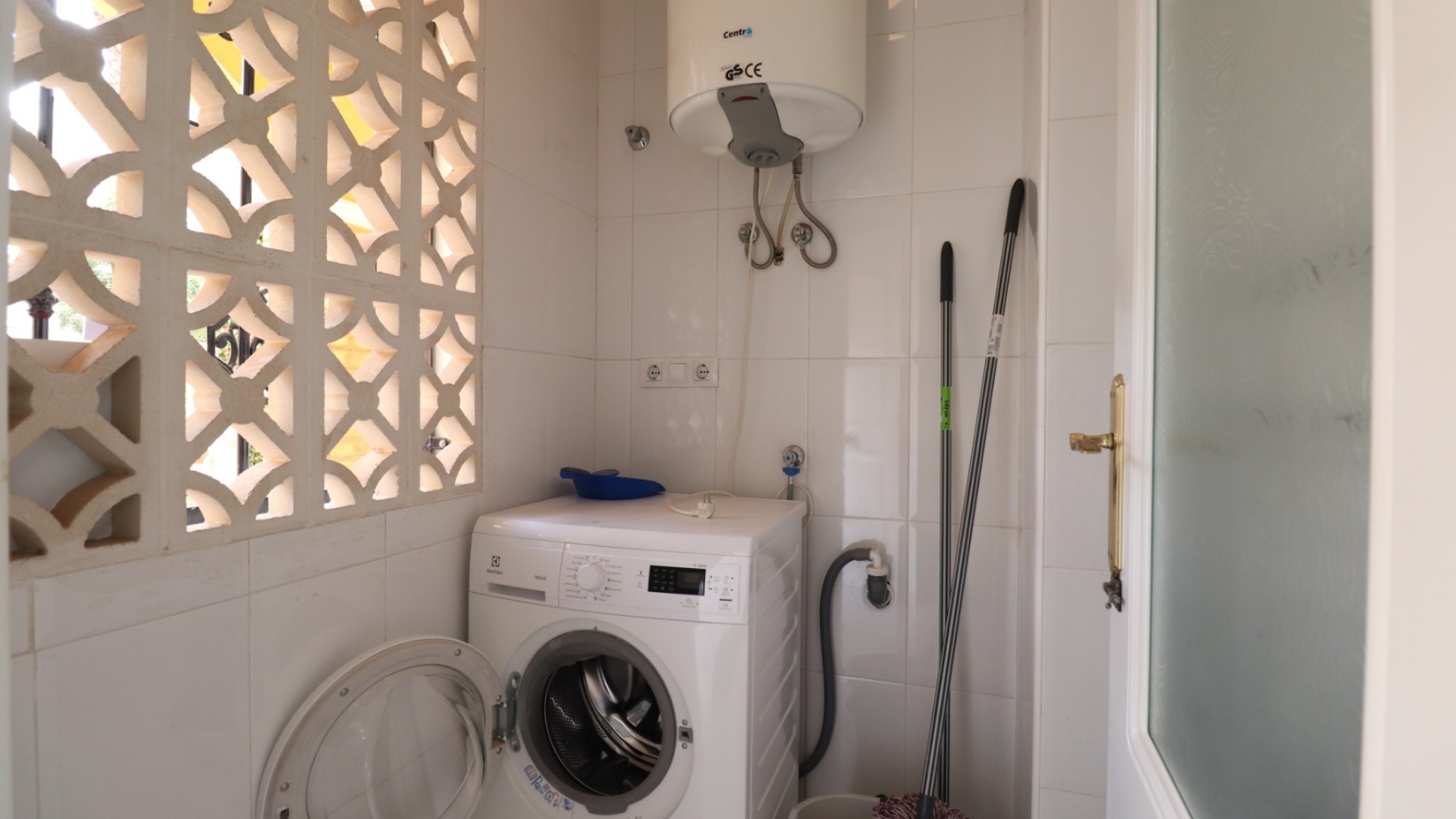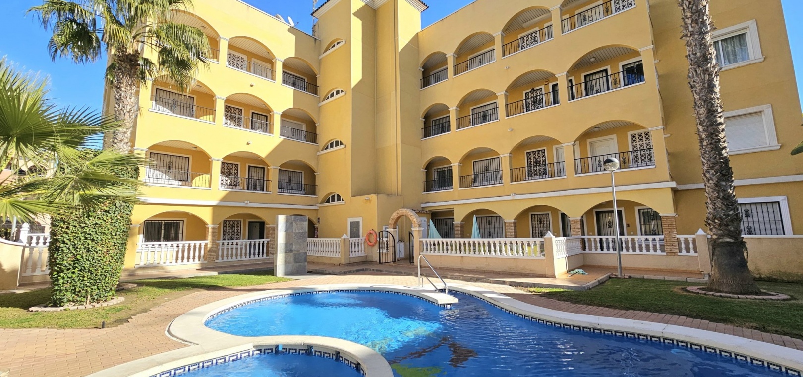 Dit unieke appartement met twee slaapkamers op de begane grond in Las Filipinas ligt op korte rijafstand van de golfbaan Villamartin en zijn populaire "plein". Bars, restaurants en een supermarkt van een grote keten liggen op slechts een paar minuten afstand, terwijl het winkelcentrum La Fuente op 15 minuten lopen ligt. Het winkelcentrum La Zenia Boulevard en de prachtige stranden zijn binnen 10-15 minuten rijden te bereiken. Dit prachtig gepresenteerde pand ligt op een hoekperceel van 107 m2 en is licht en uitnodigend. Het entreeterras is overdekt en omsloten met glazen gordijnen, waardoor een veelzijdige ruimte ontstaat om het hele jaar door van te genieten. Binnen is de woon-/eetkamer voorzien van een airconditioning en dubbele glazen schuifdeuren voor een licht en luchtig gevoel. De in Amerikaanse stijl ingerichte keuken is zowel functioneel als stijlvol, aangevuld met een aparte bijkeuken. Beide slaapkamers met tweepersoonsbedden zijn voorzien van inbouwkasten, terwijl de moderne ingerichte familiedouche de indeling van het interieur compleet maakt. De betegelde 'L'-vormige tuin biedt voldoende buitenruimte om te ontspannen of te entertainen. Extra voorzieningen zijn onder meer vooraf geïnstalleerde airconditioning, een ondergrondse parkeerplaats met berging, een gemeenschappelijk zwembad en het extra voordeel van een toeristenvergunning. Dit maakt dit pand een fantastische investering of vakantiehuis in Costa Blanca Zuid.