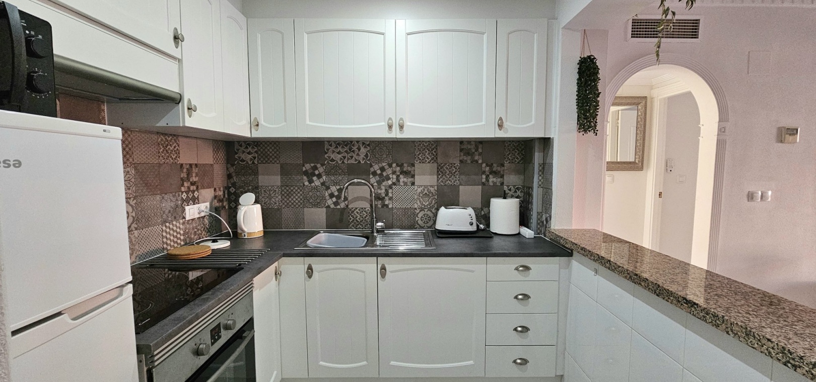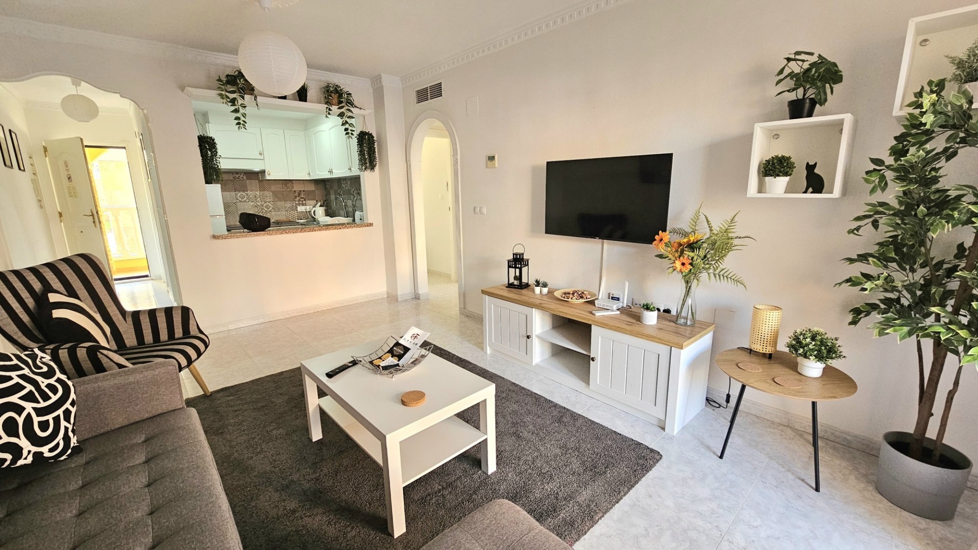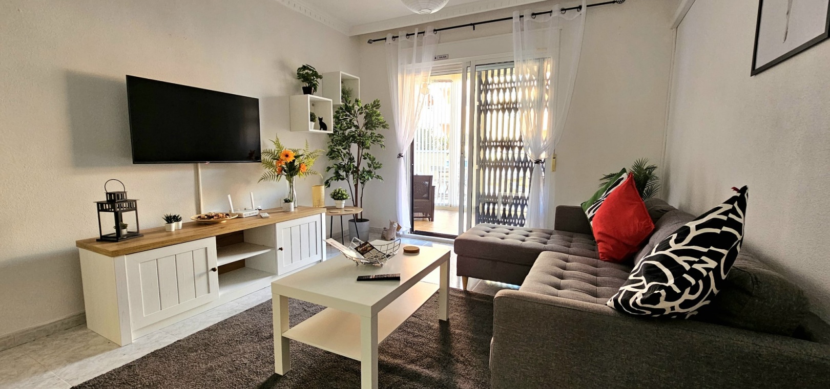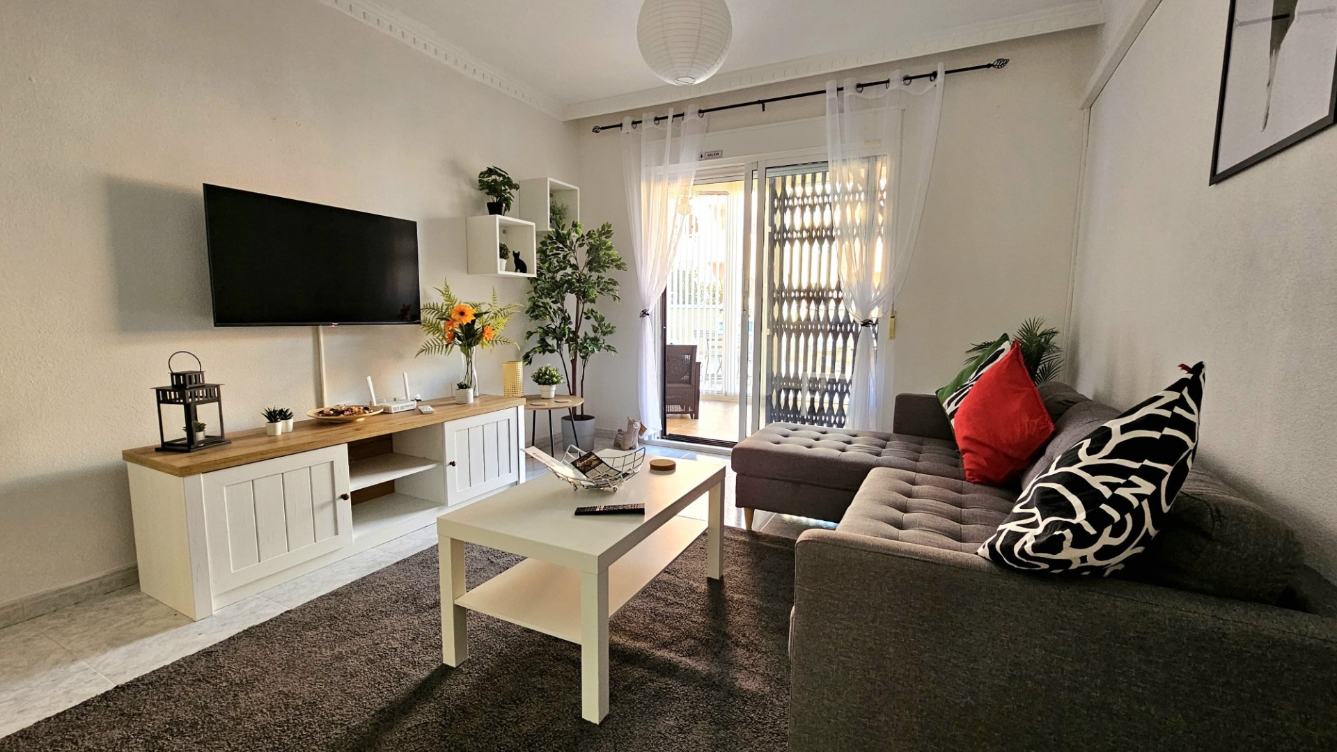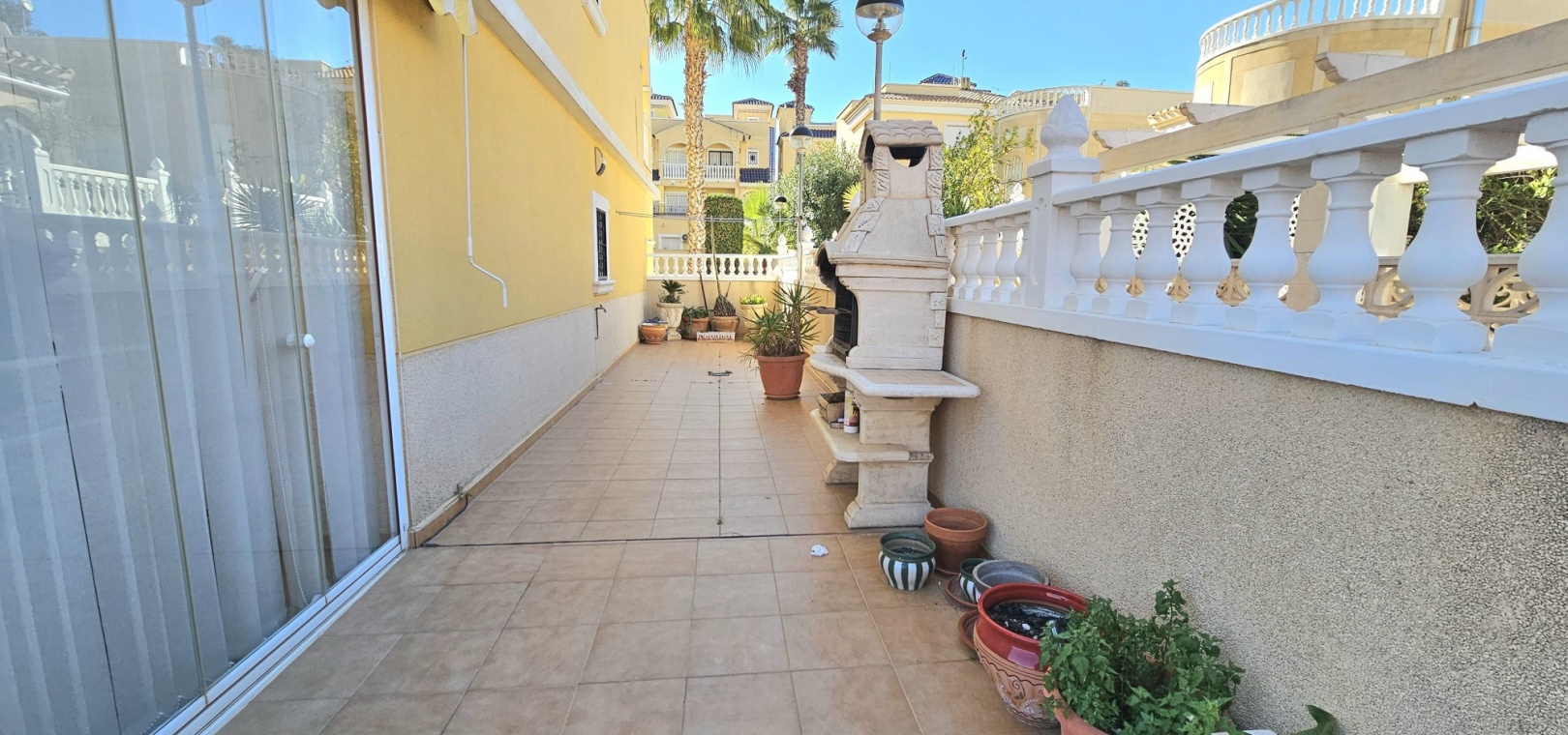 Dit unieke appartement met twee slaapkamers op de begane grond in Las Filipinas ligt op korte rijafstand van de golfbaan Villamartin en zijn populaire "plein". Bars, restaurants en een supermarkt van een grote keten liggen op slechts een paar minuten afstand, terwijl het winkelcentrum La Fuente op 15 minuten lopen ligt. Het winkelcentrum La Zenia Boulevard en de prachtige stranden zijn binnen 10-15 minuten rijden te bereiken. Dit prachtig gepresenteerde pand ligt op een hoekperceel van 107 m2 en is licht en uitnodigend. Het entreeterras is overdekt en omsloten met glazen gordijnen, waardoor een veelzijdige ruimte ontstaat om het hele jaar door van te genieten. Binnen is de woon-/eetkamer voorzien van een airconditioning en dubbele glazen schuifdeuren voor een licht en luchtig gevoel. De in Amerikaanse stijl ingerichte keuken is zowel functioneel als stijlvol, aangevuld met een aparte bijkeuken. Beide slaapkamers met tweepersoonsbedden zijn voorzien van inbouwkasten, terwijl de moderne ingerichte familiedouche de indeling van het interieur compleet maakt. De betegelde 'L'-vormige tuin biedt voldoende buitenruimte om te ontspannen of te entertainen. Extra voorzieningen zijn onder meer vooraf geïnstalleerde airconditioning, een ondergrondse parkeerplaats met berging, een gemeenschappelijk zwembad en het extra voordeel van een toeristenvergunning. Dit maakt dit pand een fantastische investering of vakantiehuis in Costa Blanca Zuid.