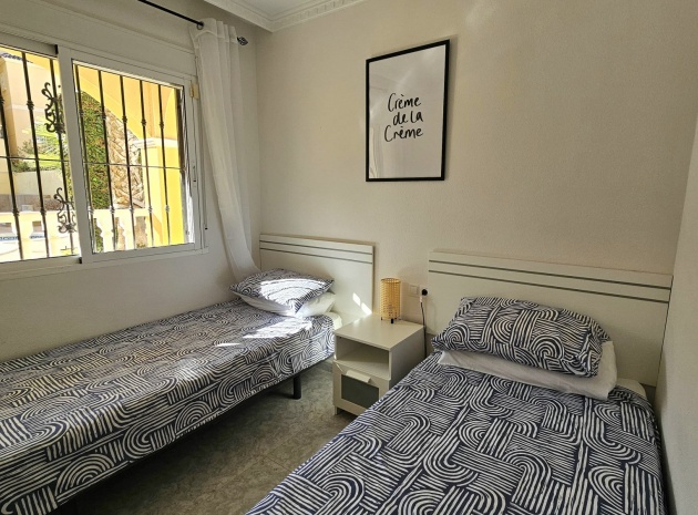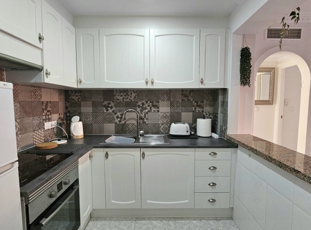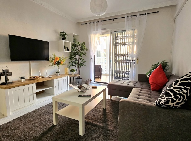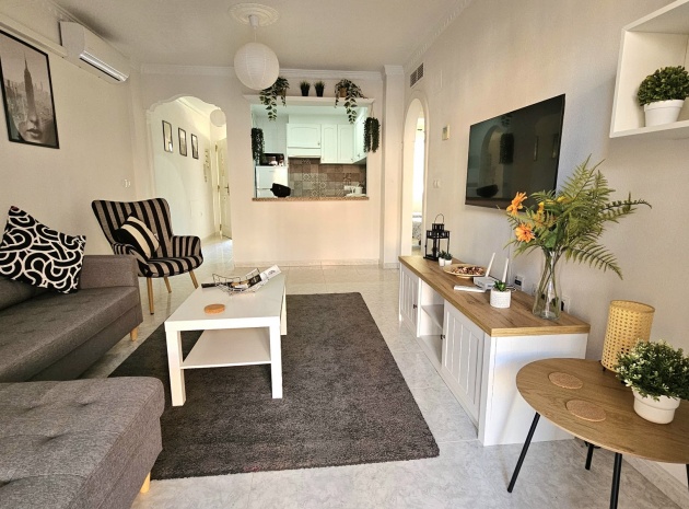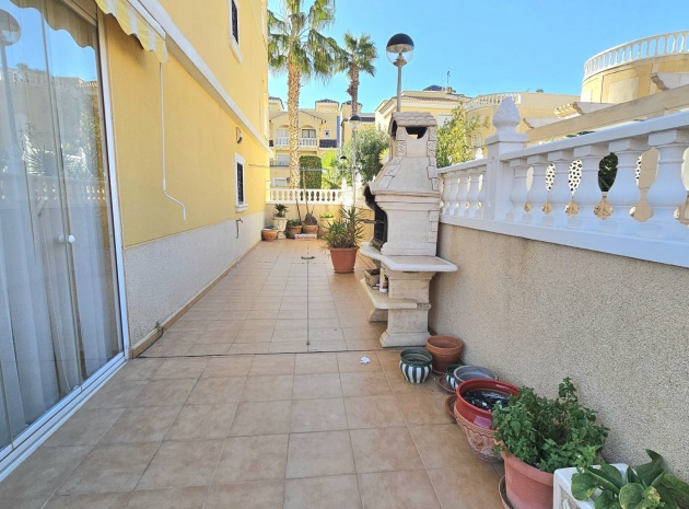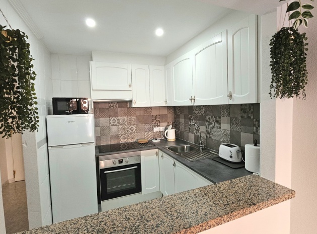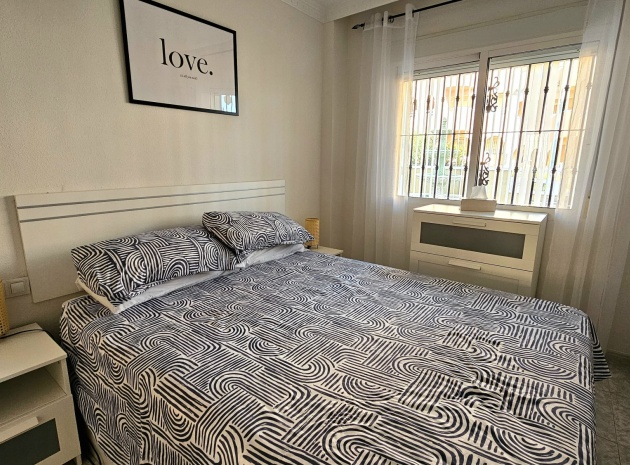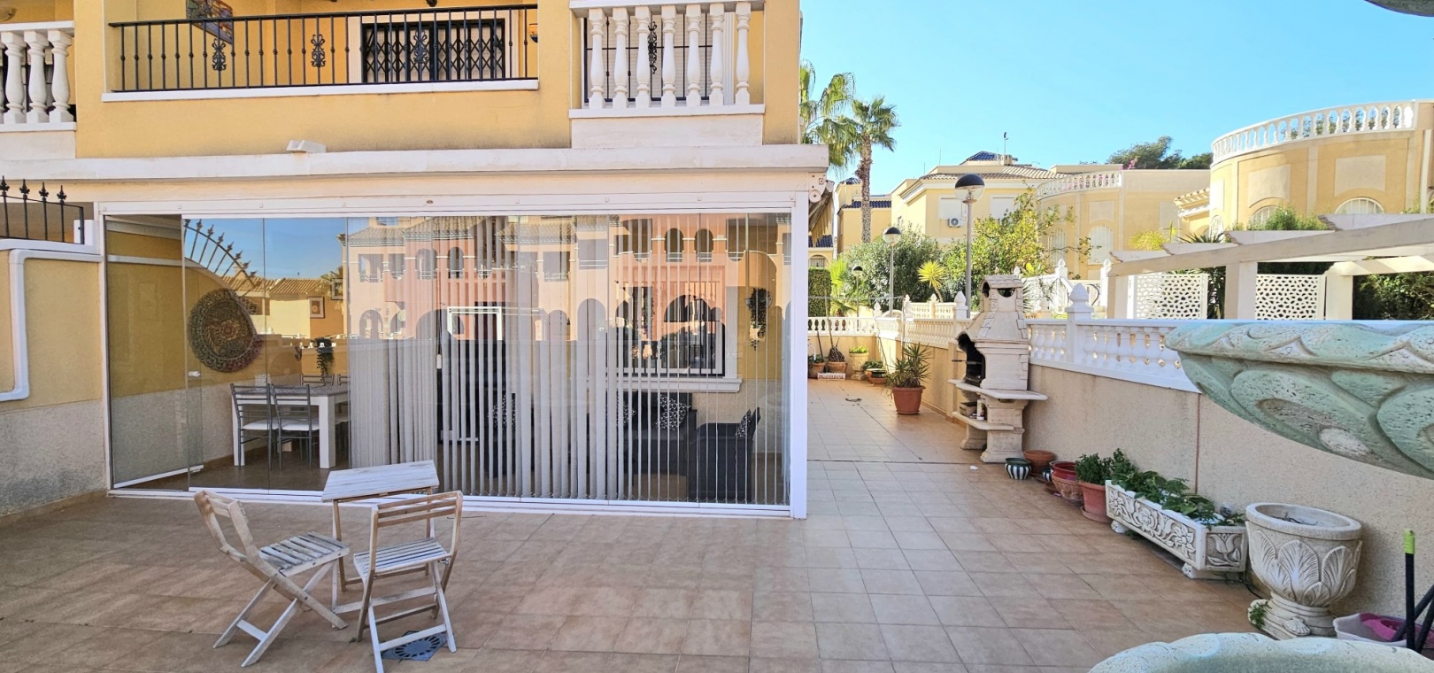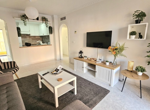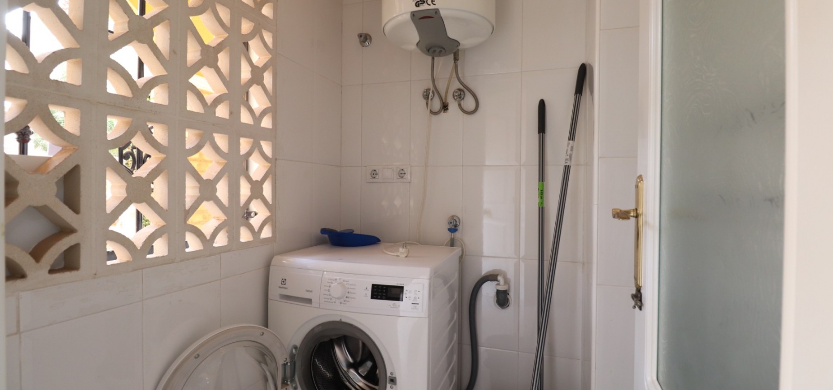 Dit unieke appartement met twee slaapkamers op de begane grond in Las Filipinas ligt op korte rijafstand van de golfbaan Villamartin en zijn populaire "plein". Bars, restaurants en een supermarkt van een grote keten liggen op slechts een paar minuten afstand, terwijl het winkelcentrum La Fuente op 15 minuten lopen ligt. Het winkelcentrum La Zenia Boulevard en de prachtige stranden zijn binnen 10-15 minuten rijden te bereiken. Dit prachtig gepresenteerde pand ligt op een hoekperceel van 107 m2 en is licht en uitnodigend. Het entreeterras is overdekt en omsloten met glazen gordijnen, waardoor een veelzijdige ruimte ontstaat om het hele jaar door van te genieten. Binnen is de woon-/eetkamer voorzien van een airconditioning en dubbele glazen schuifdeuren voor een licht en luchtig gevoel. De in Amerikaanse stijl ingerichte keuken is zowel functioneel als stijlvol, aangevuld met een aparte bijkeuken. Beide slaapkamers met tweepersoonsbedden zijn voorzien van inbouwkasten, terwijl de moderne ingerichte familiedouche de indeling van het interieur compleet maakt. De betegelde 'L'-vormige tuin biedt voldoende buitenruimte om te ontspannen of te entertainen. Extra voorzieningen zijn onder meer vooraf geïnstalleerde airconditioning, een ondergrondse parkeerplaats met berging, een gemeenschappelijk zwembad en het extra voordeel van een toeristenvergunning. Dit maakt dit pand een fantastische investering of vakantiehuis in Costa Blanca Zuid.