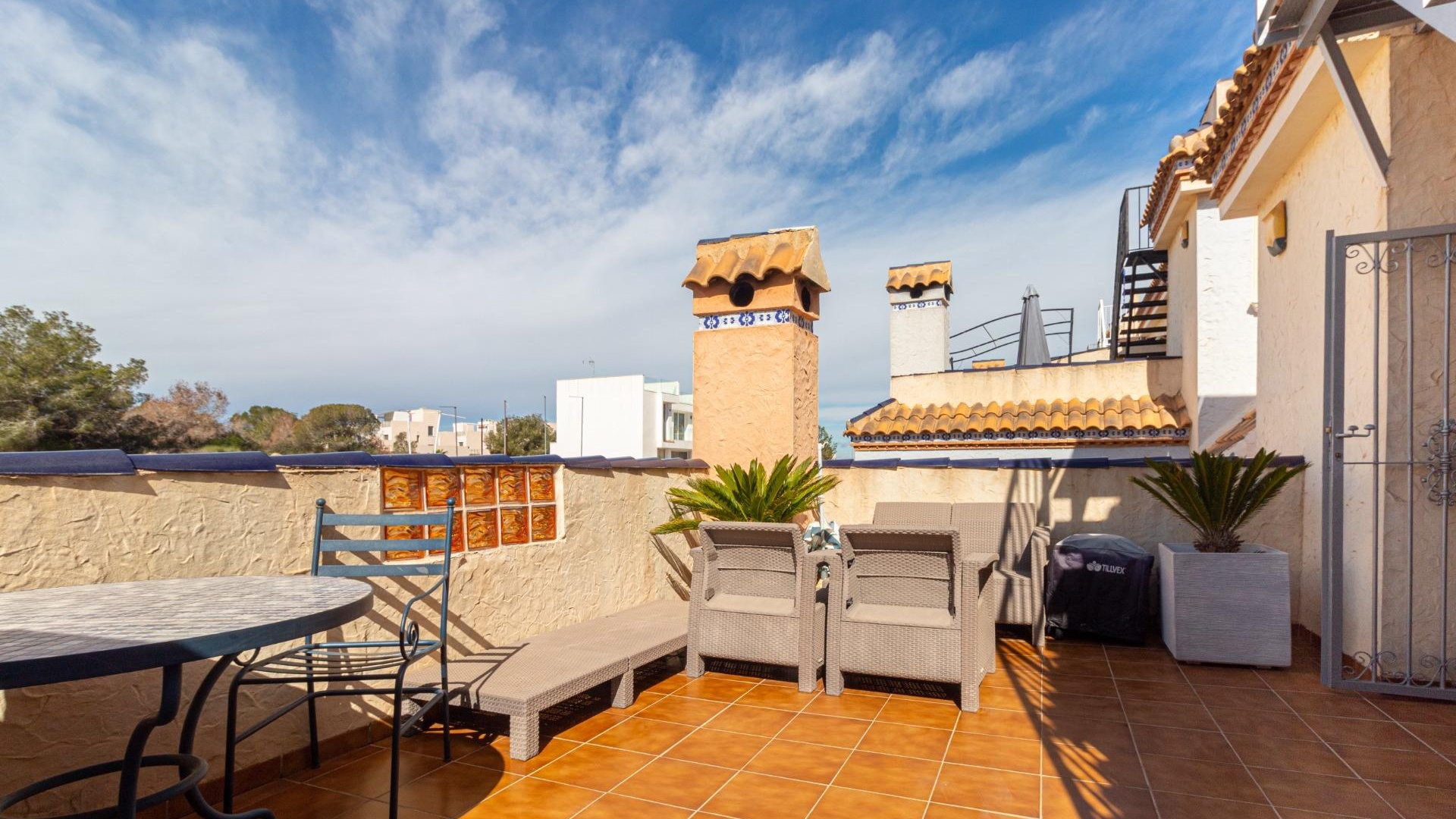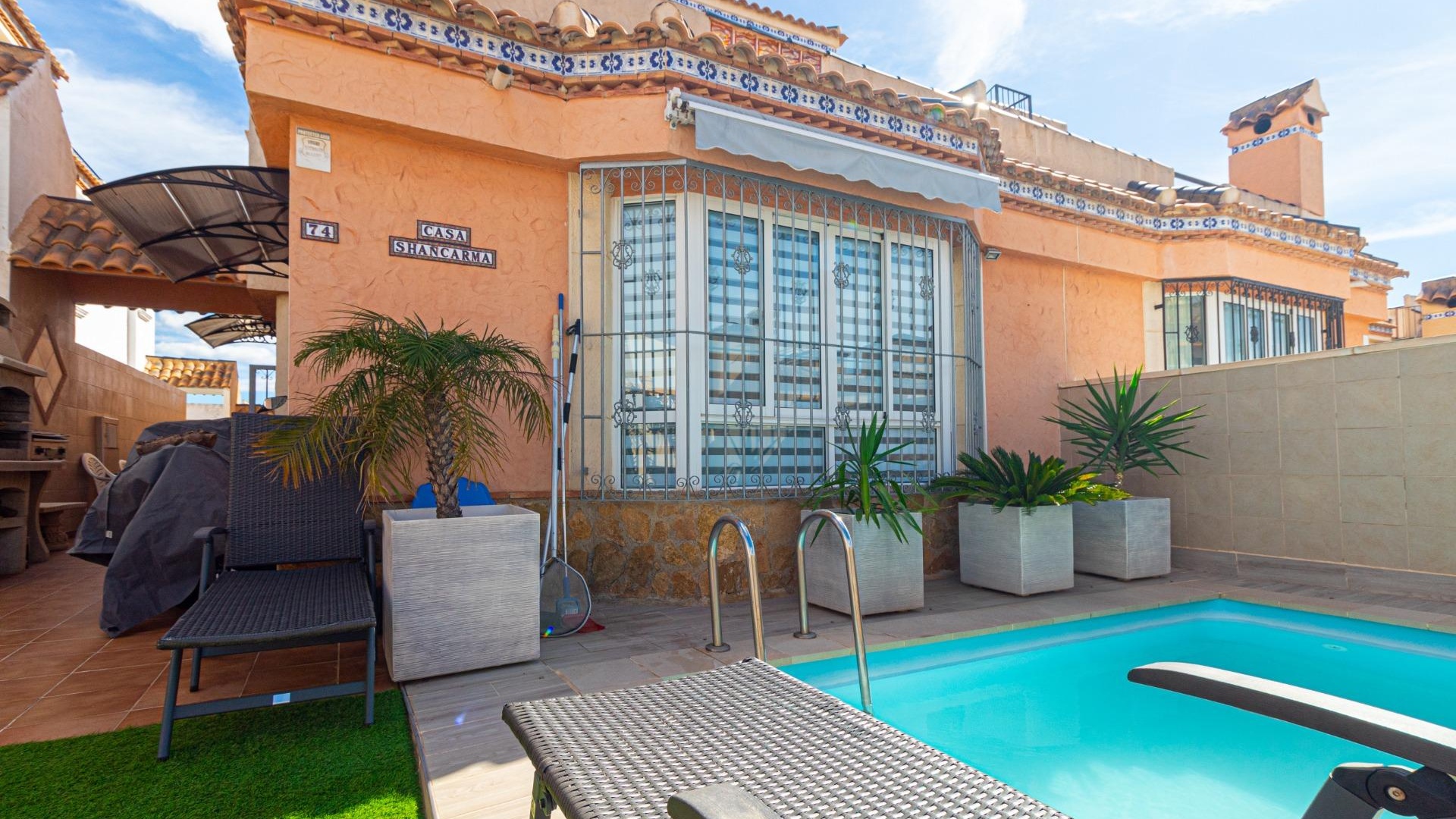 Welkom in uw nieuwe woning in de exclusieve woonwijk PAU 26, Villamartín! Wij presenteren dit charmante herenhuis met drie slaapkamers, perfect om te genieten van het mediterrane leven. De bevoorrechte locatie biedt u toegang tot alle voorzieningen op loopafstand, met de gemoedsrust van een parkeerplaats direct voor het pand. ~Dit herenhuis valt op door zijn ruime en lichte woon-eetkamer, ideaal om onvergetelijke momenten te delen met familie en vrienden. De volledig gerenoveerde en onafhankelijke keuken biedt een praktische en functionele ruimte, met directe toegang tot een galerij waar u de wasmachine en andere apparaten kunt plaatsen zonder ruimte in beslag te nemen in het huis. ~Op de begane grond vindt u een slaapkamer met een eigen badkamer, perfect voor gasten of als kantoor. Als u naar de bovenverdieping gaat, wachten er nog twee slaapkamers op u die een complete badkamer delen, wat comfort en privacy biedt voor het hele gezin. ~Maar het echte juweeltje van dit pand is de buitenruimte. Stelt u zich eens voor dat u ontspant in uw privézwembad, geniet van een barbecue met vrienden onder de mediterrane zon of gewoon zonnebaadt op uw ruime terras. En als u op zoek bent naar nog meer privacy en een panoramisch uitzicht, ga dan naar uw solarium uitgerust met zonnepanelen, een uitstekende optie om energie te besparen en respectvol te zijn voor het milieu. ~PAU 26, in Villamartín, is een rustige en veilige woonwijk, met gemakkelijke toegang tot alle diensten: supermarkten, restaurants, winkelcentra, golfbanen en de prachtige stranden van Orihuela Costa. De strategische ligging stelt u in staat om te genieten van de rust van een woonwijk, op slechts een steenworp afstand van het bruisende leven van de Costa Blanca. ~Mis de kans niet om dit unieke herenhuis te verwerven, dat het comfort van een modern huis combineert met de schoonheid en rust van de omgeving. Neem contact met ons op om een bezoek te regelen!