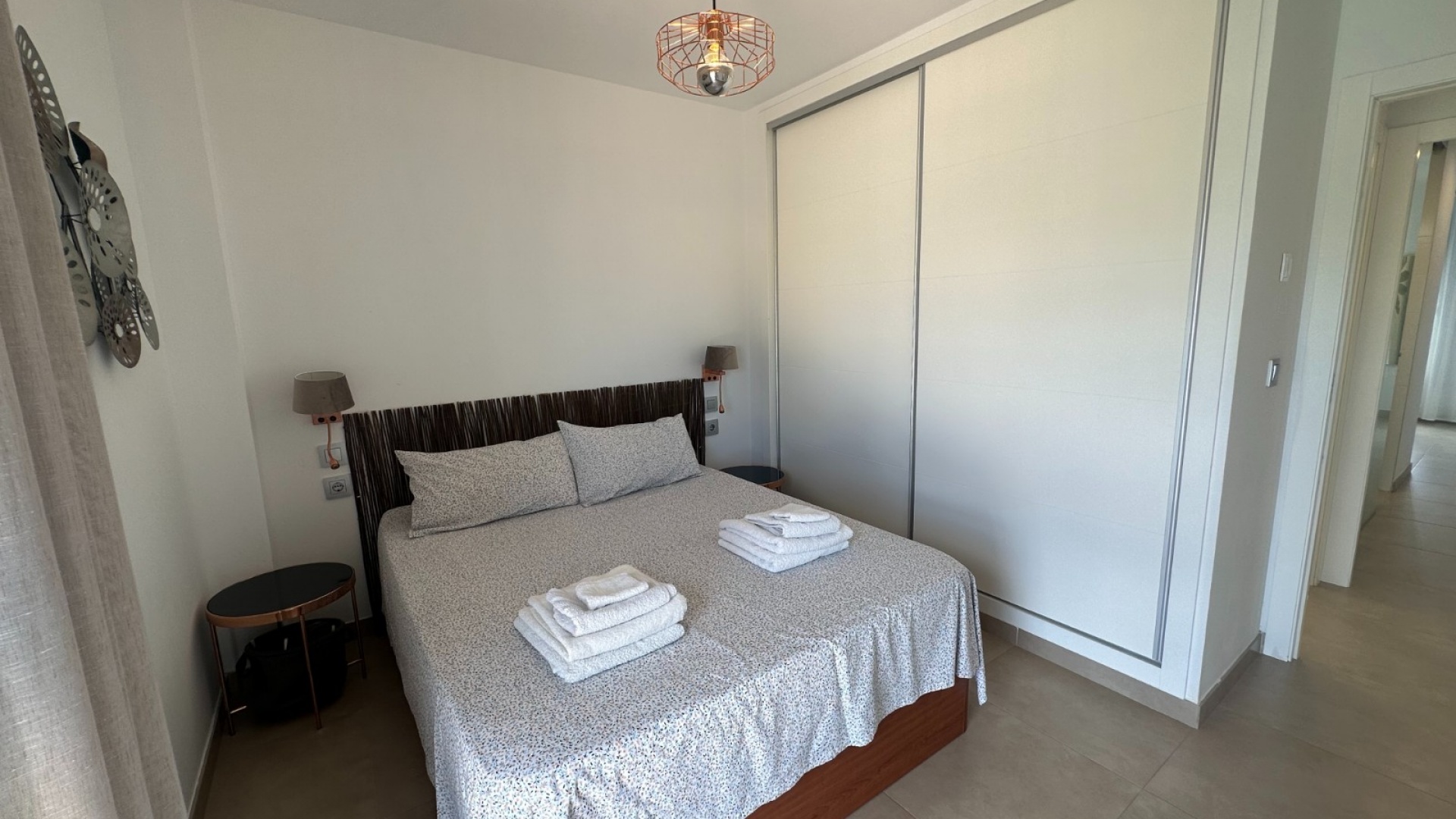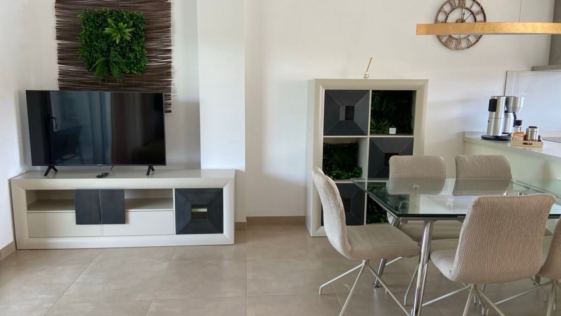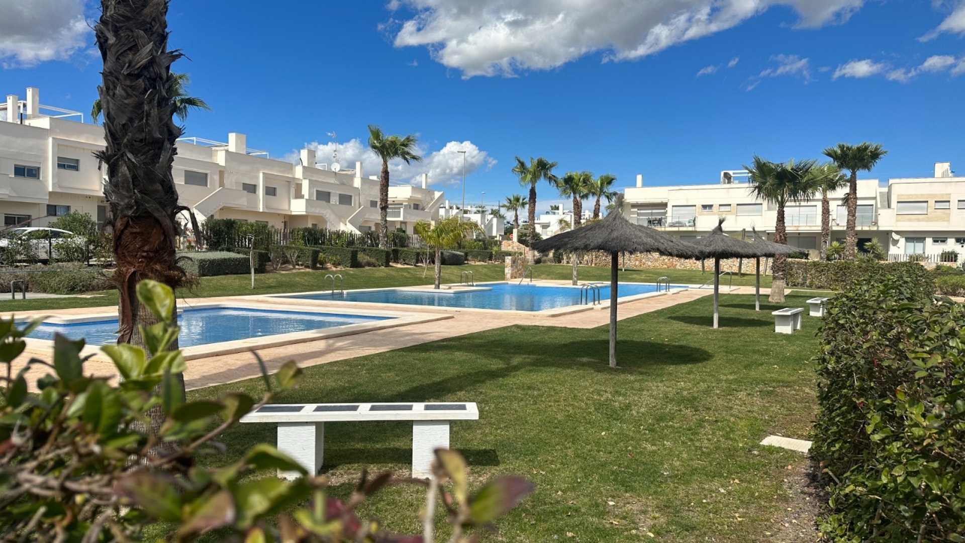 Gelegen in de gewilde urbanisatie Vistabella/Entrenaranjos, biedt dit prachtig gepresenteerde appartement met 2 slaapkamers en 2 badkamers een perfecte mix van comfort en stijl. Het pand beschikt over terrassen op het oosten en westen, zodat u kunt genieten van de ochtendzon aan de voorkant en de middagzon aan de achterkant. De ruime open woonkamer is zorgvuldig ontworpen om comfort te combineren met functionaliteit, met een strakke moderne keuken die perfect is voor gezelligheid en entertainment. Beide slaapkamers zijn voorzien van inbouwkasten en de hoofdslaapkamer komt direct uit op het terras aan de achterkant, dat uitkijkt op de prachtig aangelegde tuinen. De royale voor- en achtertuin van het appartement bieden voldoende buitenruimte, terwijl directe toegang vanaf het terras aan de achterkant leidt naar het goed onderhouden gemeenschappelijke zwembad. Met verwarming en airconditioning in elke kamer is dit huis ideaal voor het hele jaar door wonen, vakanties of investeringen. Mis deze fantastische kans niet om een stijlvol en veelzijdig pand in Vistabella Golf te bezitten!
