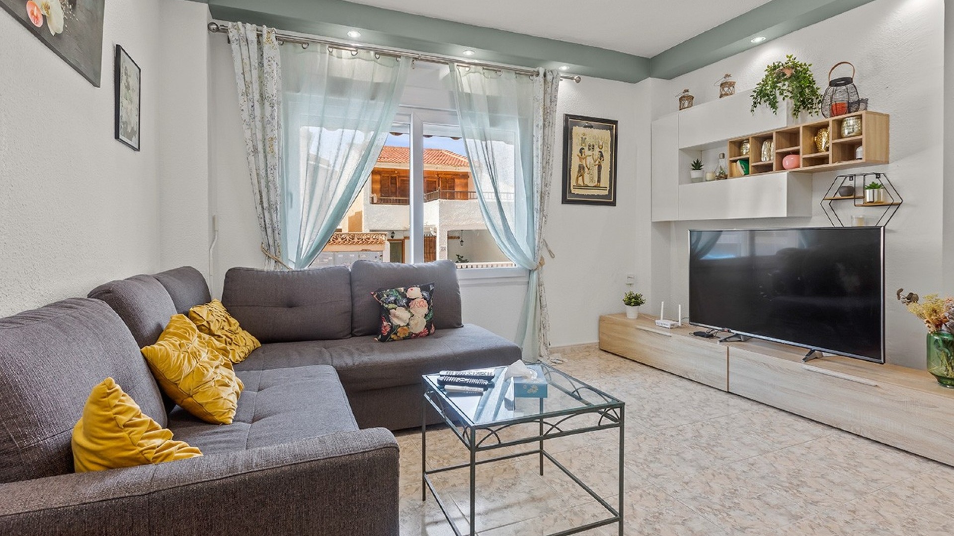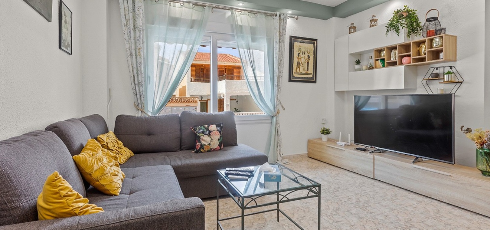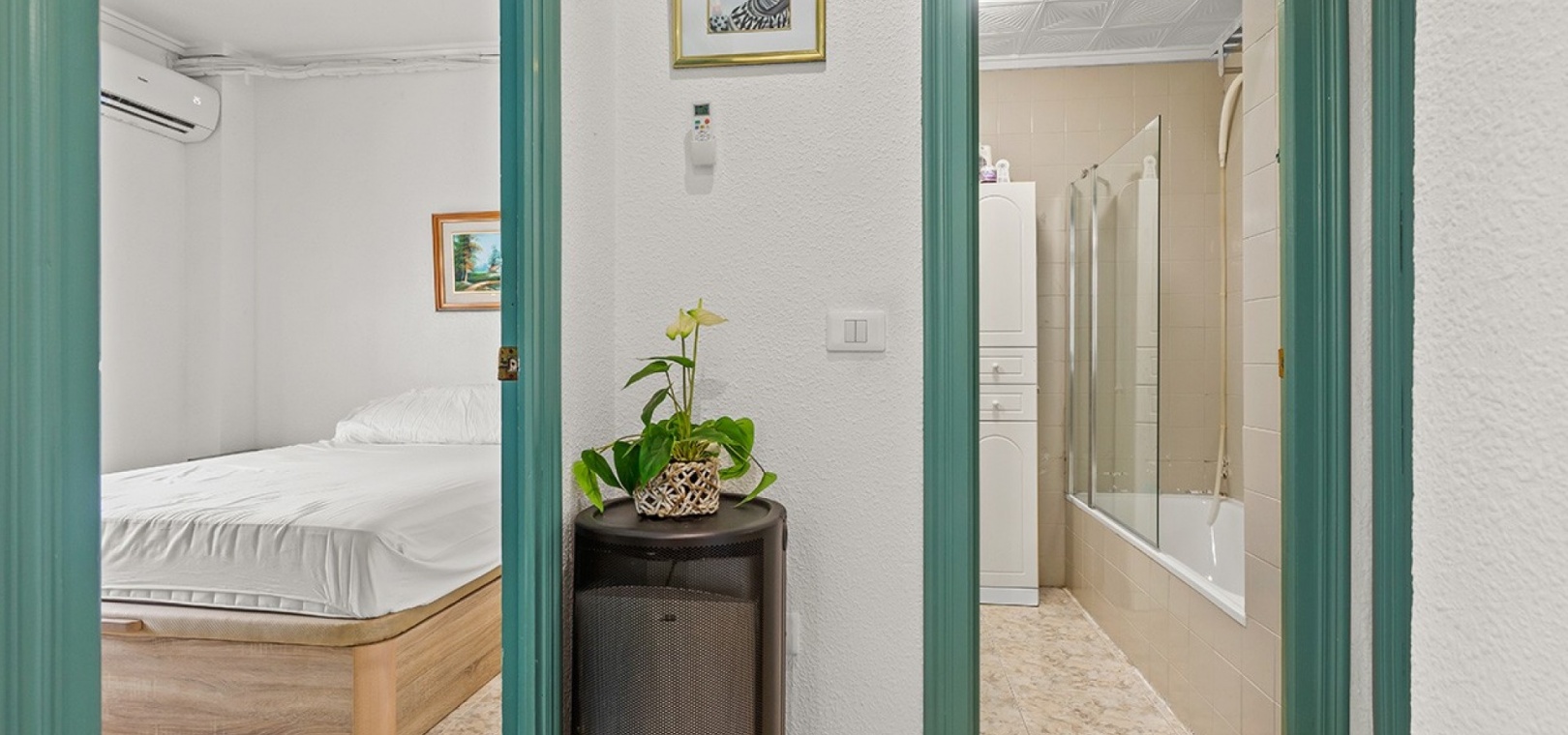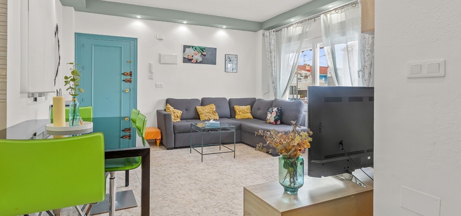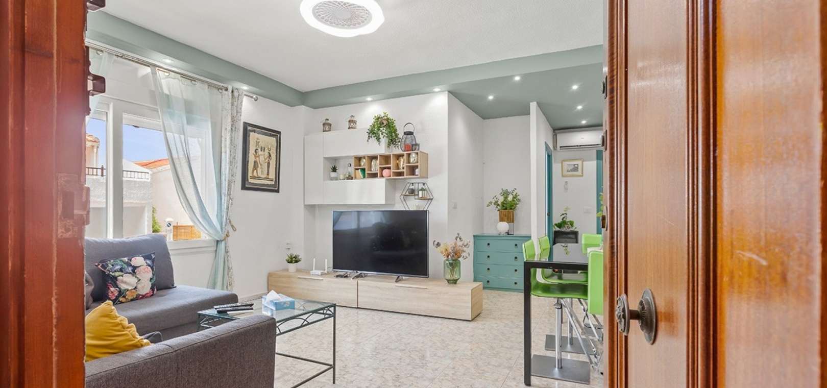 De dubbele beglazing van het appartement zorgt voor een rustige, lichte en comfortabele omgeving, terwijl de airconditioning in de woonkamer en beide slaapkamers het hele jaar door voor comfort zorgt.