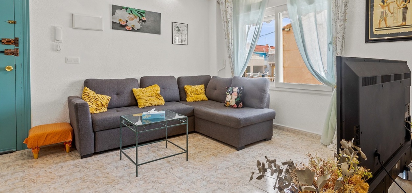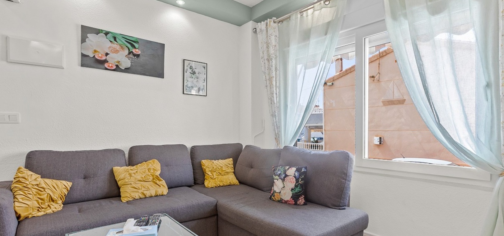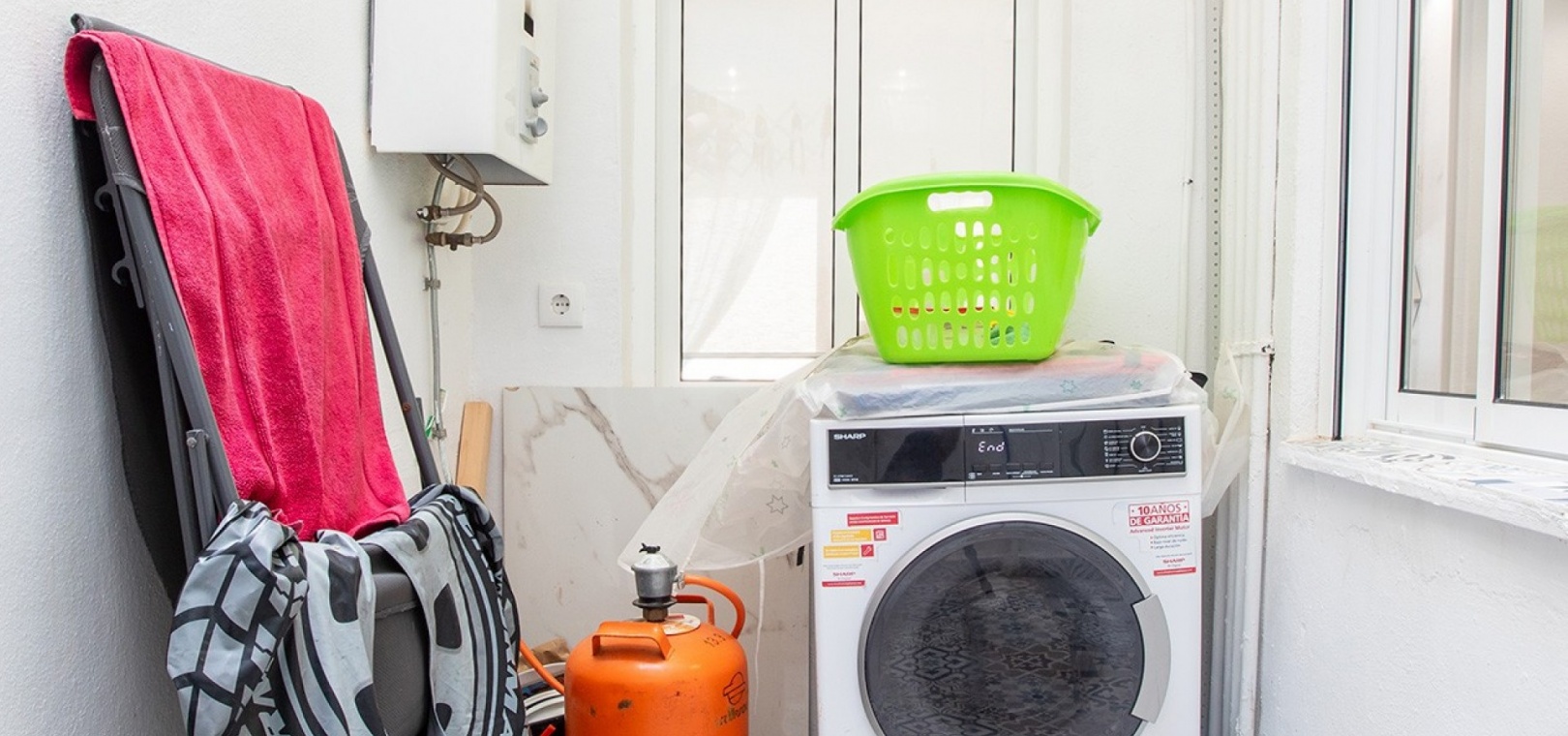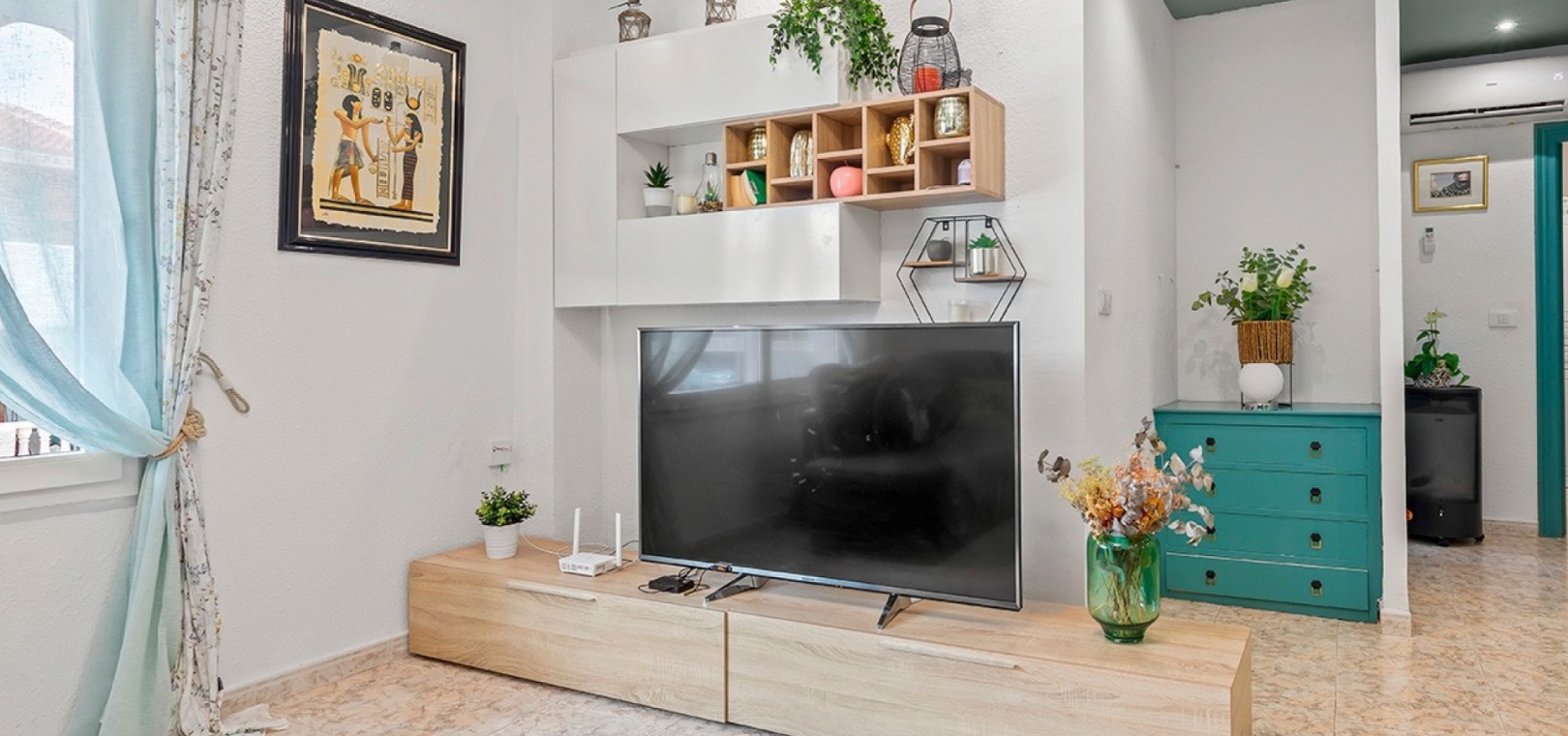 De dubbele beglazing van het appartement zorgt voor een rustige, lichte en comfortabele omgeving, terwijl de airconditioning in de woonkamer en beide slaapkamers het hele jaar door voor comfort zorgt.