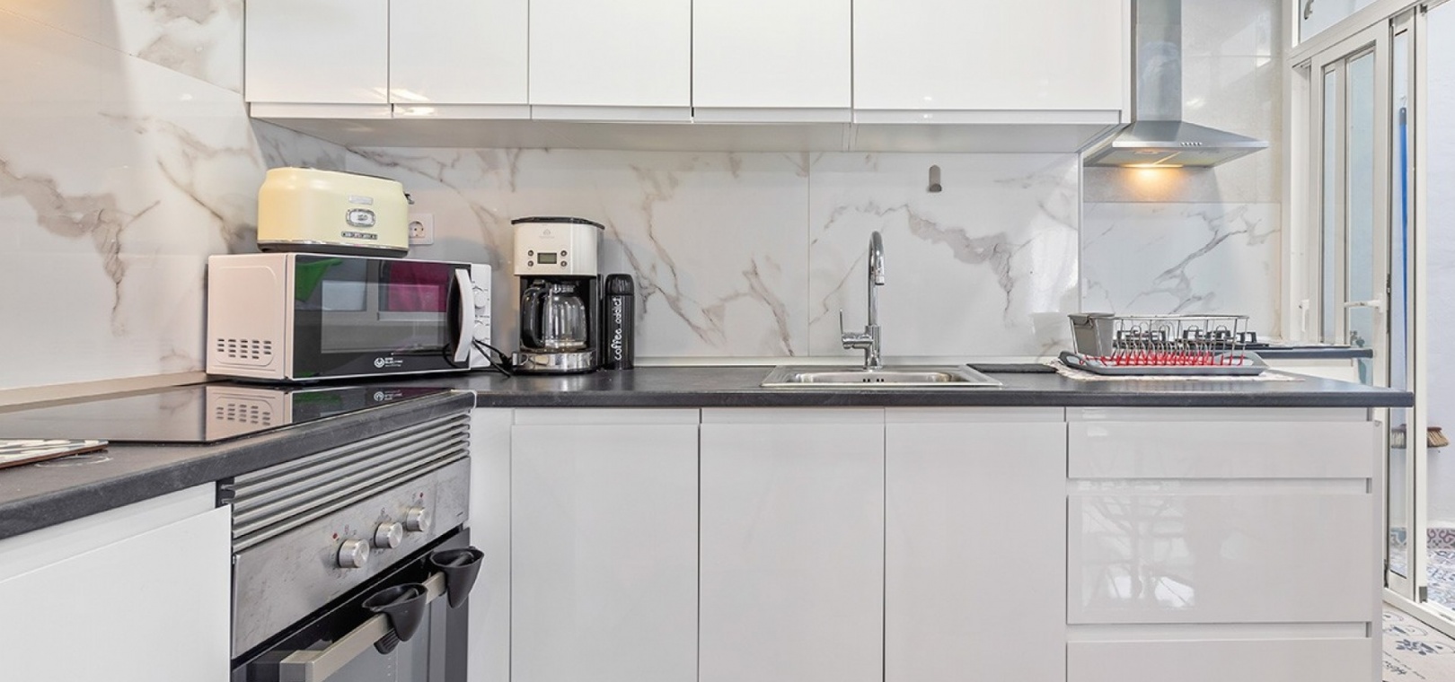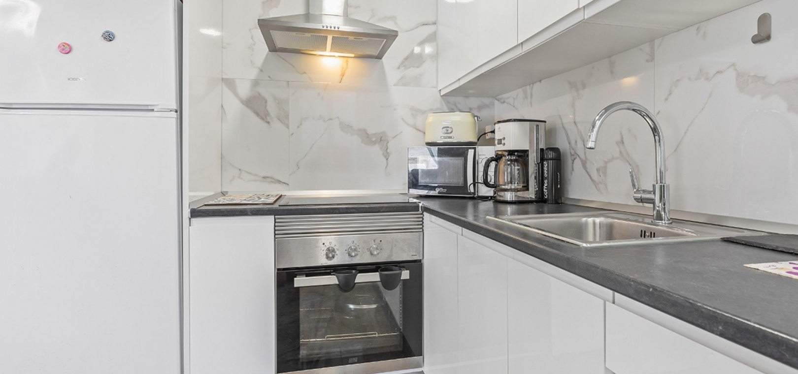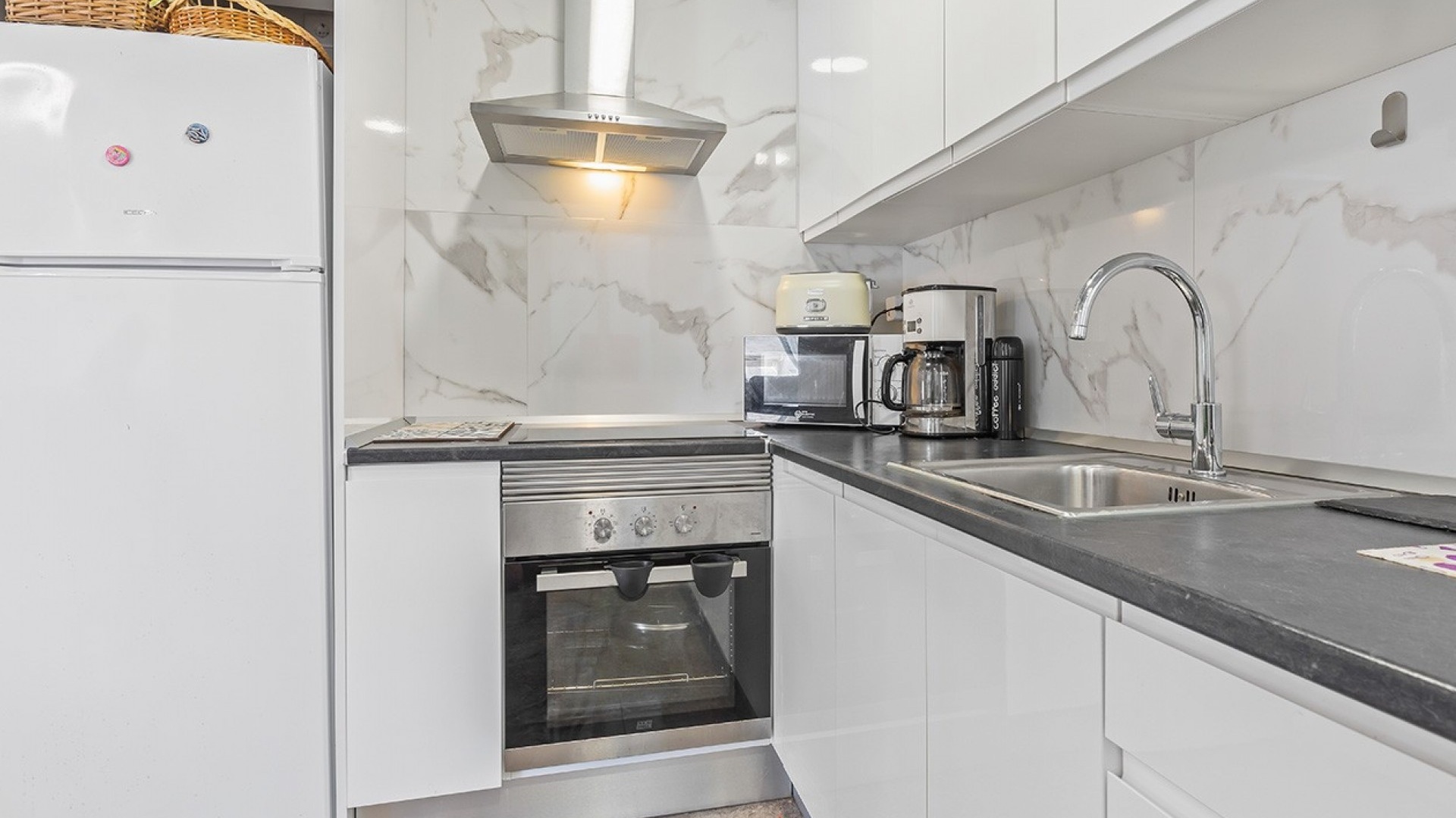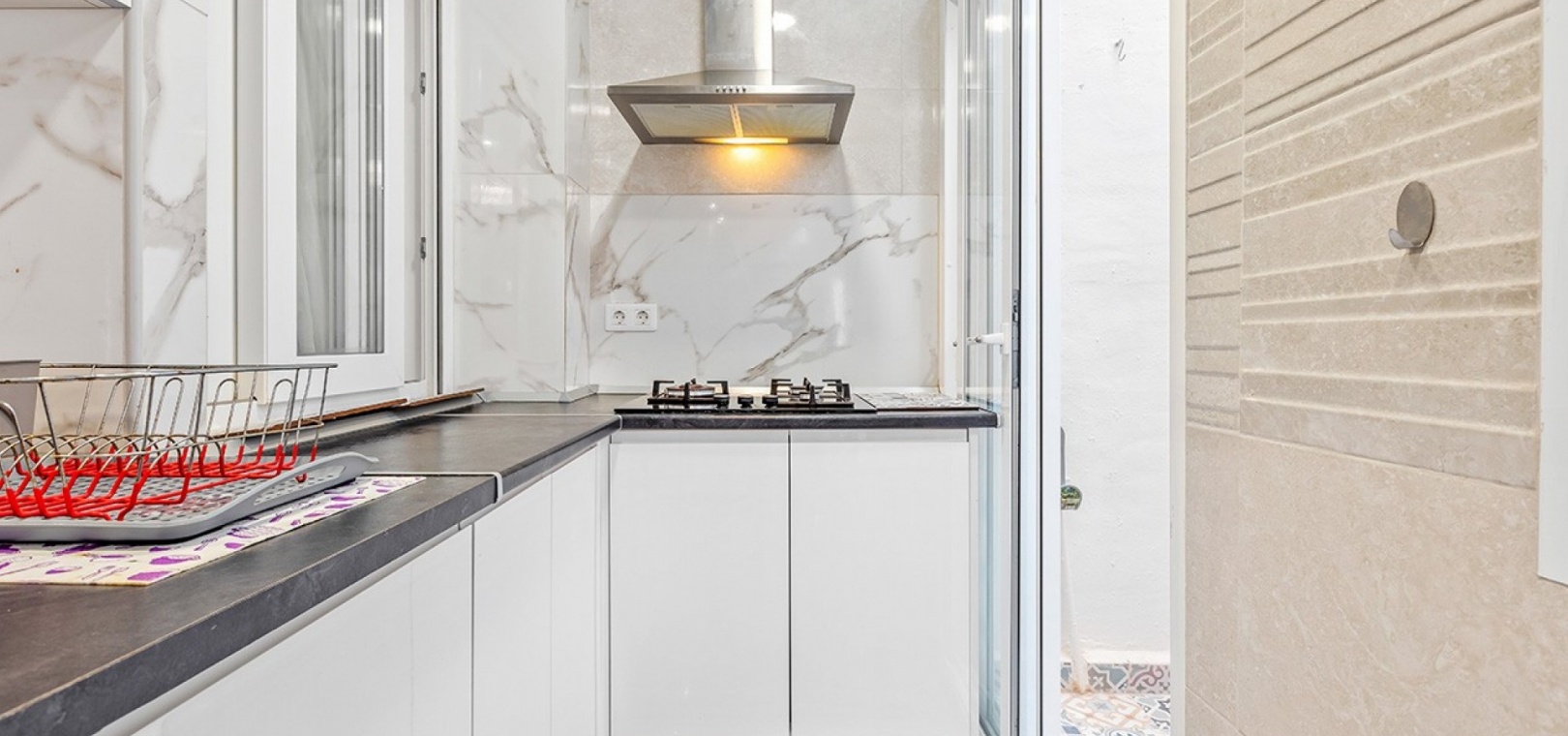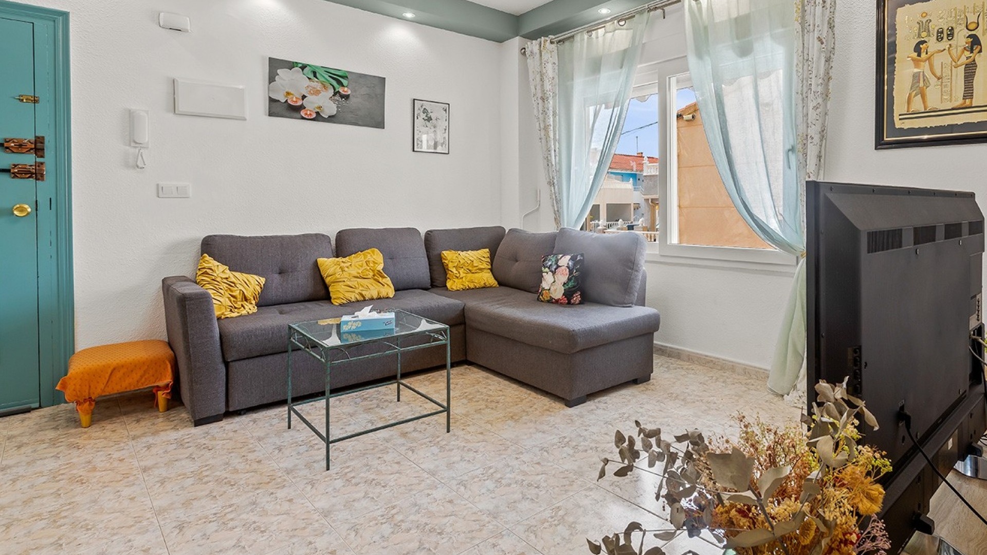 De dubbele beglazing van het appartement zorgt voor een rustige, lichte en comfortabele omgeving, terwijl de airconditioning in de woonkamer en beide slaapkamers het hele jaar door voor comfort zorgt.
