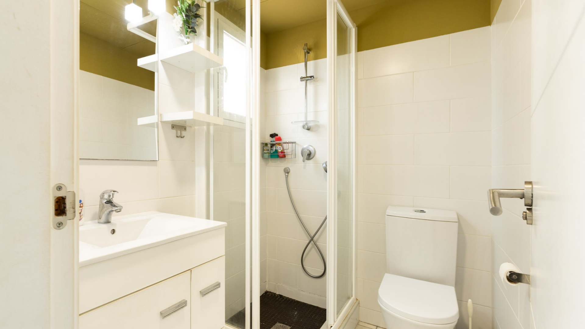 De bovenste verdieping heeft twee slaapkamers, waarvan de hoofdslaapkamer grote glazen schuifdeuren heeft die uitkomen op een ruim balkon. Dit is een perfecte plek om te genieten van de zonnige dagen in de omgeving. Daarnaast is er een kleiner balkon aan de kant van de binnenplaats, dat momenteel wordt gebruikt als bijkeuken.