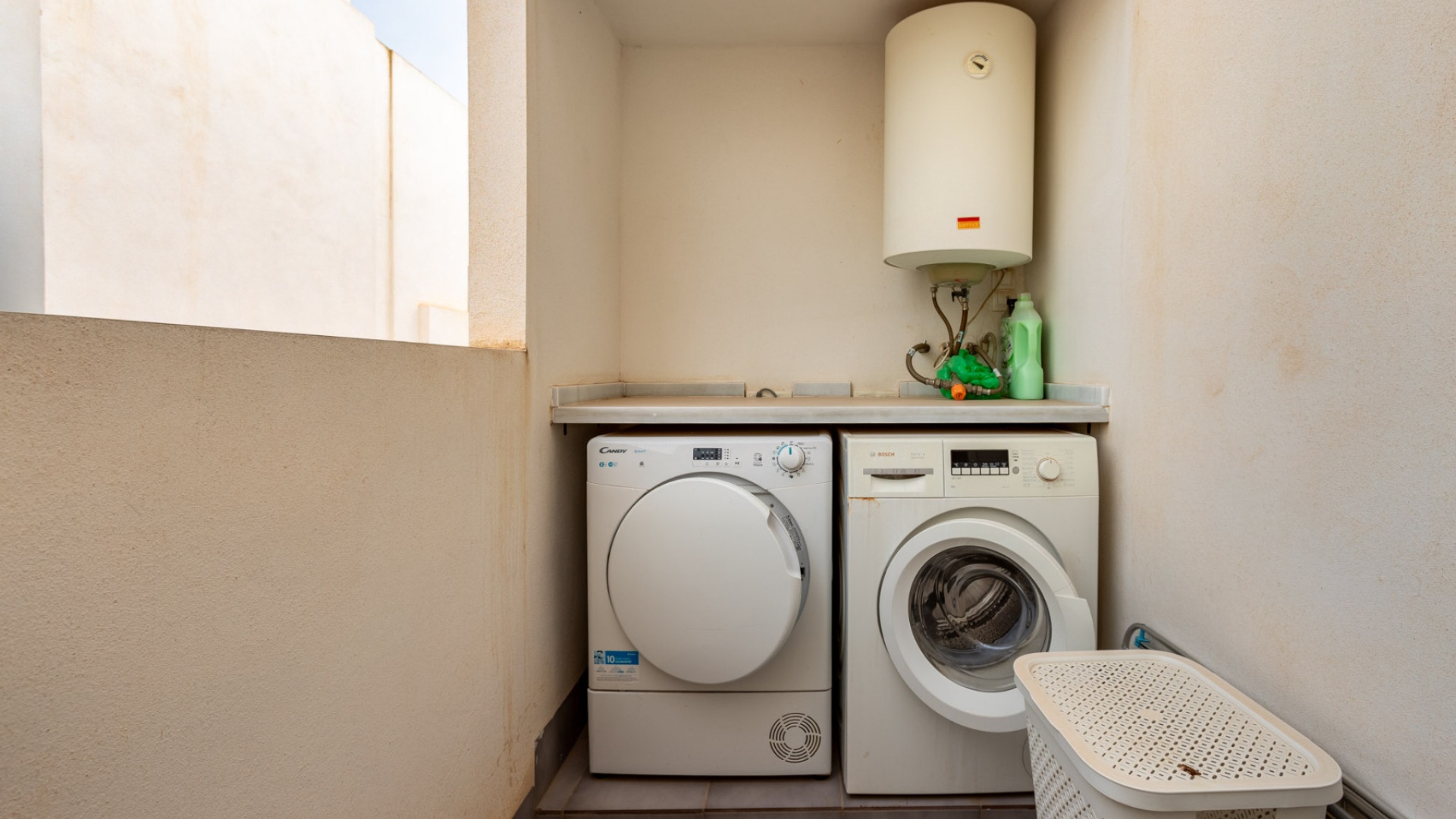 Het dakterras beslaat de gehele oppervlakte van het huis en is een heerlijke plek om te ontspannen en te genieten van het fantastische klimaat en het adembenemende uitzicht over Torrevieja, inclusief het zoutmeer.