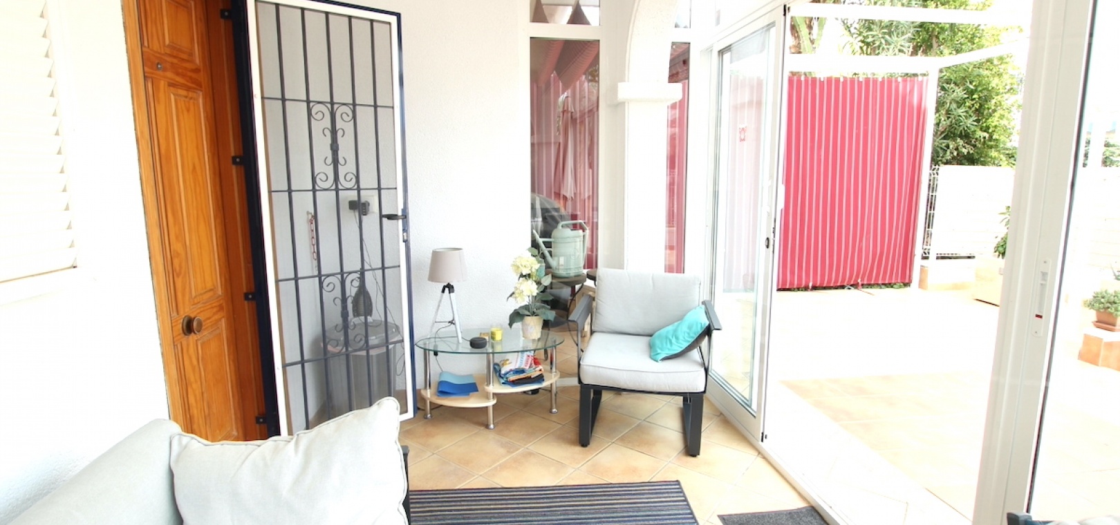 Als u binnenkomt, wordt u begroet door een overdekt en beglaasd zonneterras dat ook dienstdoet als tweede lounge/zitgedeelte. Met uitzicht over de voortuin is dit terras de perfecte plek om te ontspannen en tot rust te komen.
