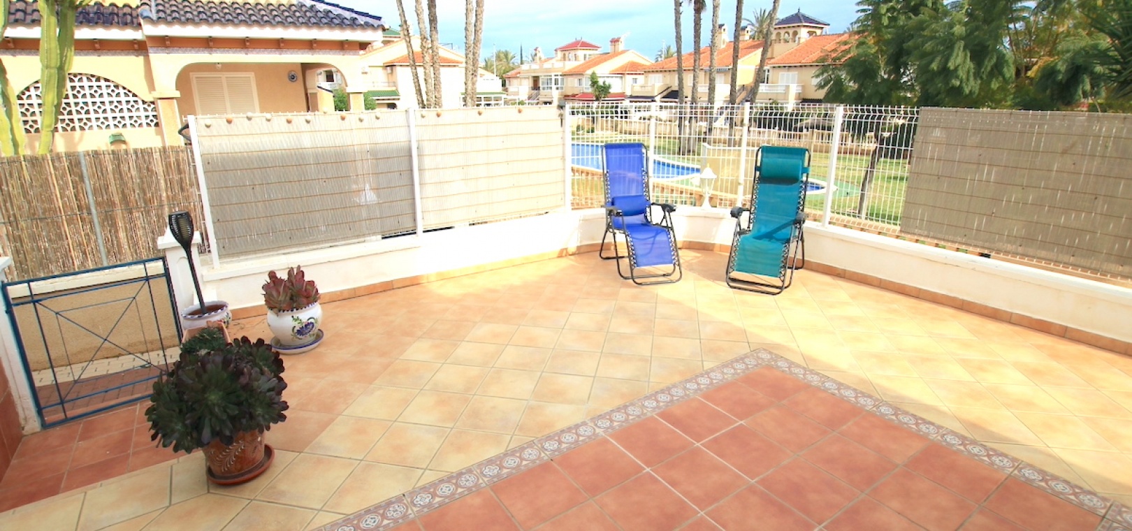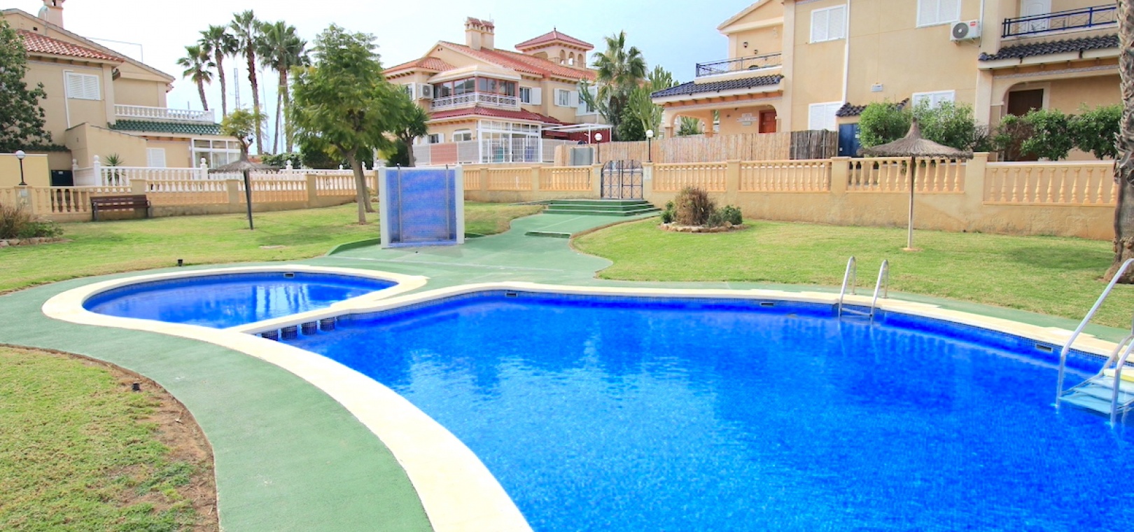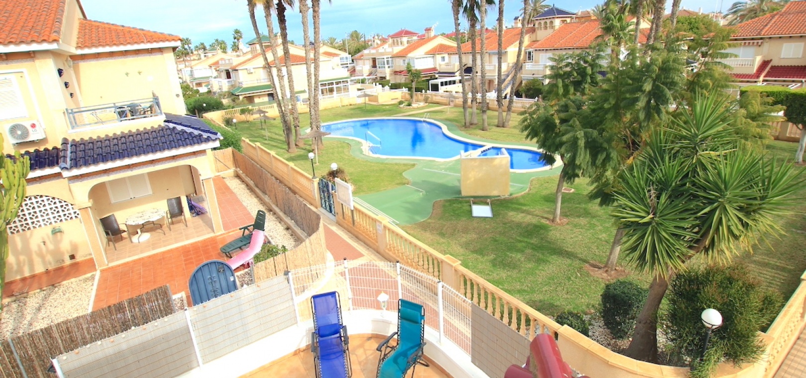 Het pand ligt op een hoekperceel en biedt uitzicht op het gemeenschappelijke zwembad en de tuinen.