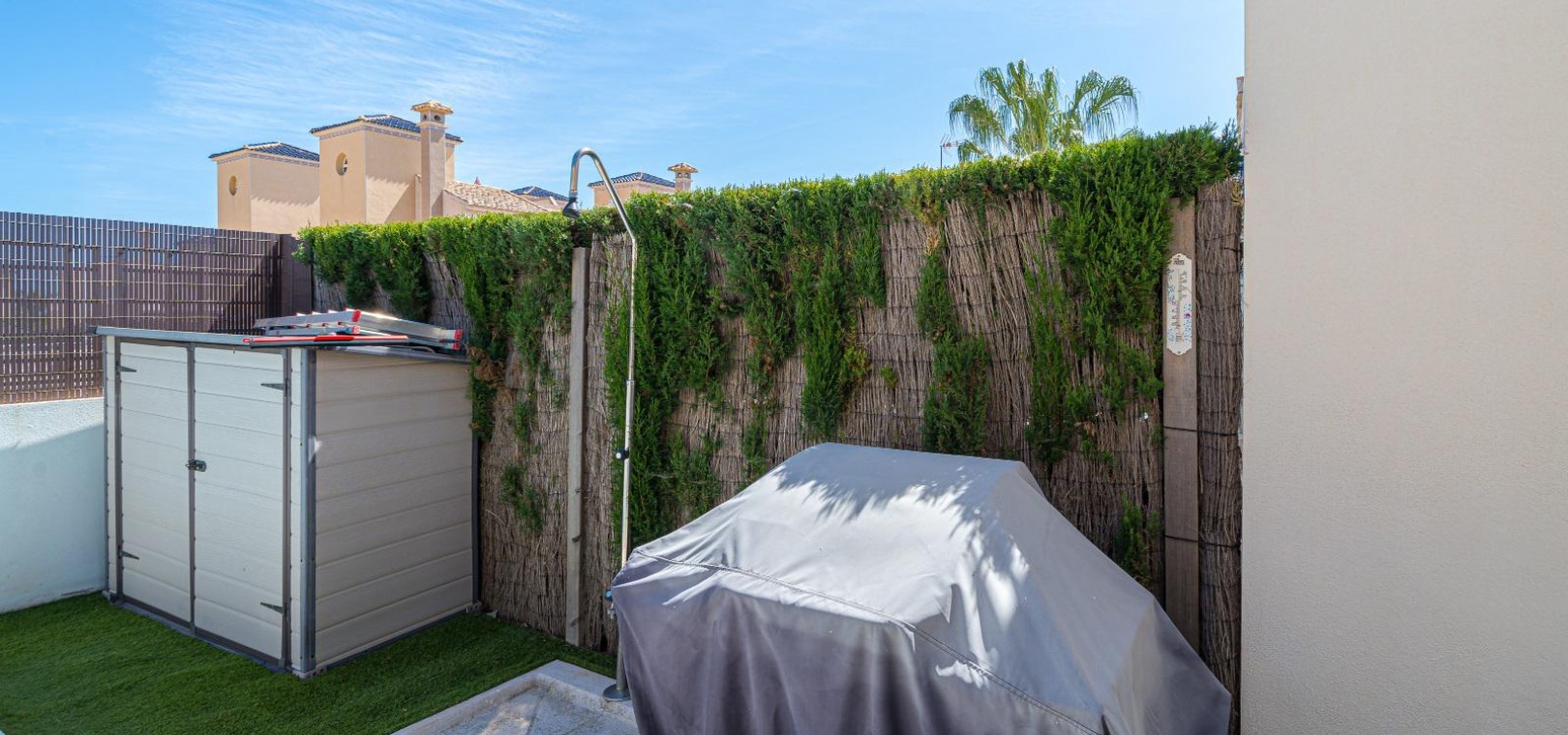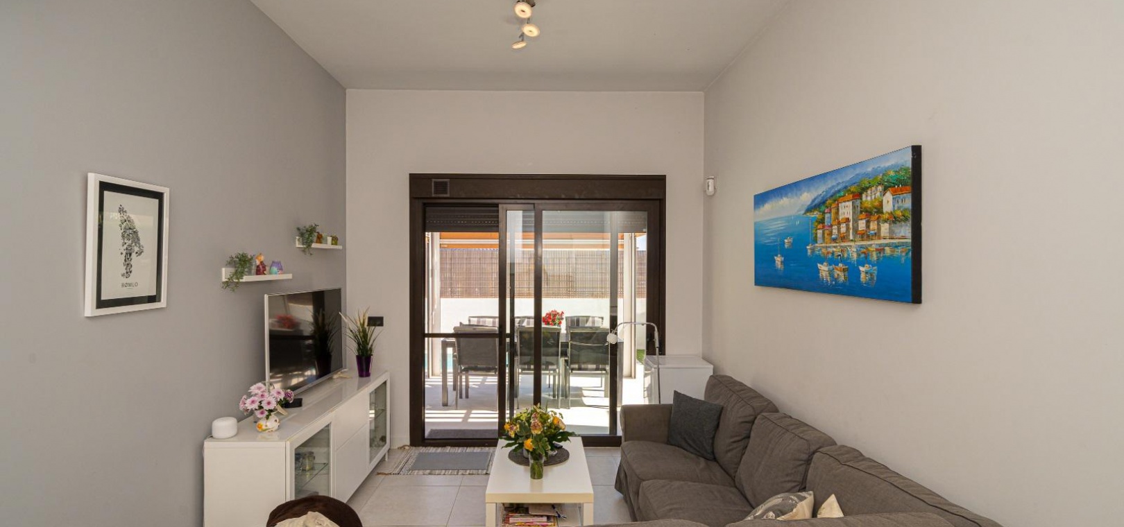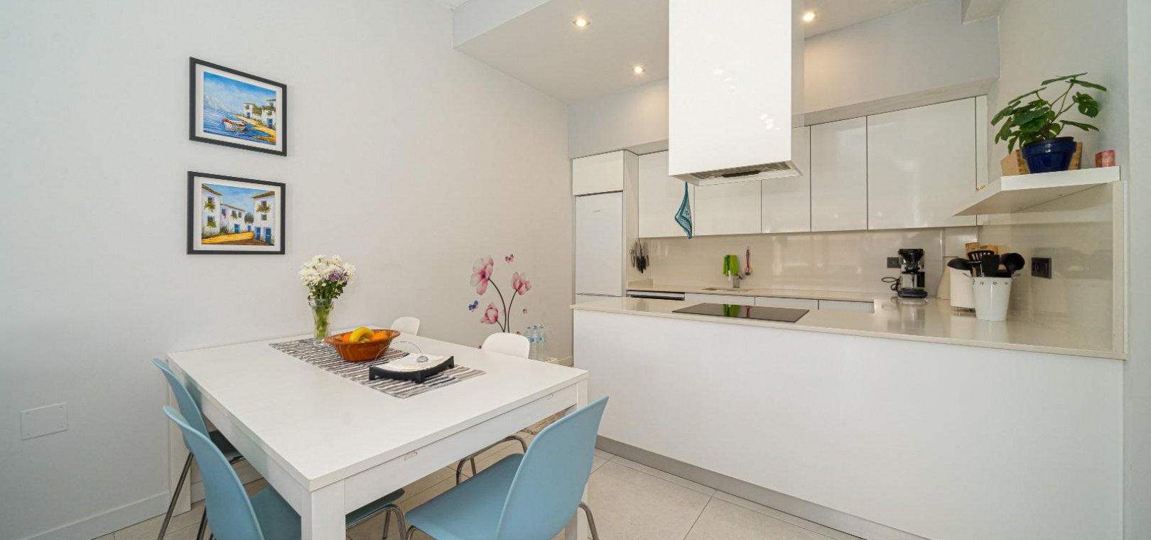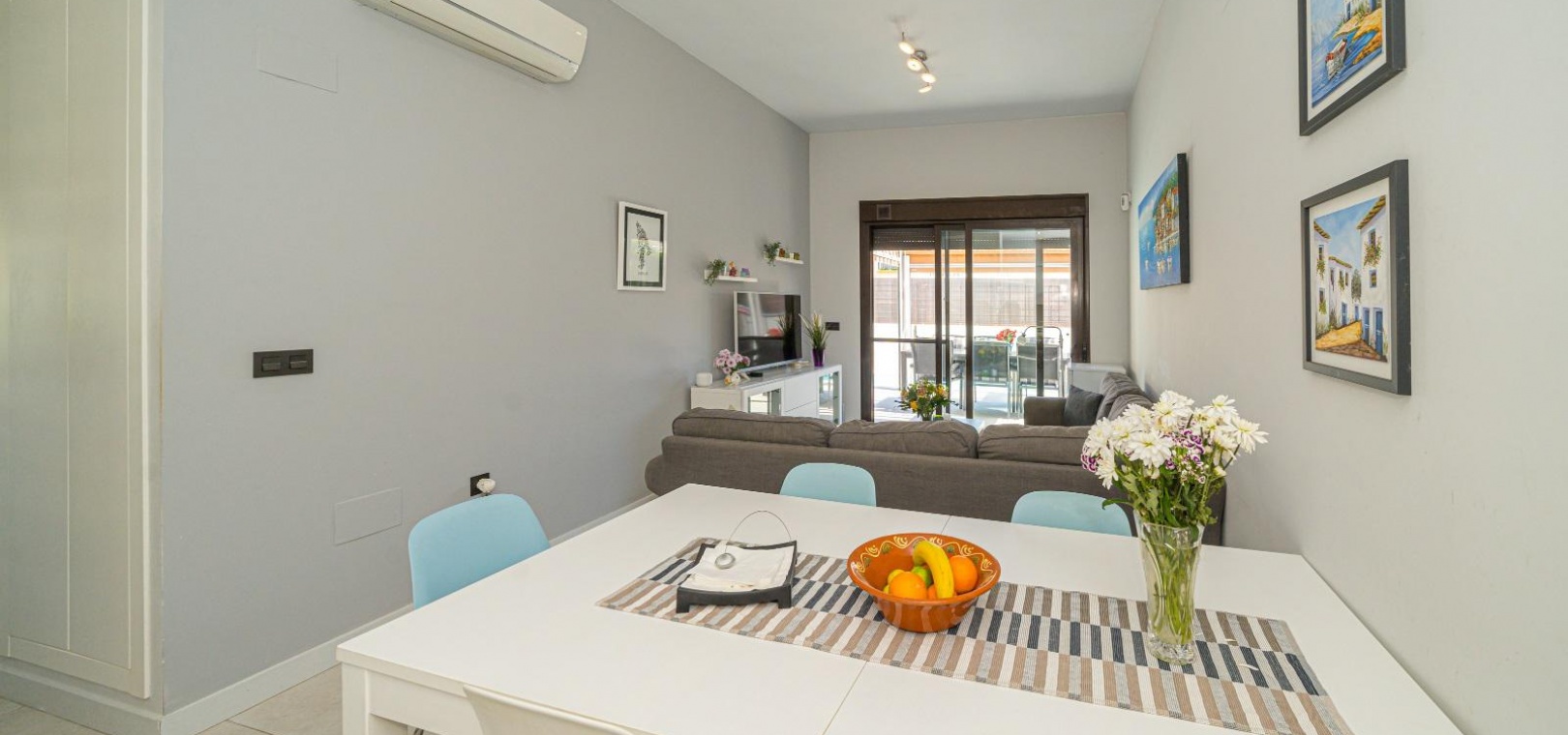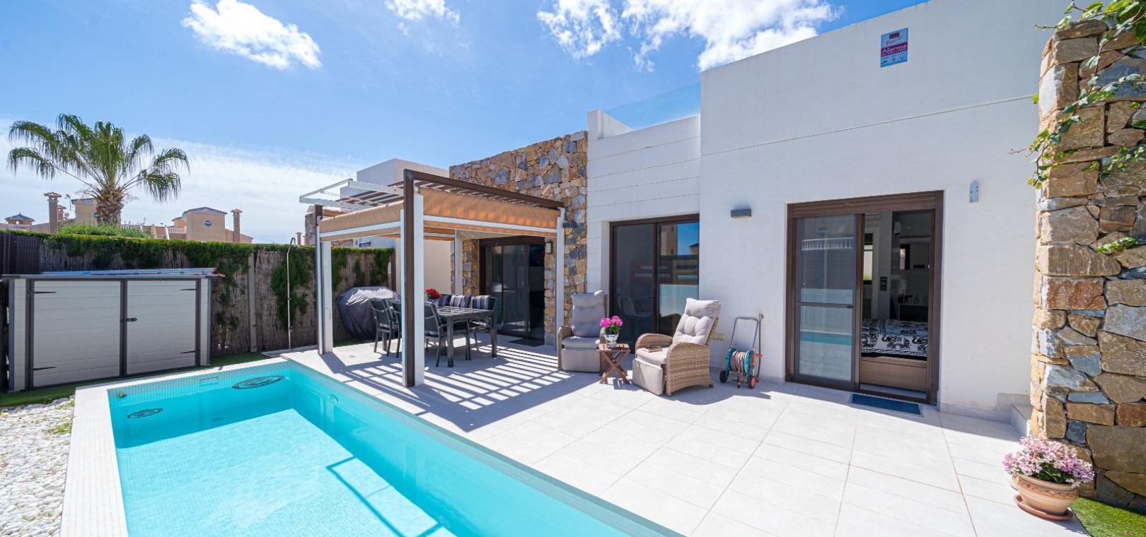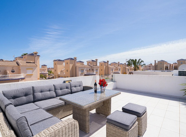 Woonkamer/eetkamer met warme en koude airconditioning, een open keuken, 3 slaapkamers met inbouwkasten, de hoofdslaapkamer heeft een eigen badkamer met douche, 1 gastendouche, een prachtige onderhoudsvriendelijke tuin met een verwarmd zoutwaterzwembad, een eigen solarium op het dak, gemeenschappelijke parkeergelegenheid en nog veel meer.