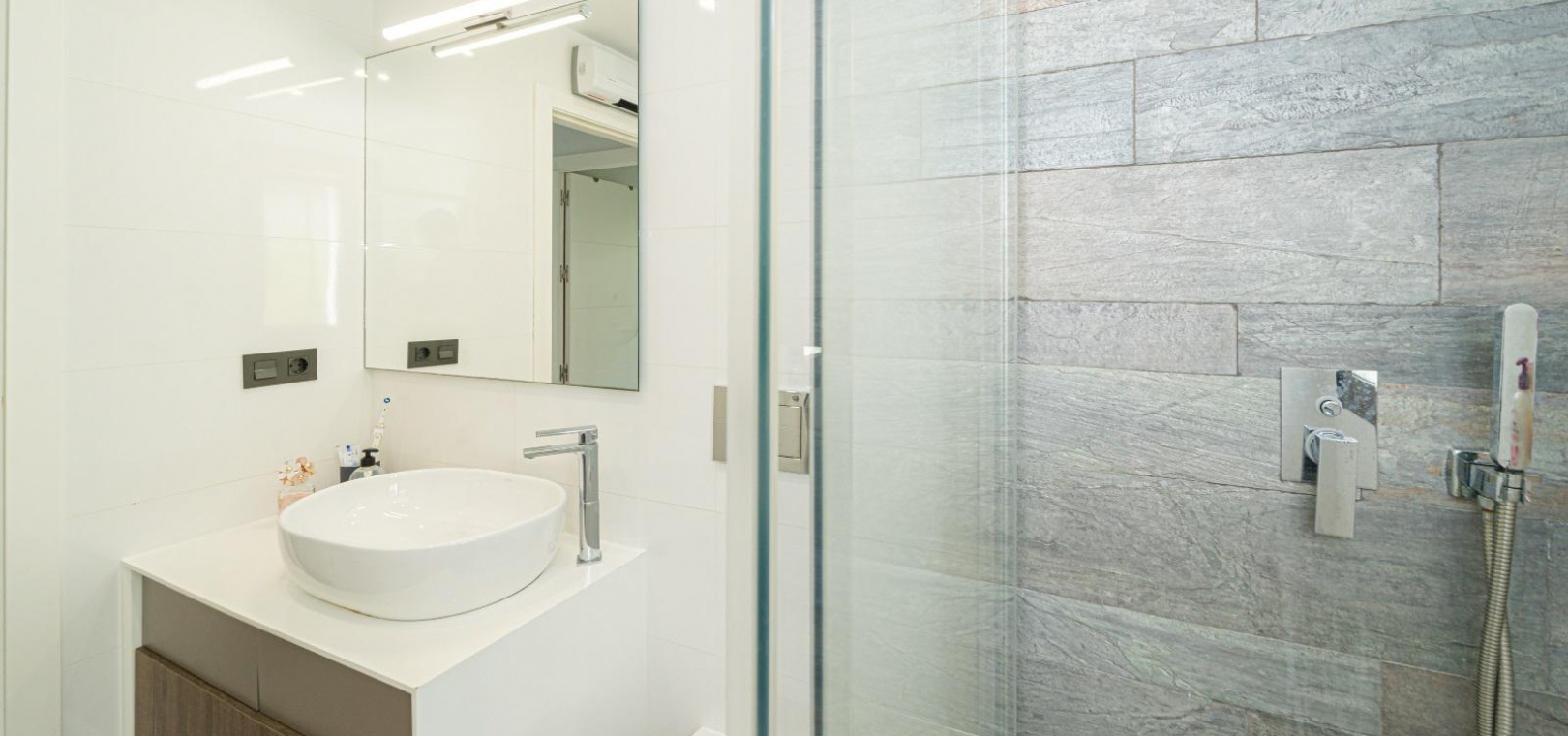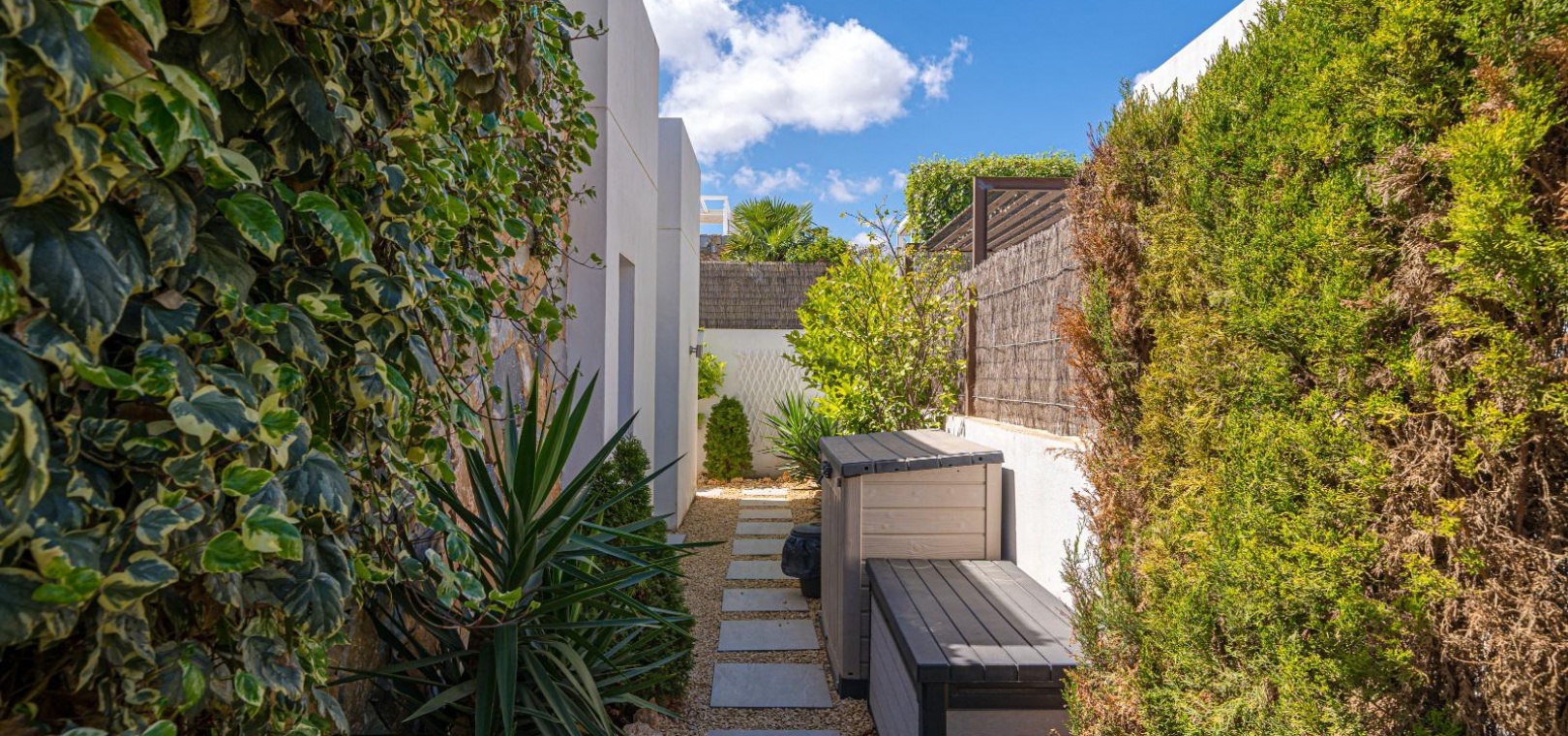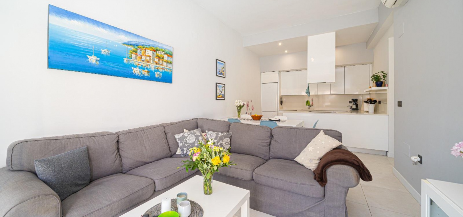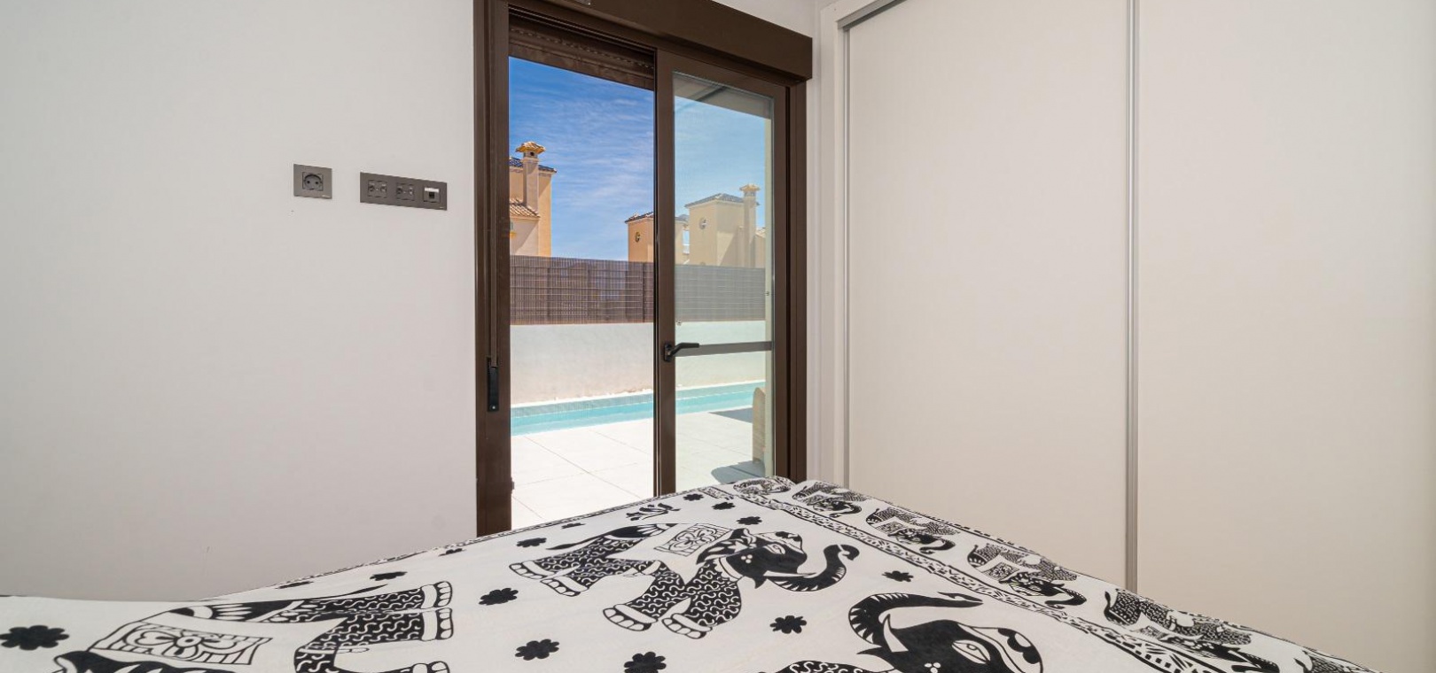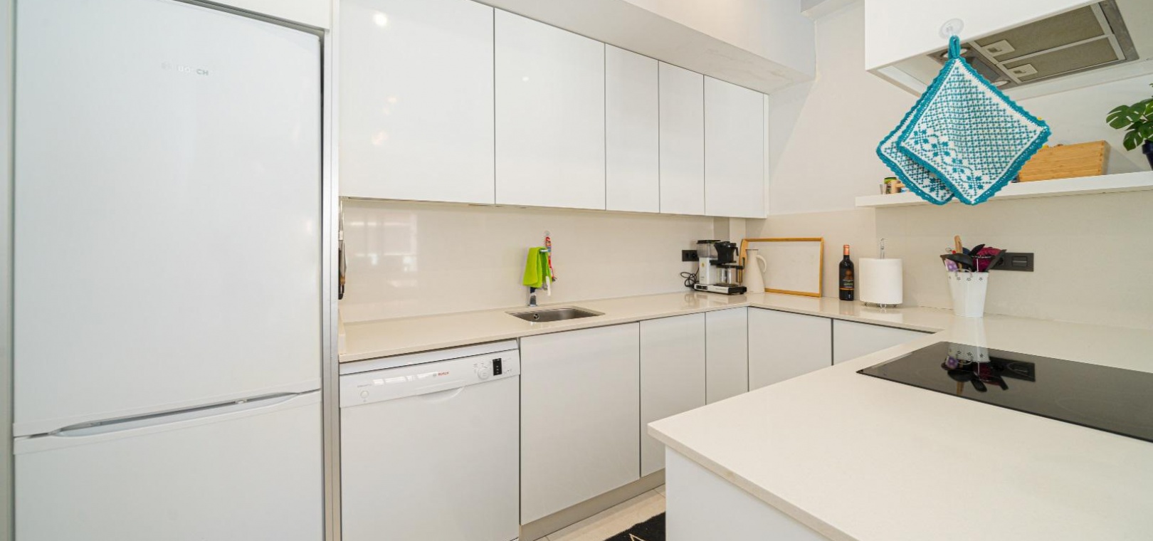 Woonkamer/eetkamer met warme en koude airconditioning, een open keuken, 3 slaapkamers met inbouwkasten, de hoofdslaapkamer heeft een eigen badkamer met douche, 1 gastendouche, een prachtige onderhoudsvriendelijke tuin met een verwarmd zoutwaterzwembad, een eigen solarium op het dak, gemeenschappelijke parkeergelegenheid en nog veel meer.