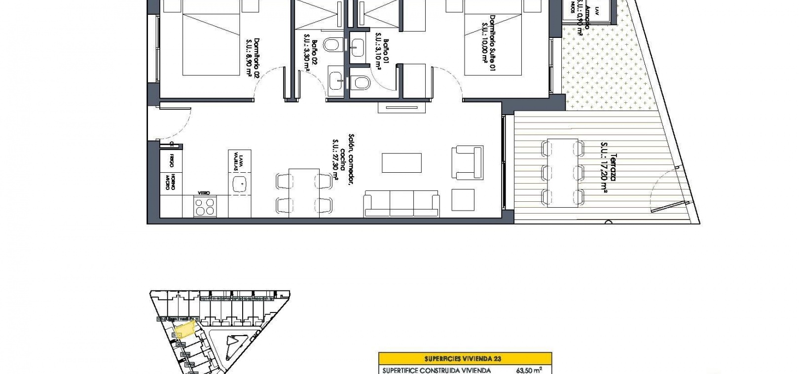 Ontdek dit nieuwe wooncomplex in San Fulgencio, met appartementen met 2 en 3 slaapkamers die zijn ontworpen voor comfort, stijl en gemak. Het complex beschikt over: