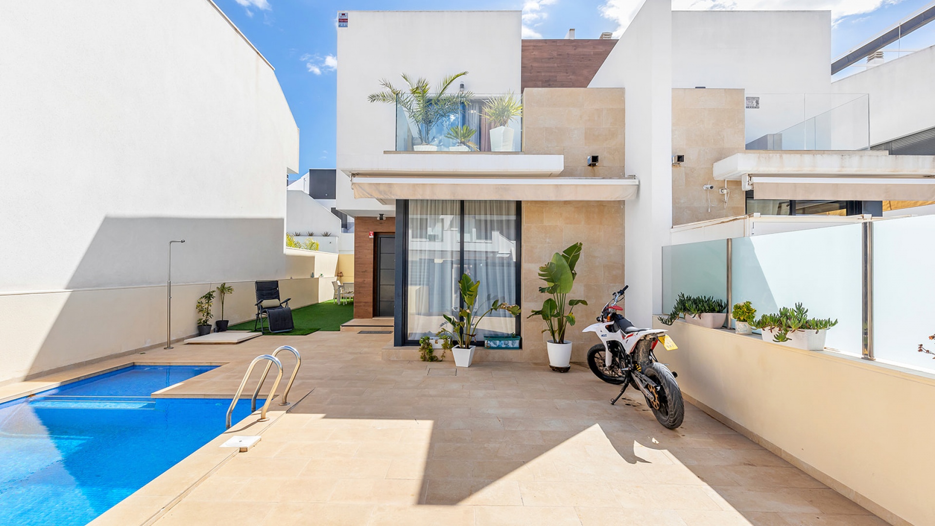Bouwjaar: 2018 3 slaapkamers 3 badkamers Bebouwde oppervlakte: 127 m2 Privé zwembad: 13 m2 Perceel: 155 m2 Parkeerplaats Zonoriëntatie: West