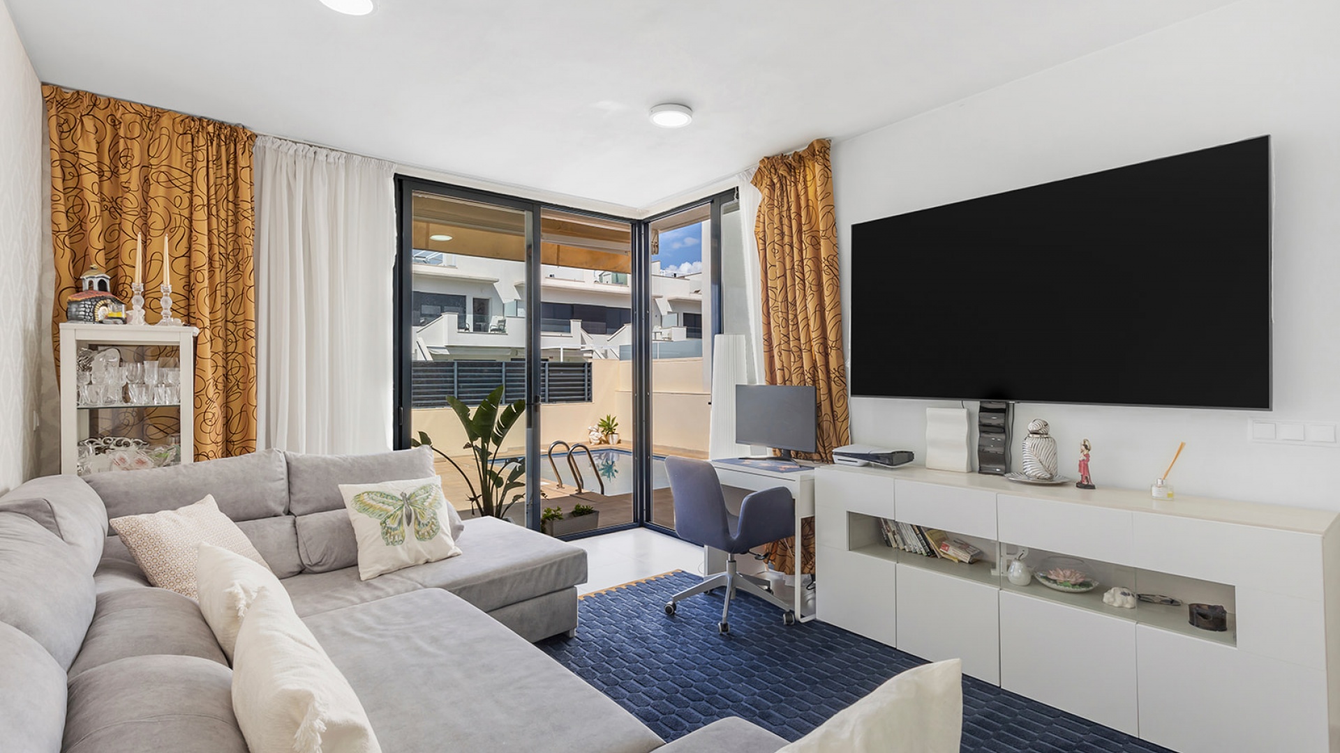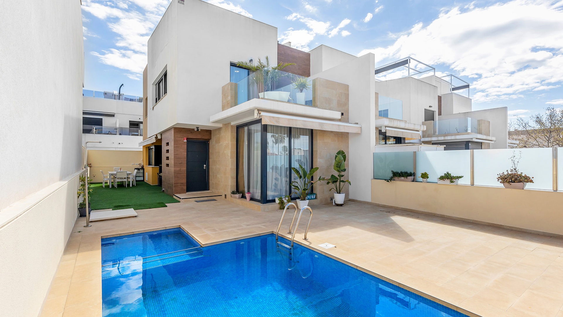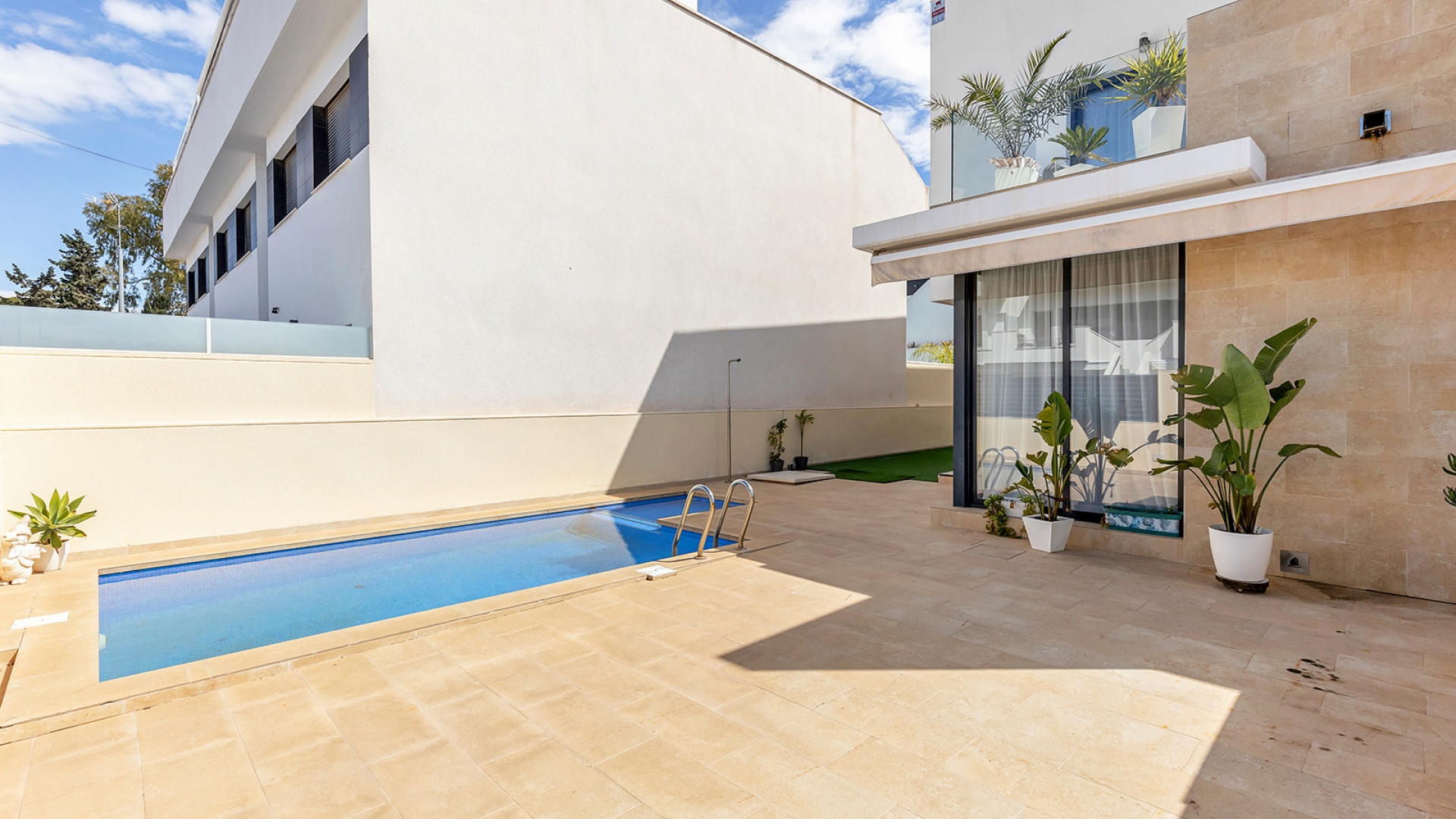 Deze ruime halfvrijstaande villa met 3 slaapkamers en 3 badkamers heeft een ideale ligging op slechts 5-10 minuten lopen van de stranden in Lo Pagan. Hier vindt u alle voorzieningen in de omgeving, winkels, restaurants en de prestigieuze internationale school Castelar College in de omgeving op loopafstand.