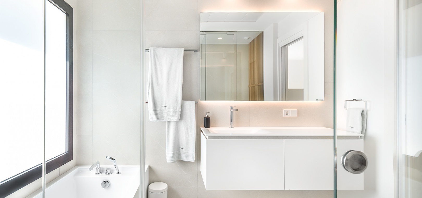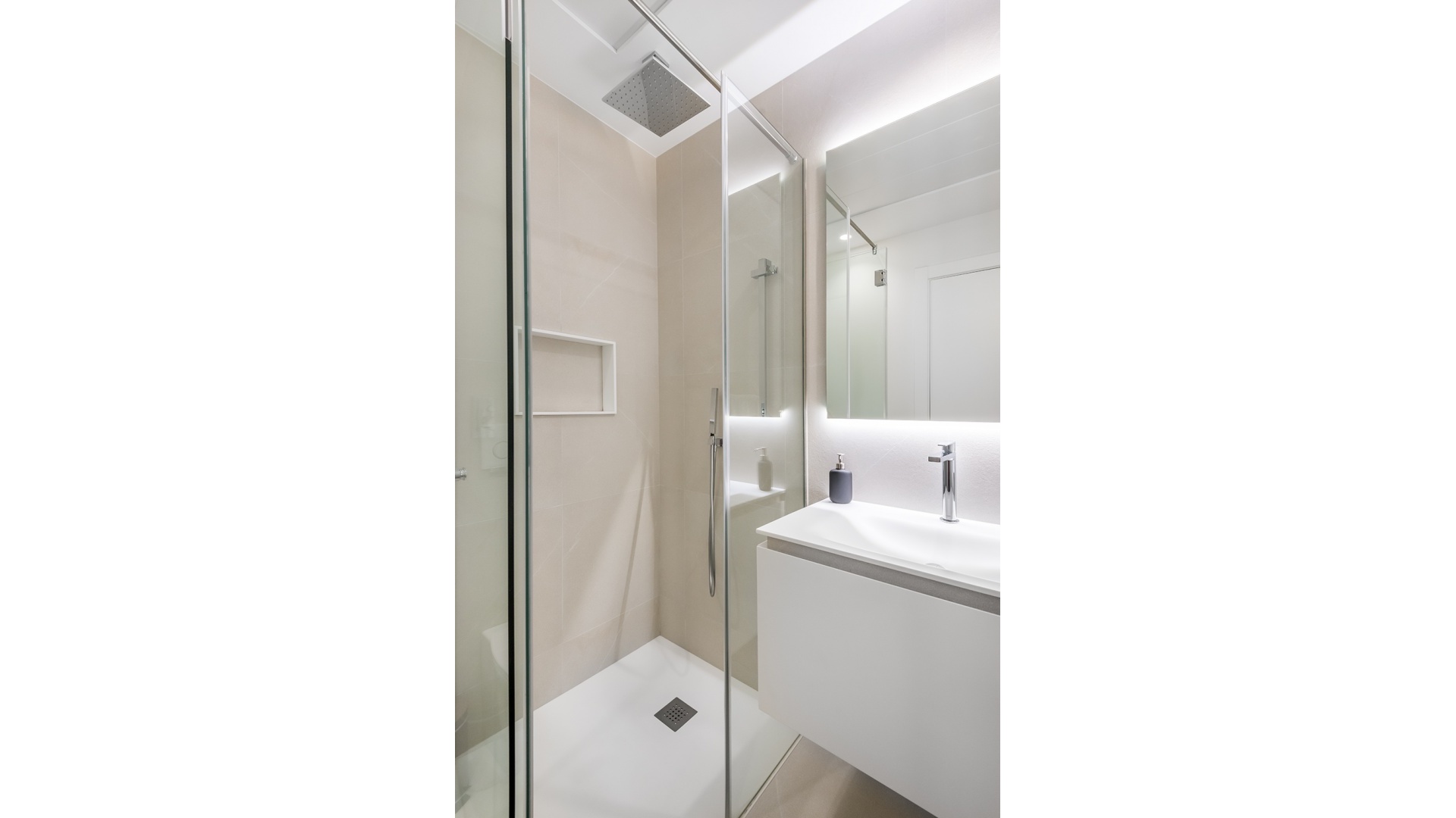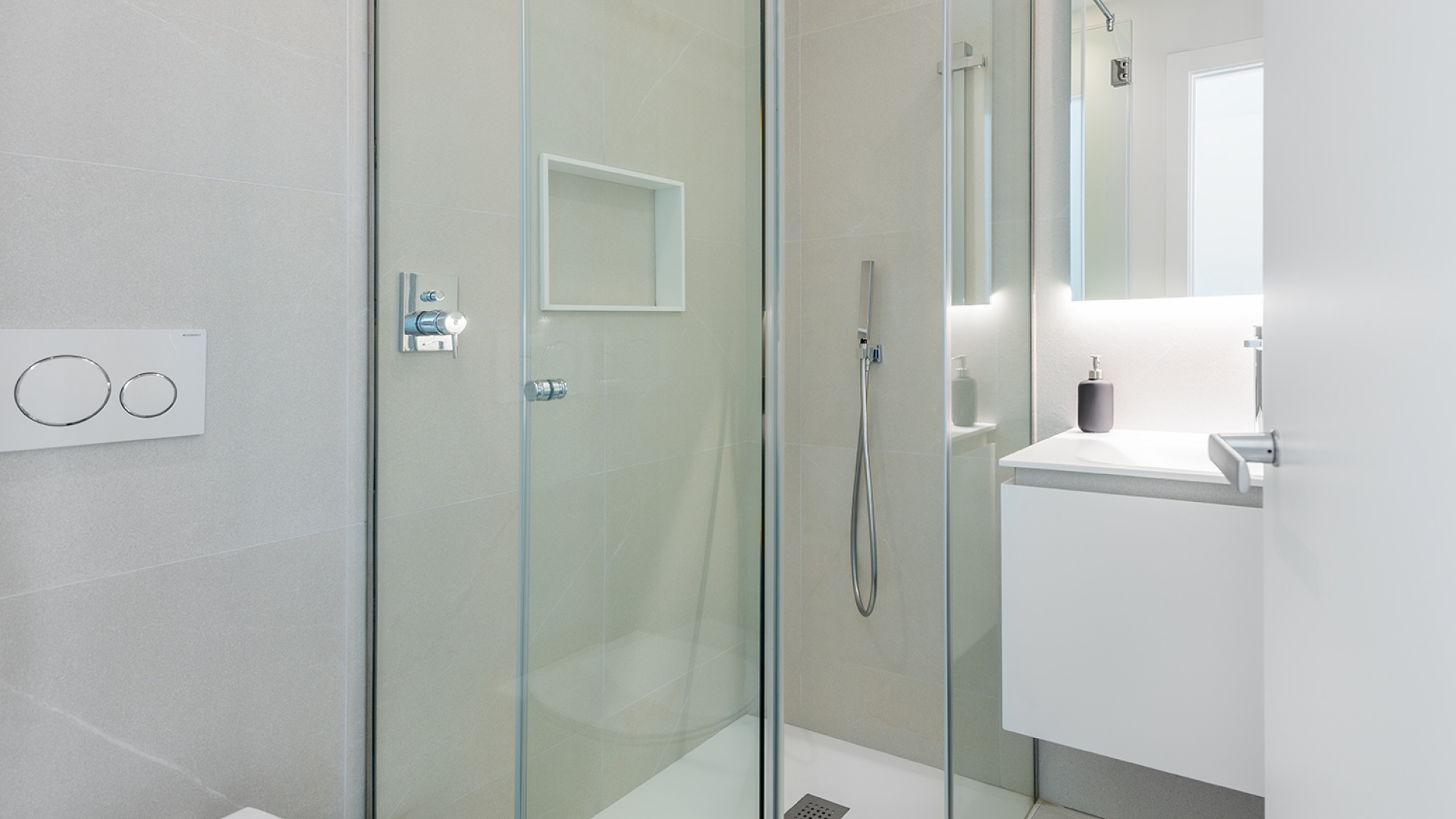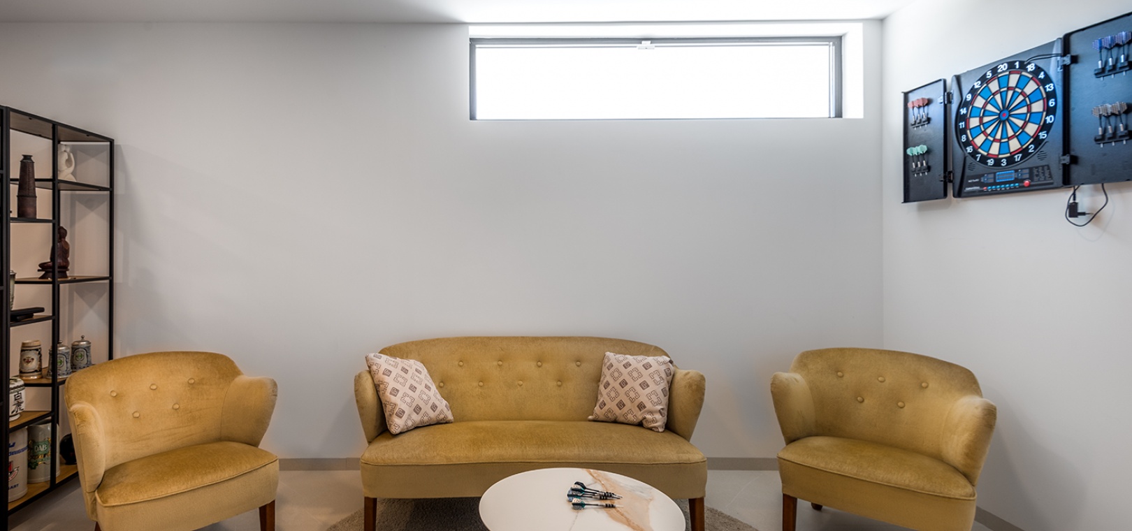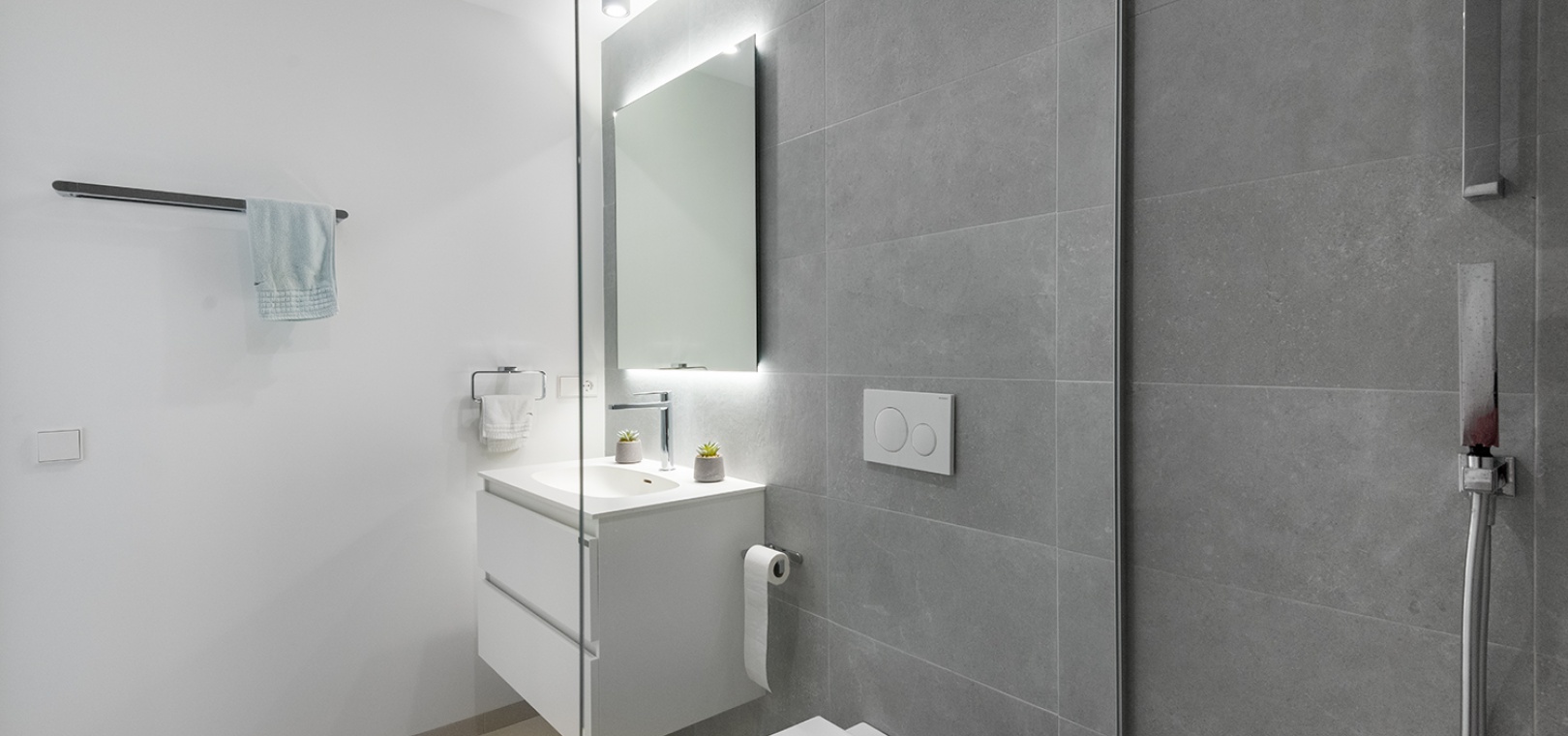 Binnen omarmt de villa een sereen Scandinavisch design met een open keuken, woon- en eetgedeelte. De begane grond heeft drie slaapkamers, elk met een eigen badkamer en directe toegang tot de tuin, wat zorgt voor ultiem comfort. Vloerverwarming draagt bij aan de luxe.