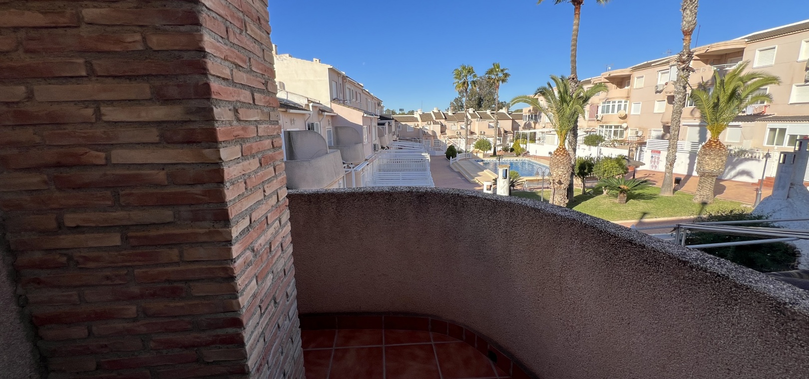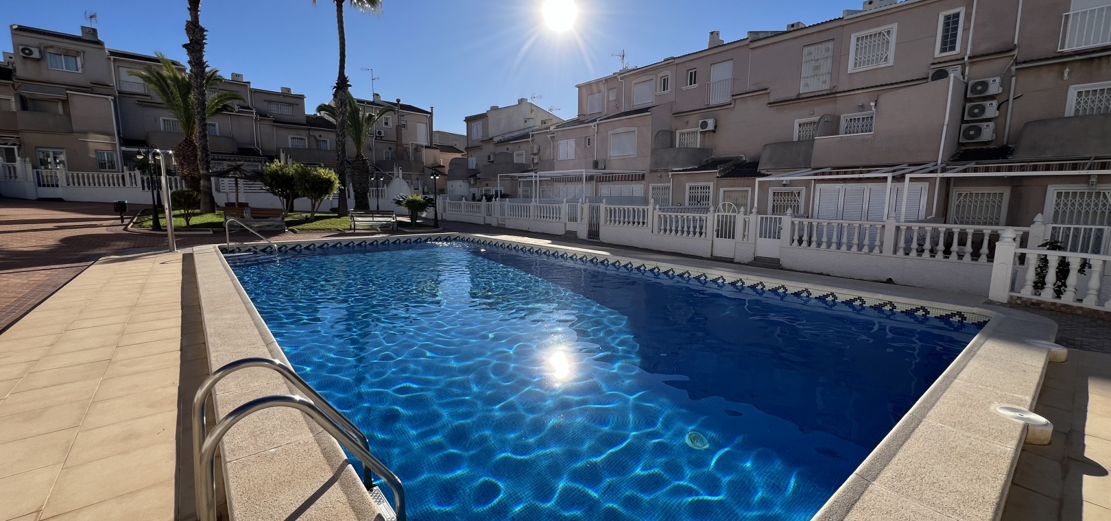 Het pand beschikt over een eigen parkeerplaats en maakt deel uit van een wooncomplex met een gemeenschappelijk zwembad, op korte loopafstand van winkels en restaurants.