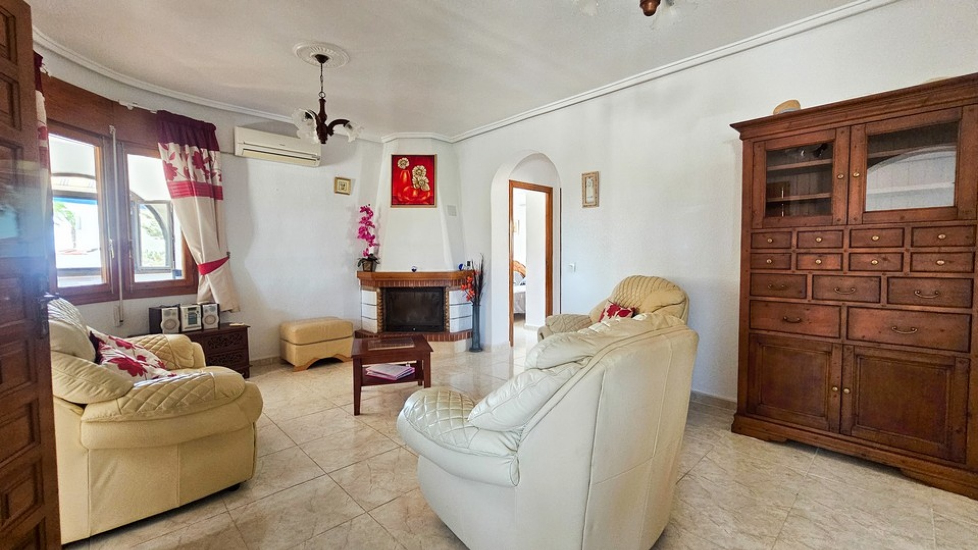 Deze woning met 3 slaapkamers en 2 badkamers, gebouwd in 1987, staat op een perceel van 1057 m². Er is parkeergelegenheid op eigen terrein met garage, een grote barbecueplek, een privézwembad en een solarium. Binnen is alles gelijkvloers. De ruime woonkamer is toegankelijk via een groot glazen terras en alle andere kamers, inclusief een aparte eethoek, zijn hieraan verbonden. Er is overal airconditioning en een warmwatersysteem op zonne-energie. Het perceel is ruim, met een barbecueplek aan de zijkant van het huis, groot genoeg voor 8 of 10 personen, en diverse plekken om te genieten van de zon of de schaduw. Gezien het feit dat deze woning in een van de meest gewilde wijken van Ciudad Quesada ligt, heerst er een zeer rustige sfeer; het centrum ligt echter op slechts 10 tot 15 minuten lopen. Hoewel het waar is dat deze plek een beetje aandacht kan gebruiken, is het een uitstekende woning voor een prijs, en dat op een perceel dat minstens het dubbele zou kosten van de vraagprijs als het nieuwbouw zou zijn. Wij vinden het een koopje. Bekijk het zelf en oordeel zelf.