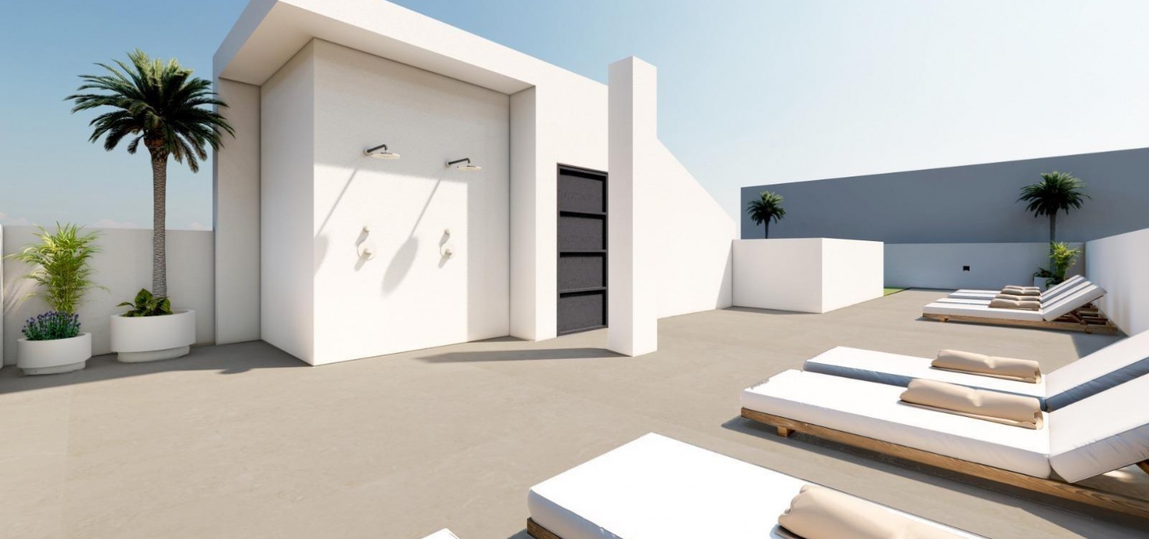 Elk appartement heeft een open keuken in Amerikaanse stijl, een lichte woon-eetkamer, ingebouwde kasten en een eigen terras. Het gebouw heeft een lift voor 6 personen en alle bewoners hebben toegang tot een gemeenschappelijk dakterras met douches en kunstgras - perfect om te genieten van de zon en de zeebries.