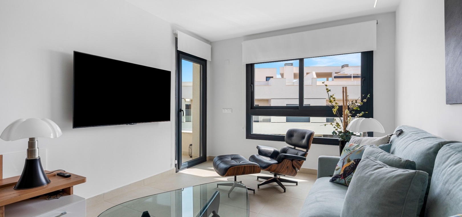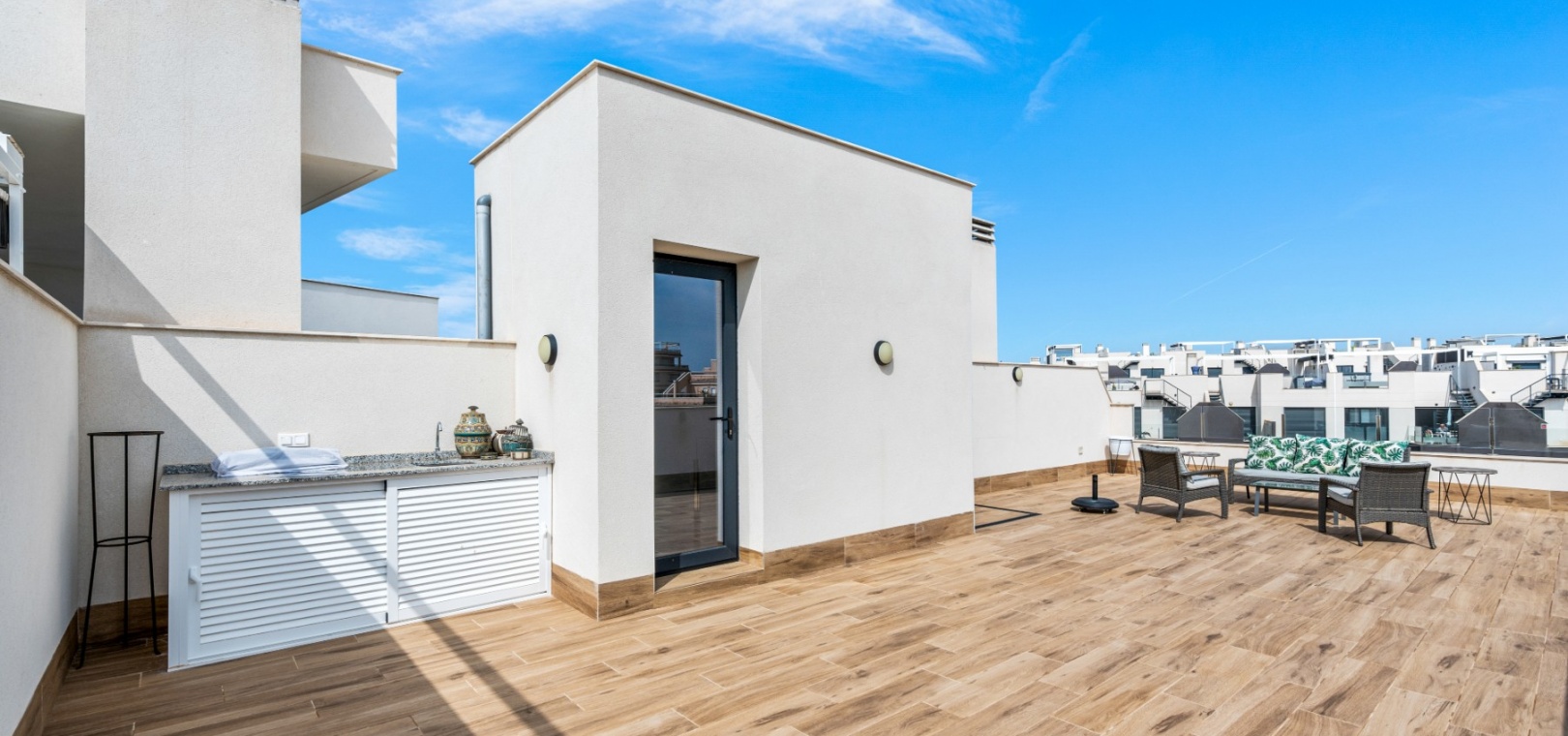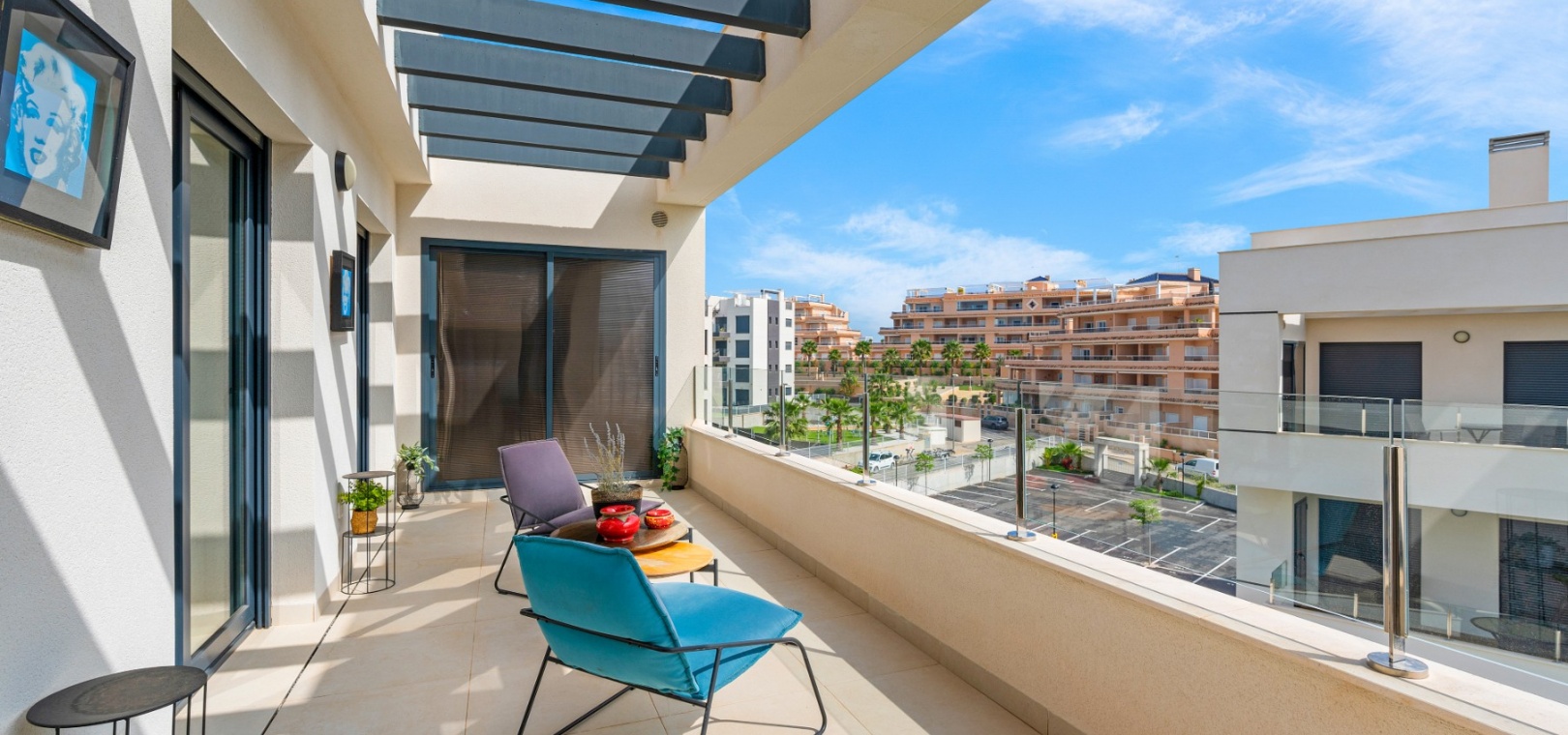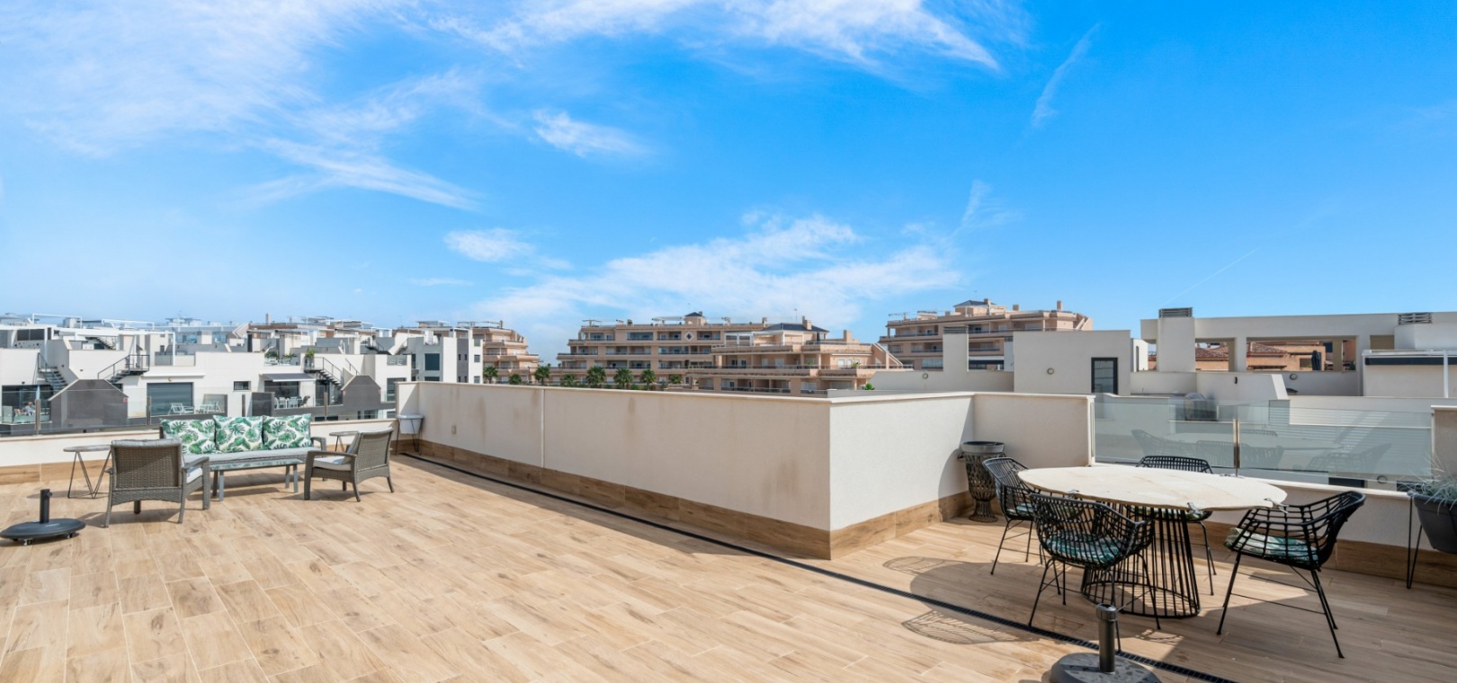 Ontdek dit prachtige en stijlvol afgewerkte penthouse hoekappartement in het populaire Villamartin, op slechts 4 km van de zonnige stranden van de Costa Blanca.